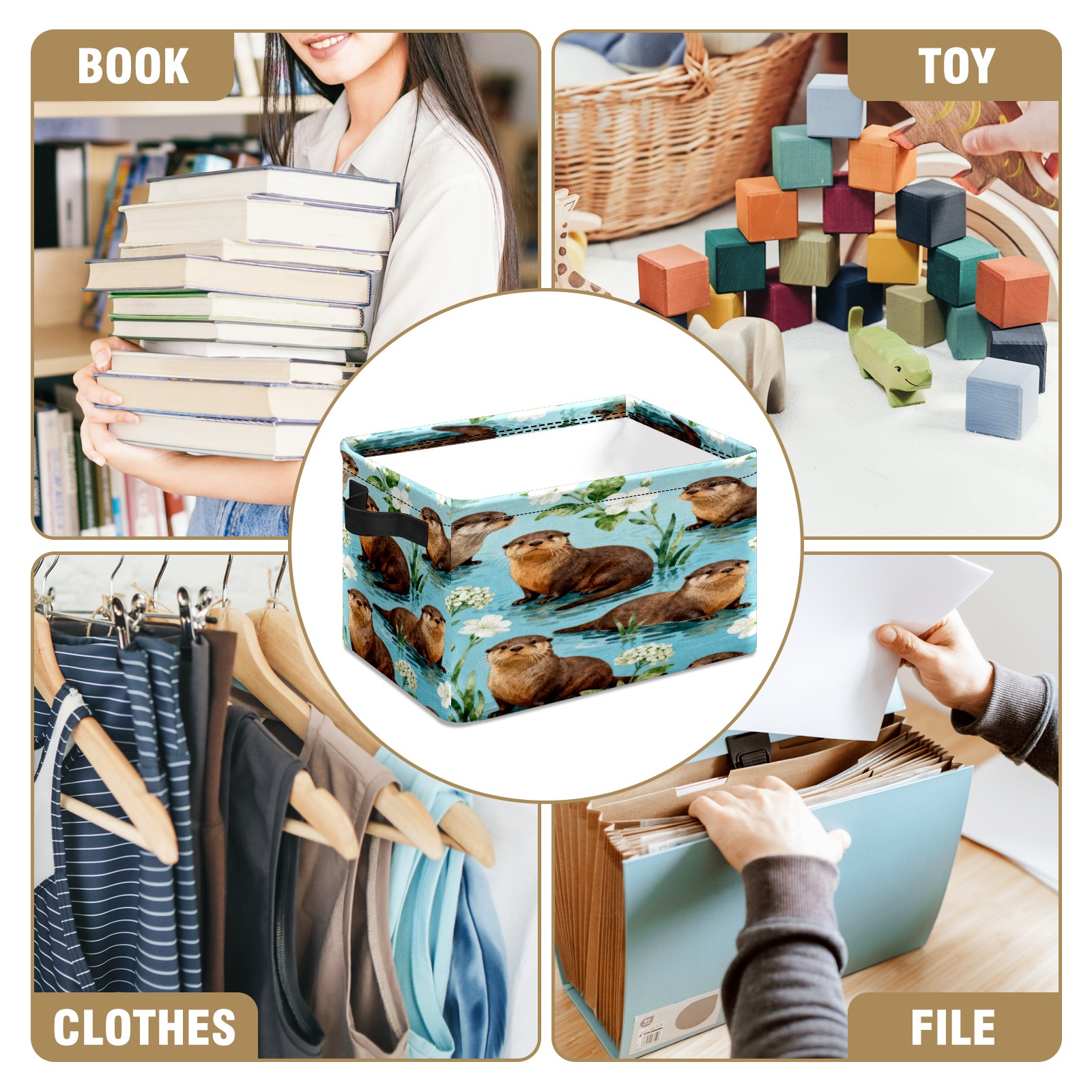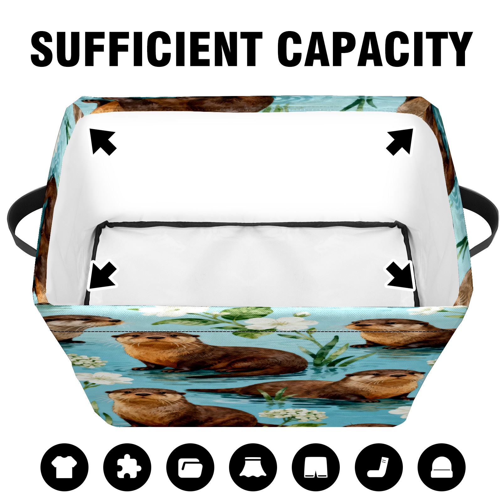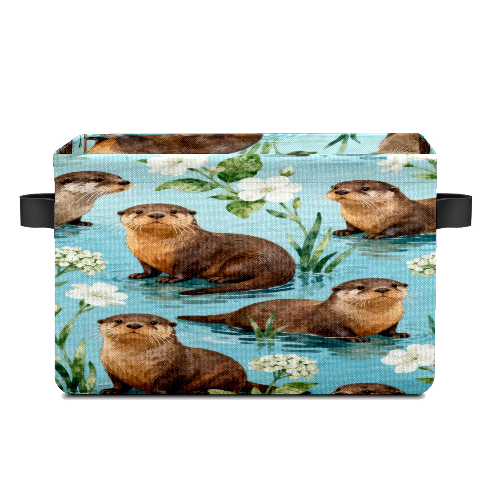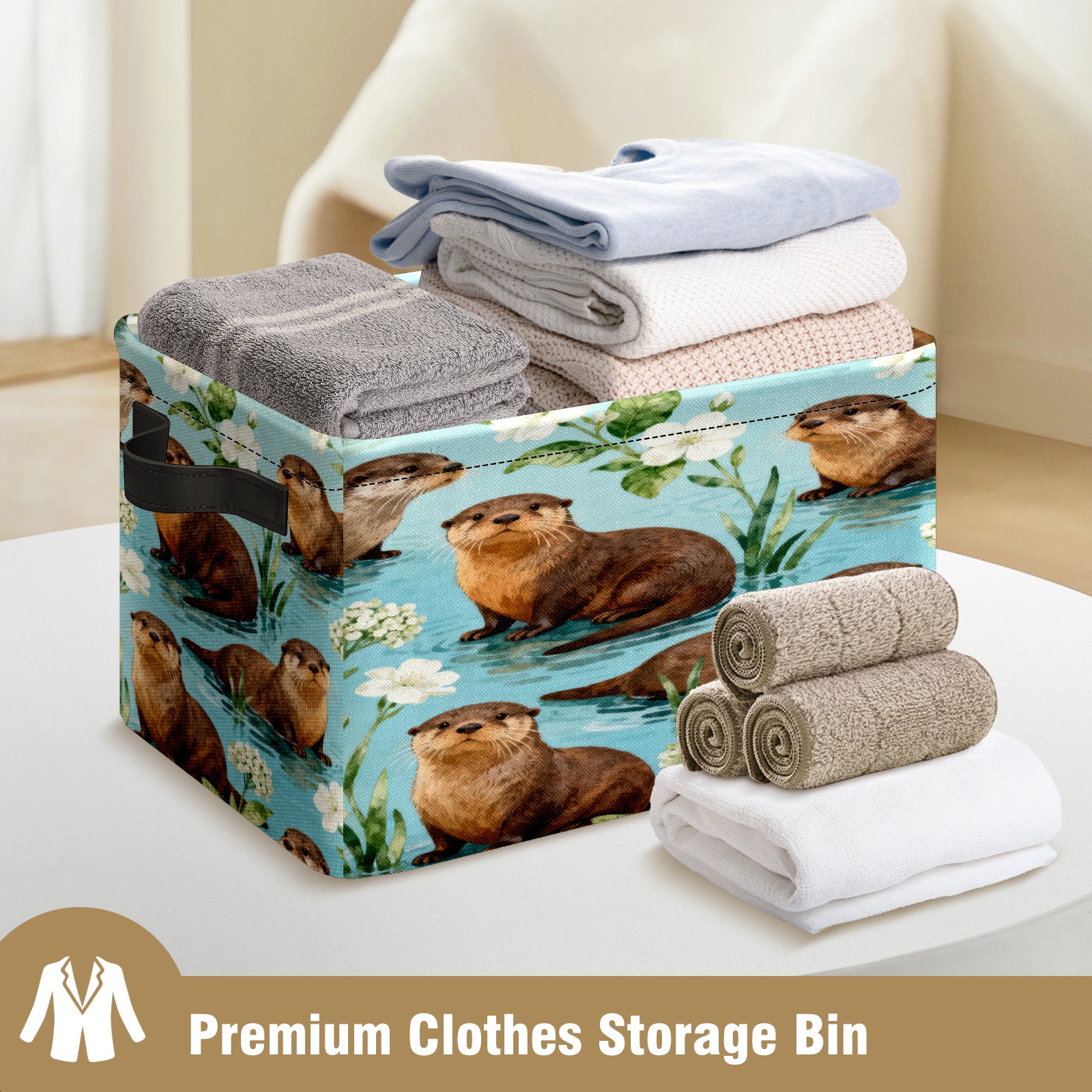 Otters Floral Waters Large Storage Box, Foldable Toy Basket with Handle, for Organizing Clothes, Christmas Gift Storage Box, Children's Toys.