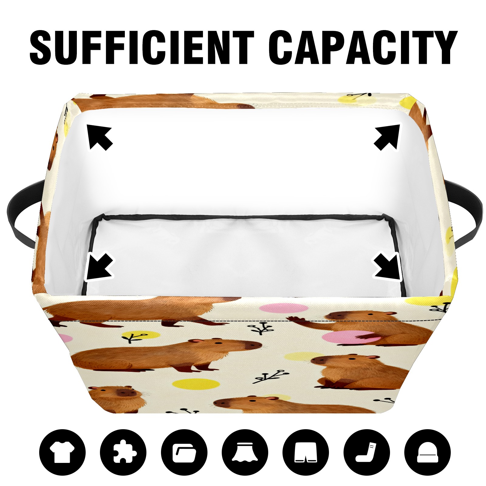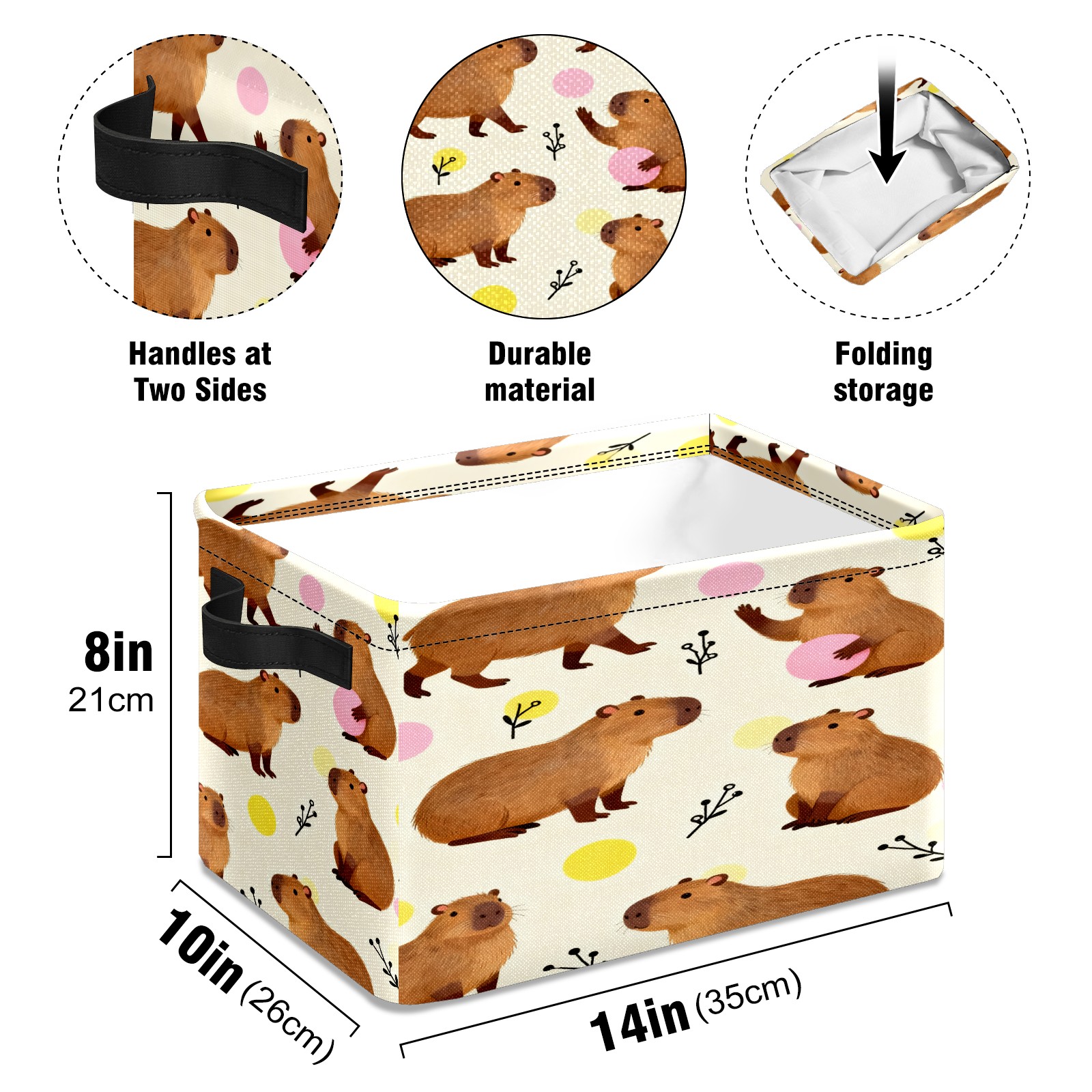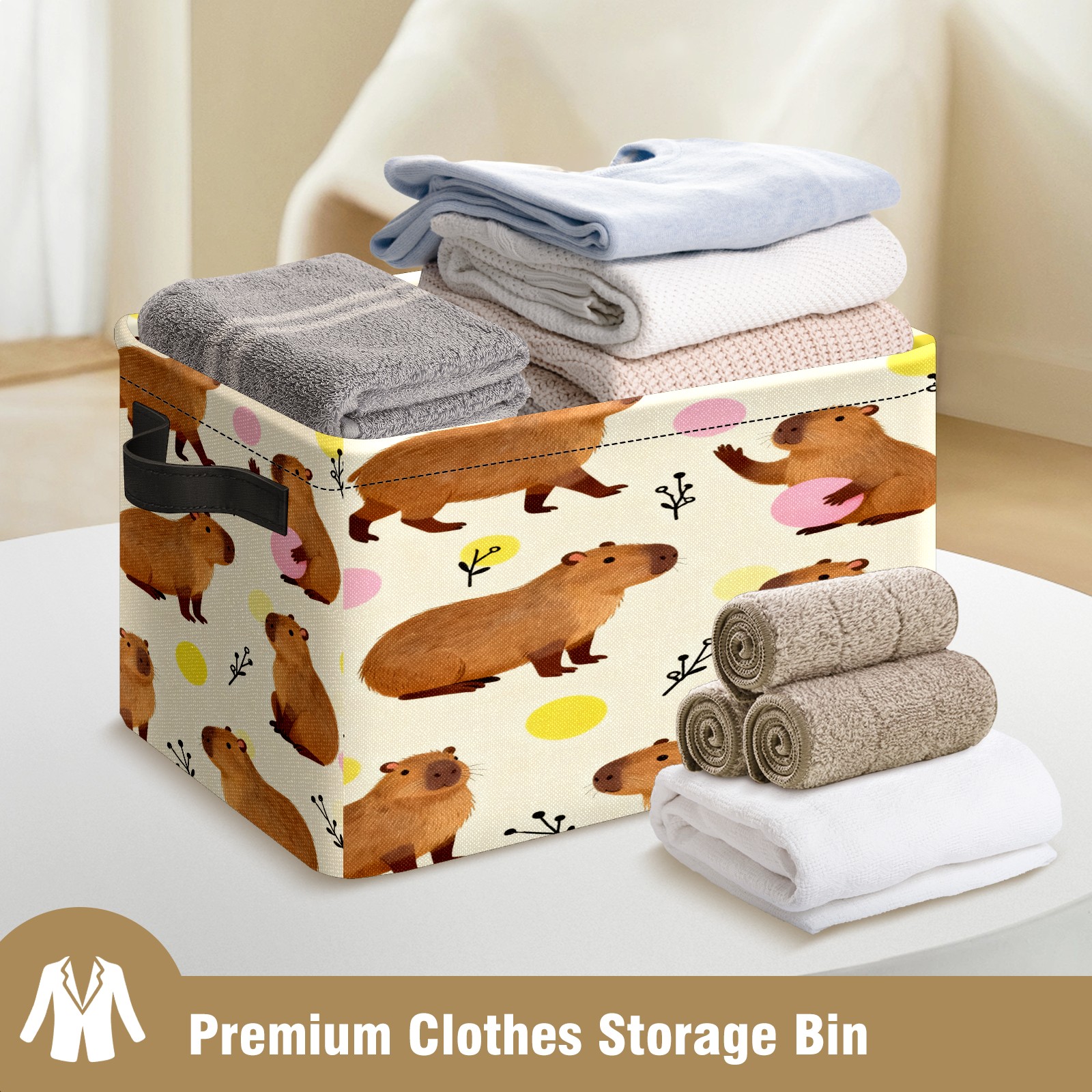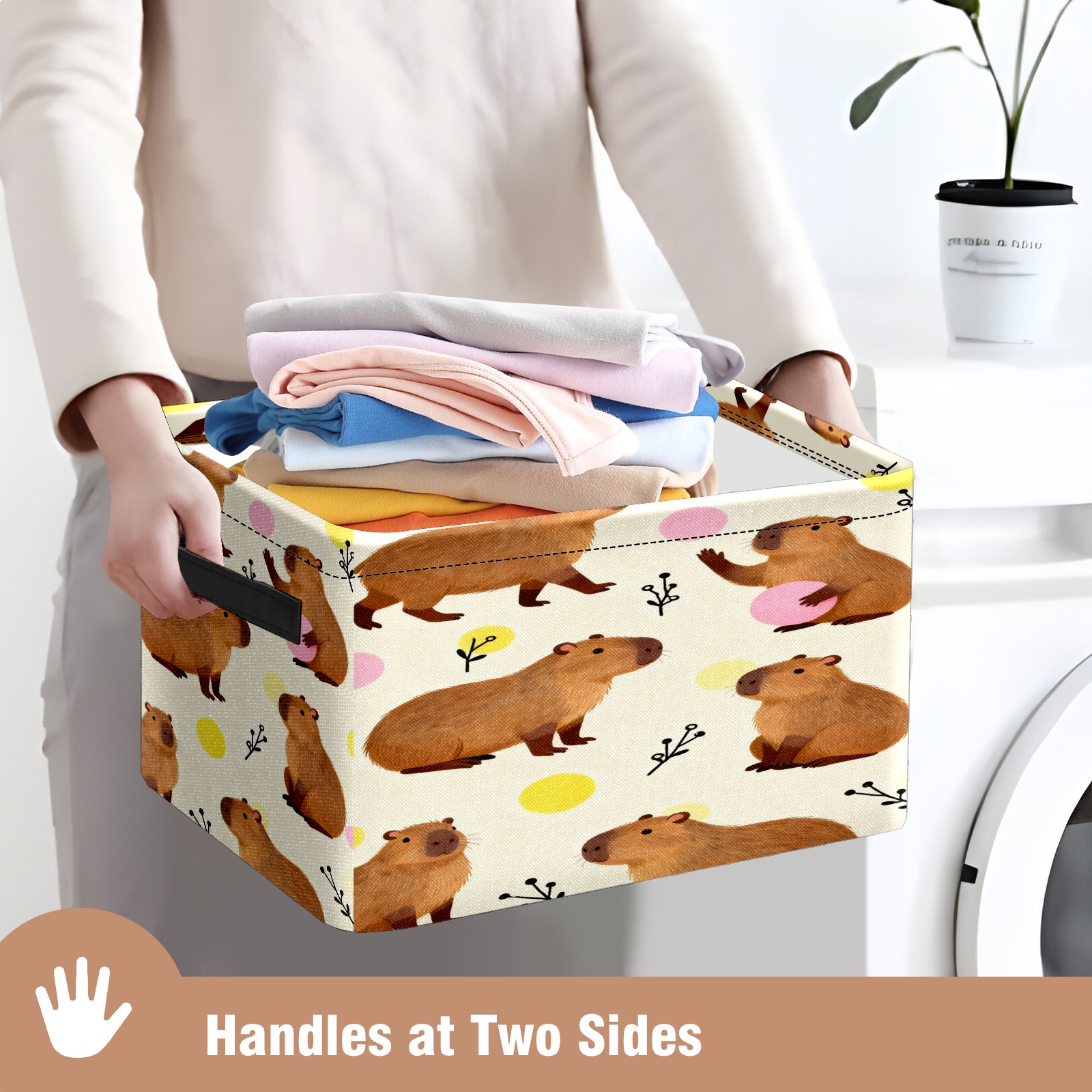 Capybaras Playful Little Scene Large Storage Box, Foldable Toy Basket with Handle, for Organizing Clothes, Christmas Gift Storage Box, Children's Toys.