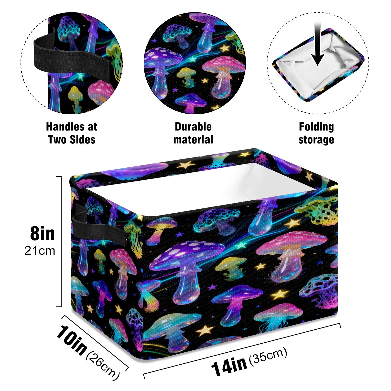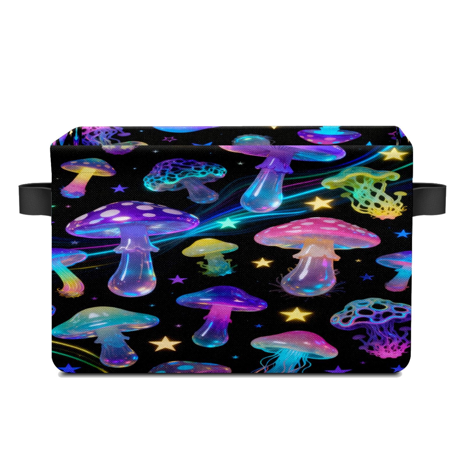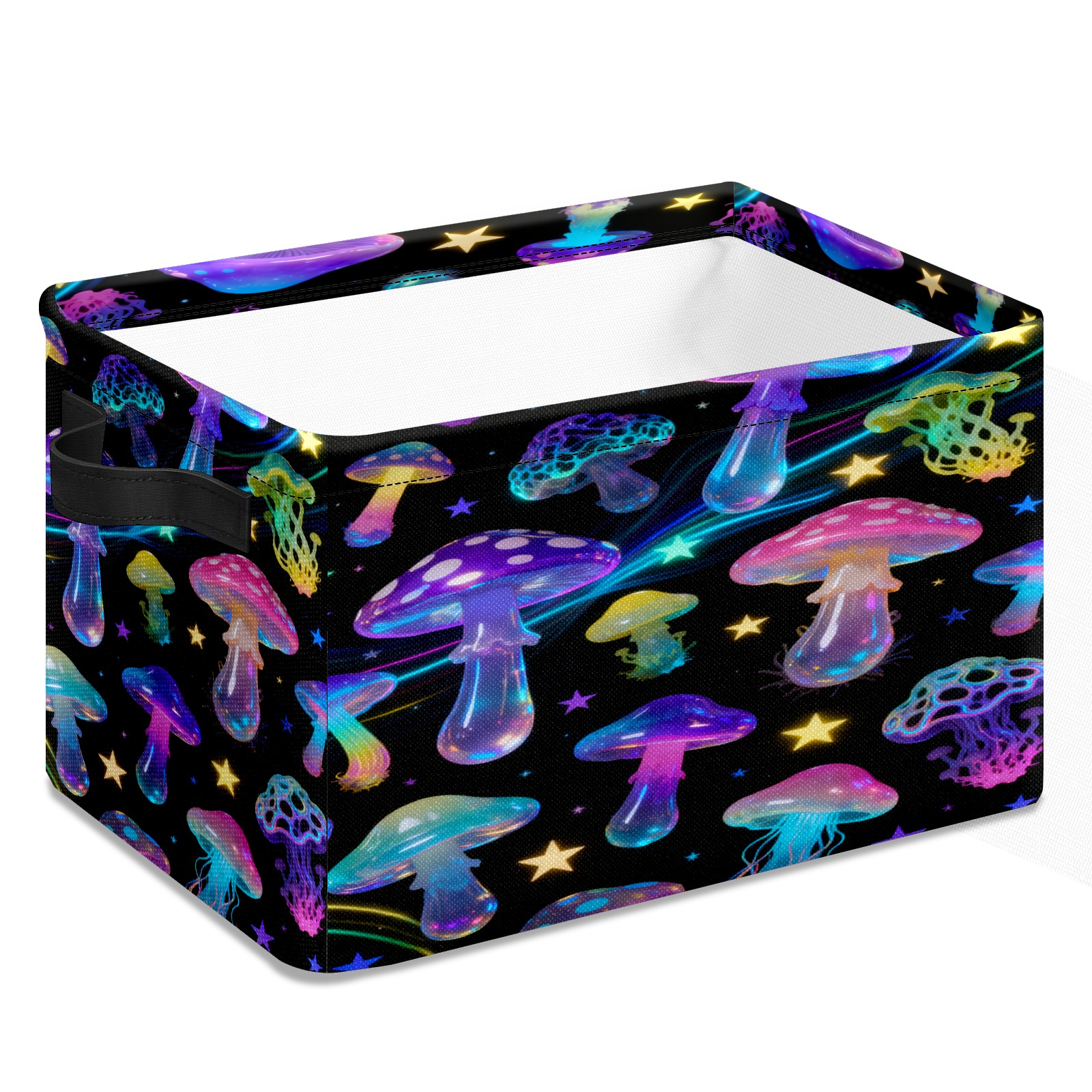 Starry Night Mushrooms Large Storage Box, Foldable Toy Basket with Handle, for Organizing Clothes, Christmas Gift Storage Box, Children's Toys.