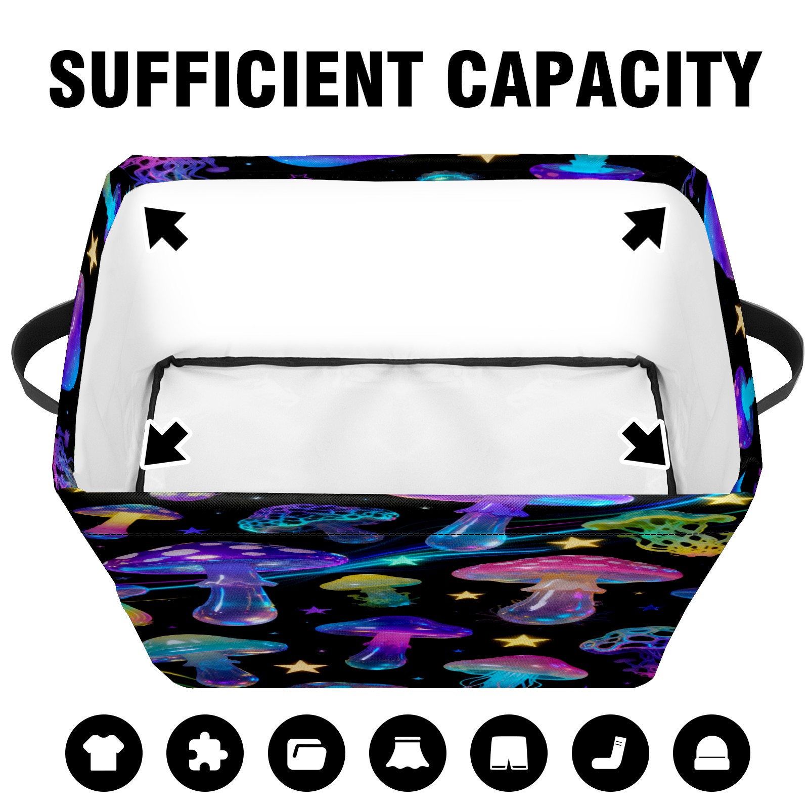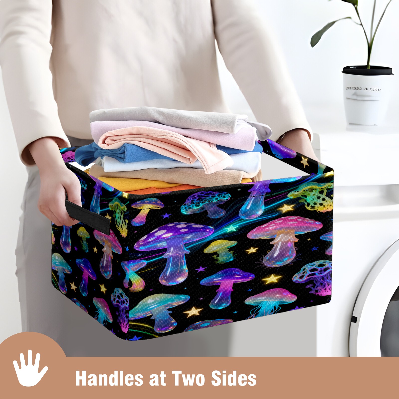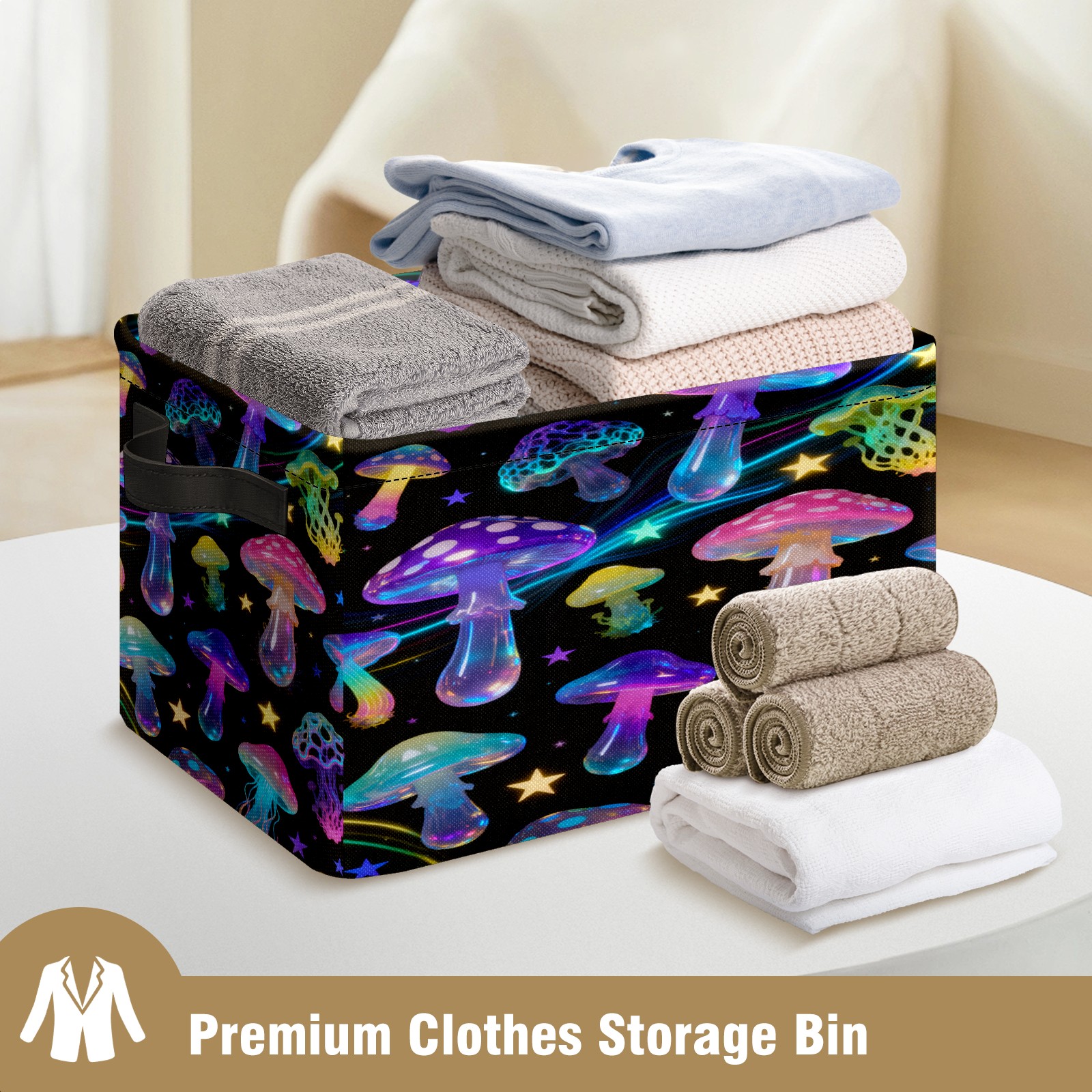 Starry Night Mushrooms Large Storage Box, Foldable Toy Basket with Handle, for Organizing Clothes, Christmas Gift Storage Box, Children's Toys.