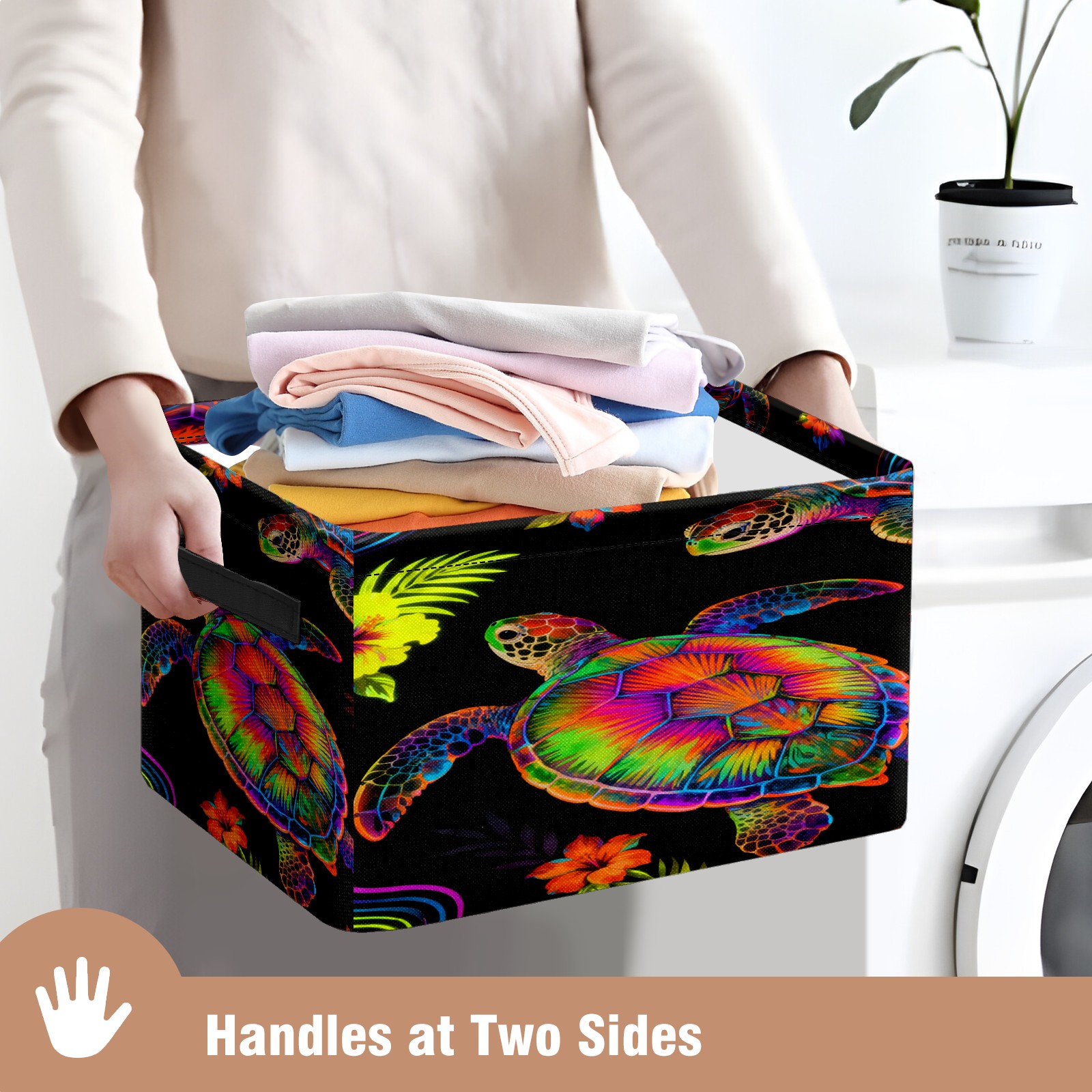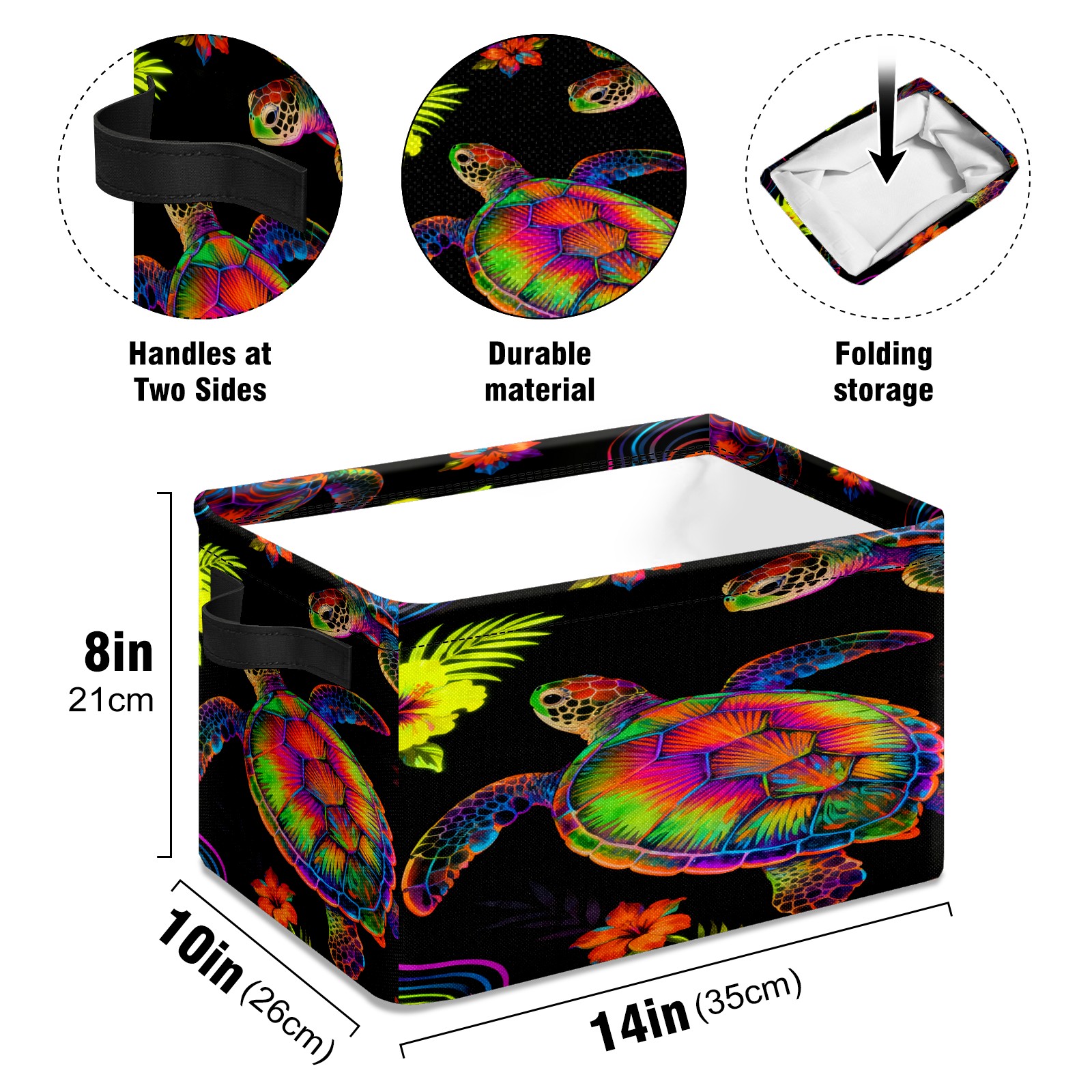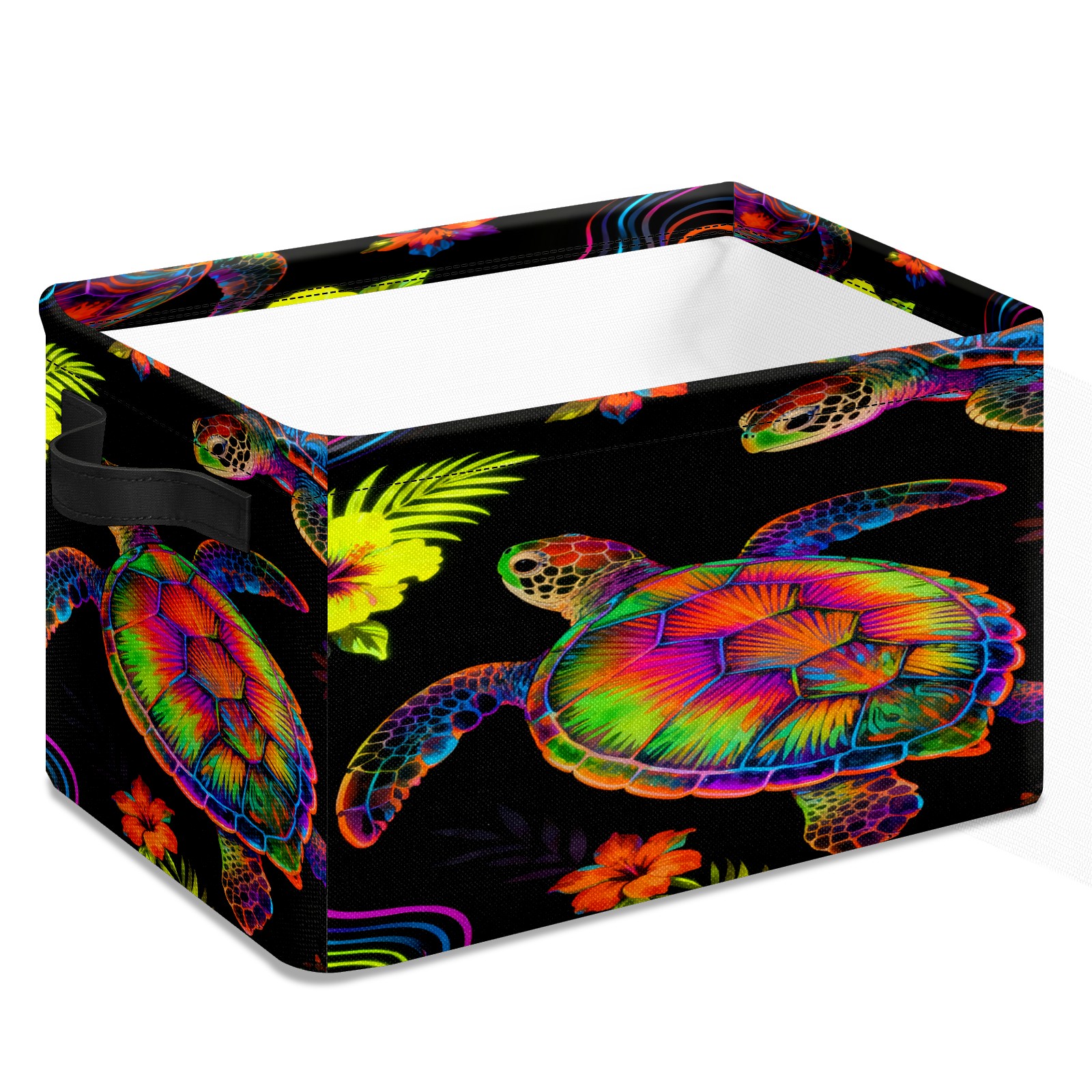 Iridescent Sea Turtle Tropical Flowers Large Storage Box, Foldable Toy Basket with Handle, for Organizing Clothes, Christmas Gift Storage Box, Children's Toys.