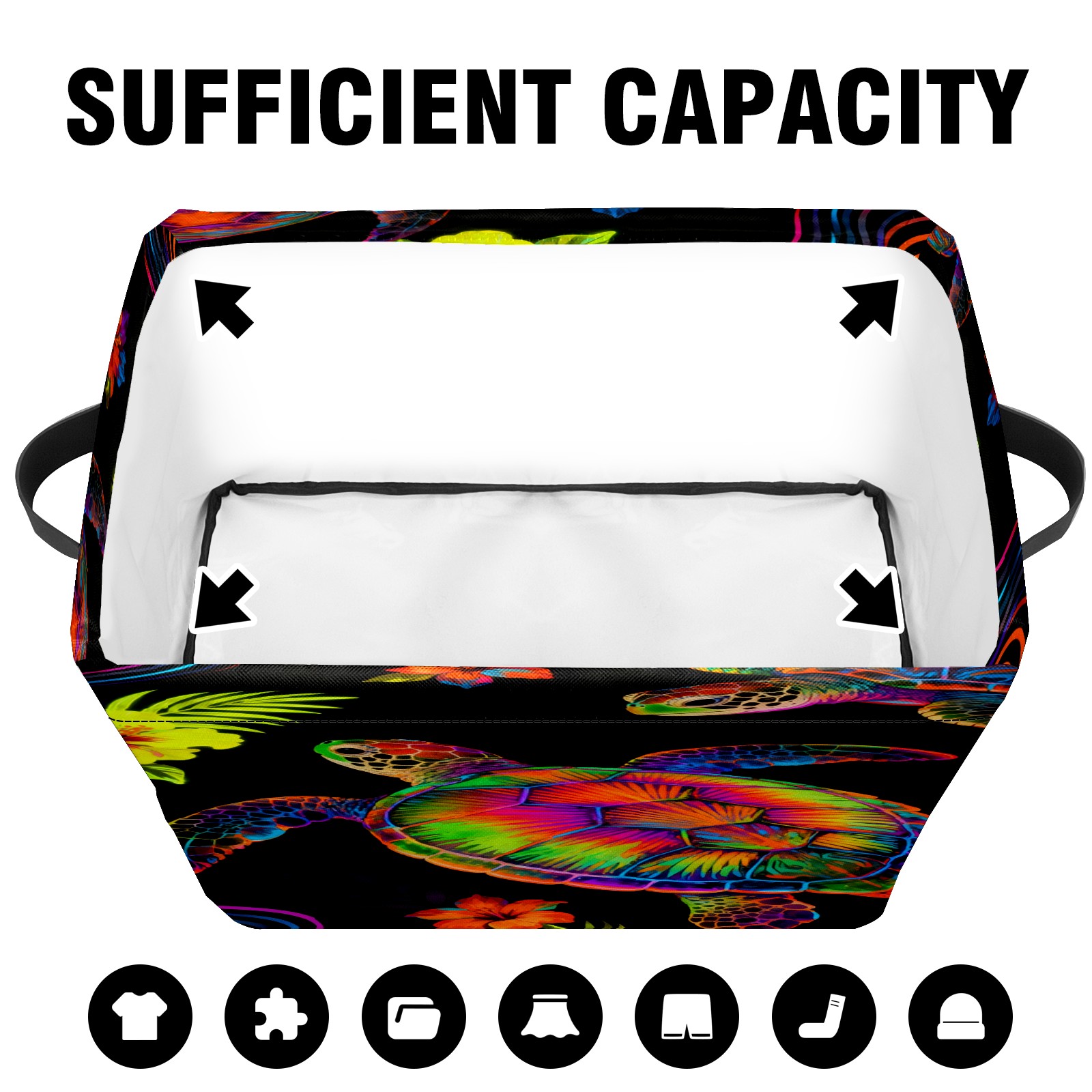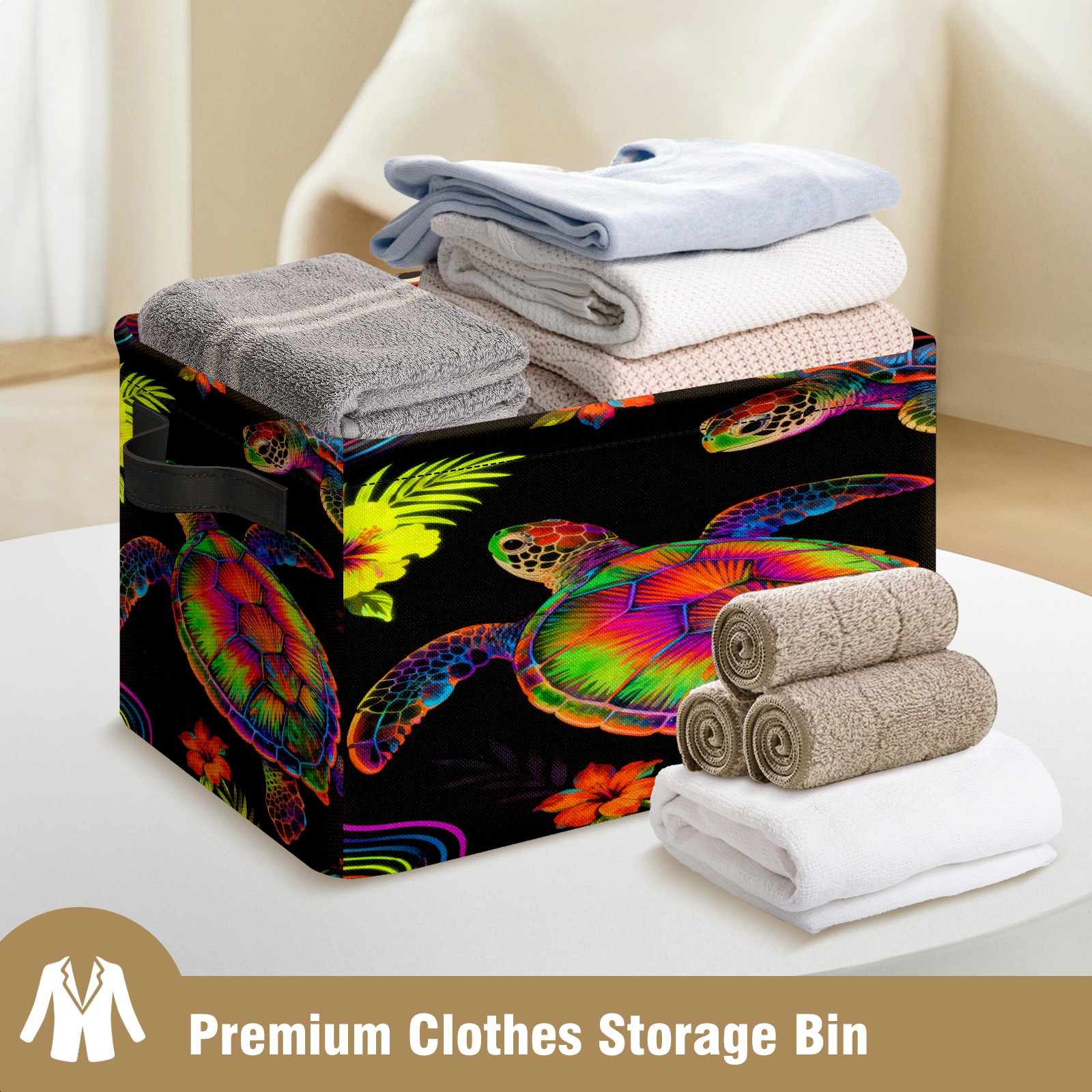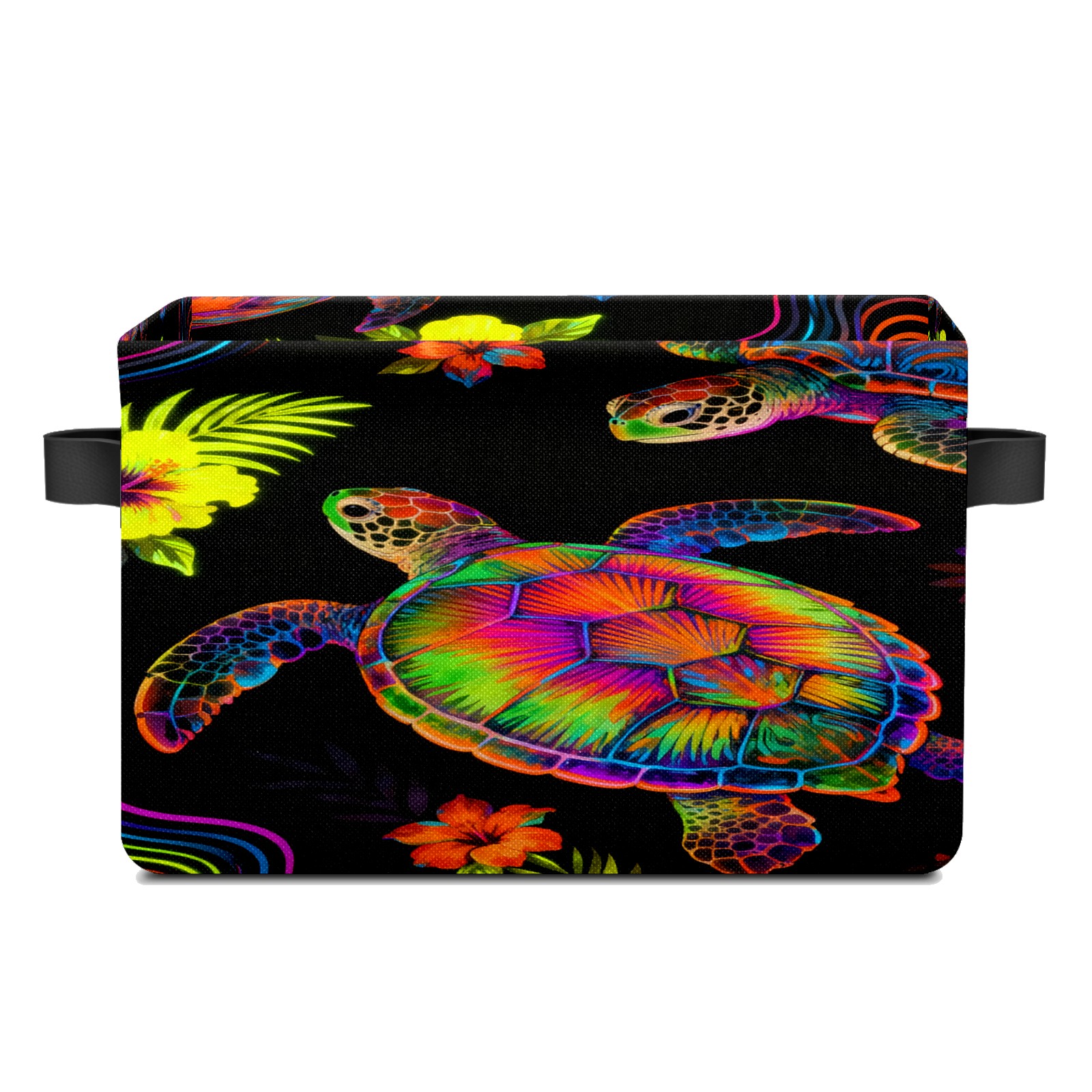 Iridescent Sea Turtle Tropical Flowers Large Storage Box, Foldable Toy Basket with Handle, for Organizing Clothes, Christmas Gift Storage Box, Children's Toys.