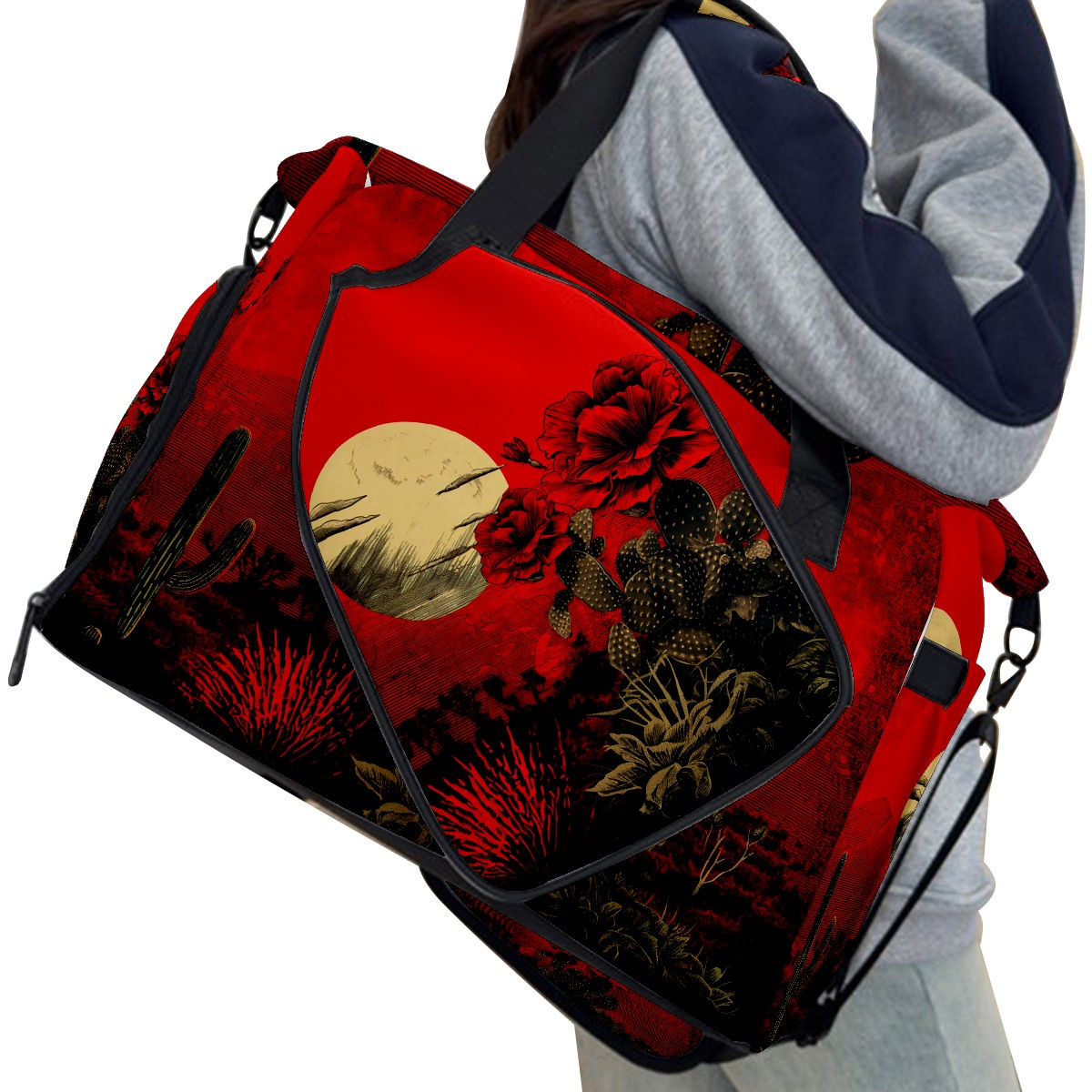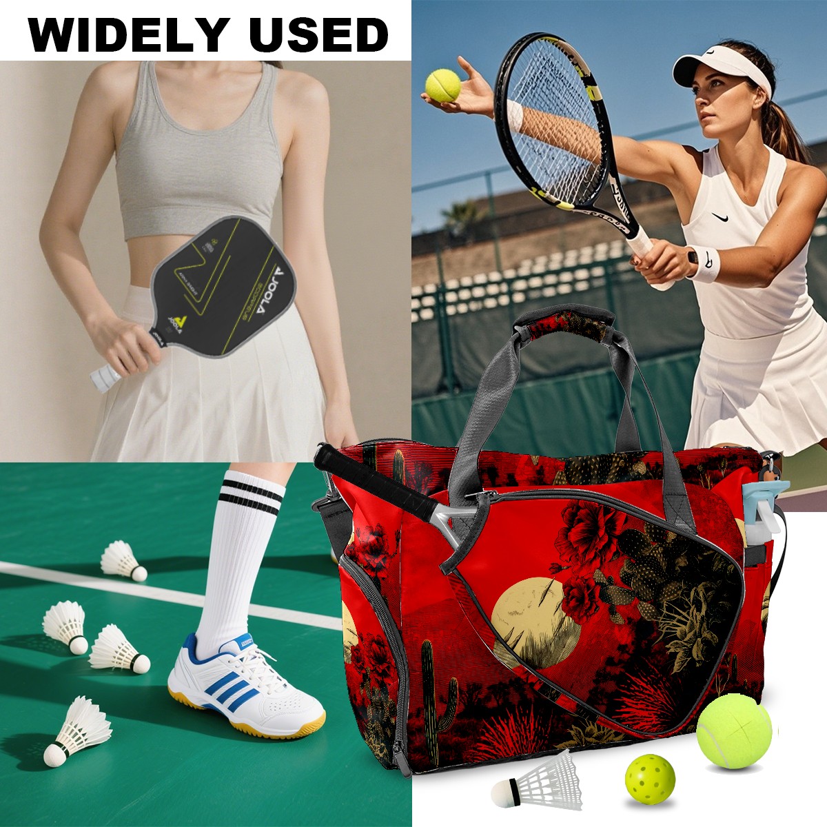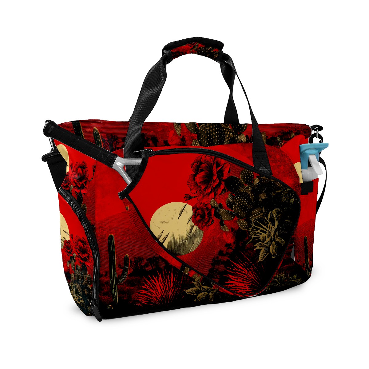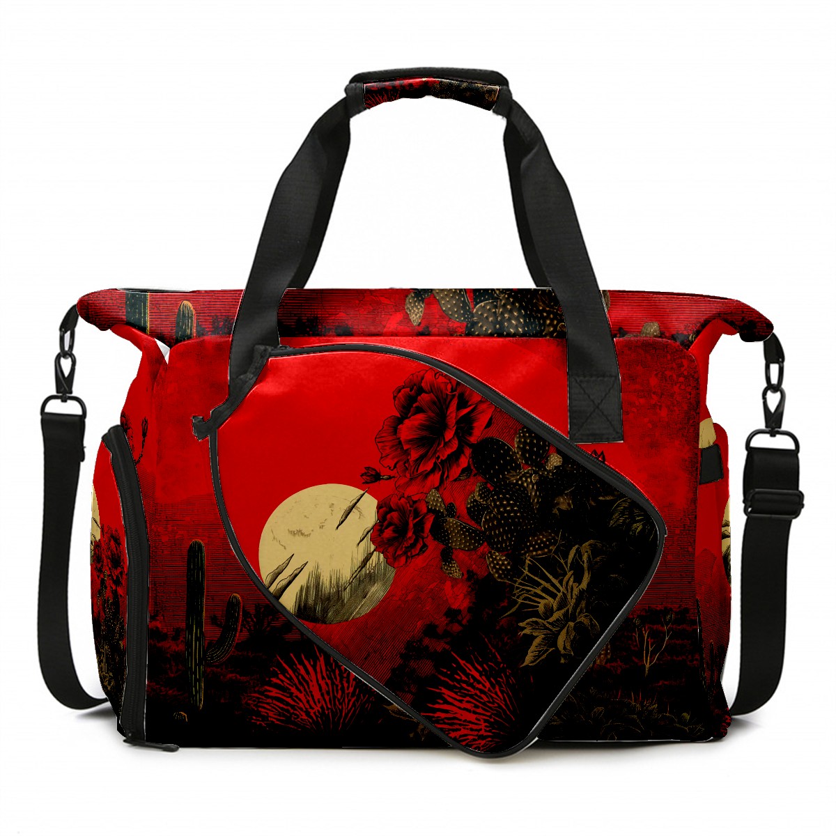 Pickleball Tote Bag Cactus Red Pickleball Bag with Paddle Storage for Women Men Large Sports Bag for Paddles Balls Tennis