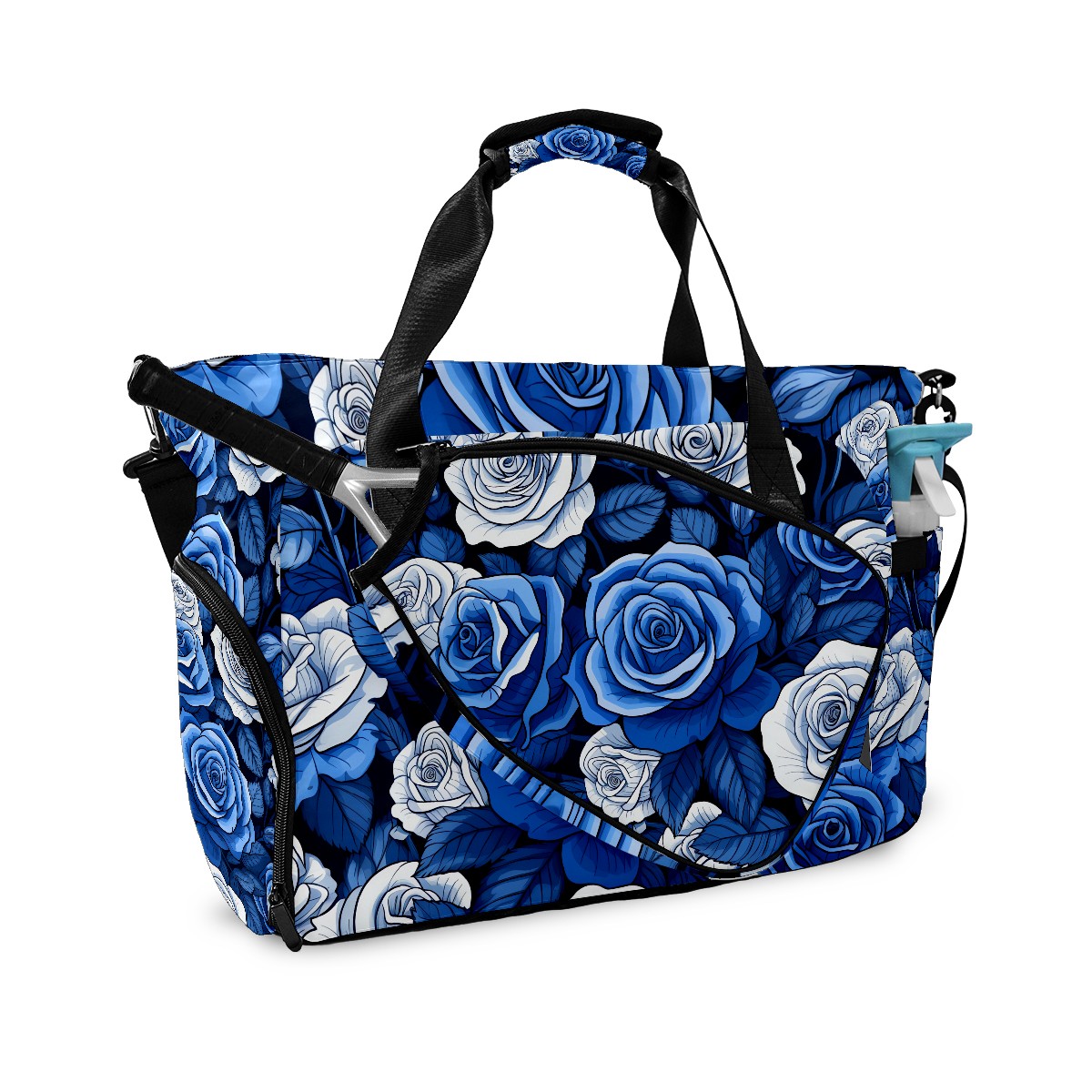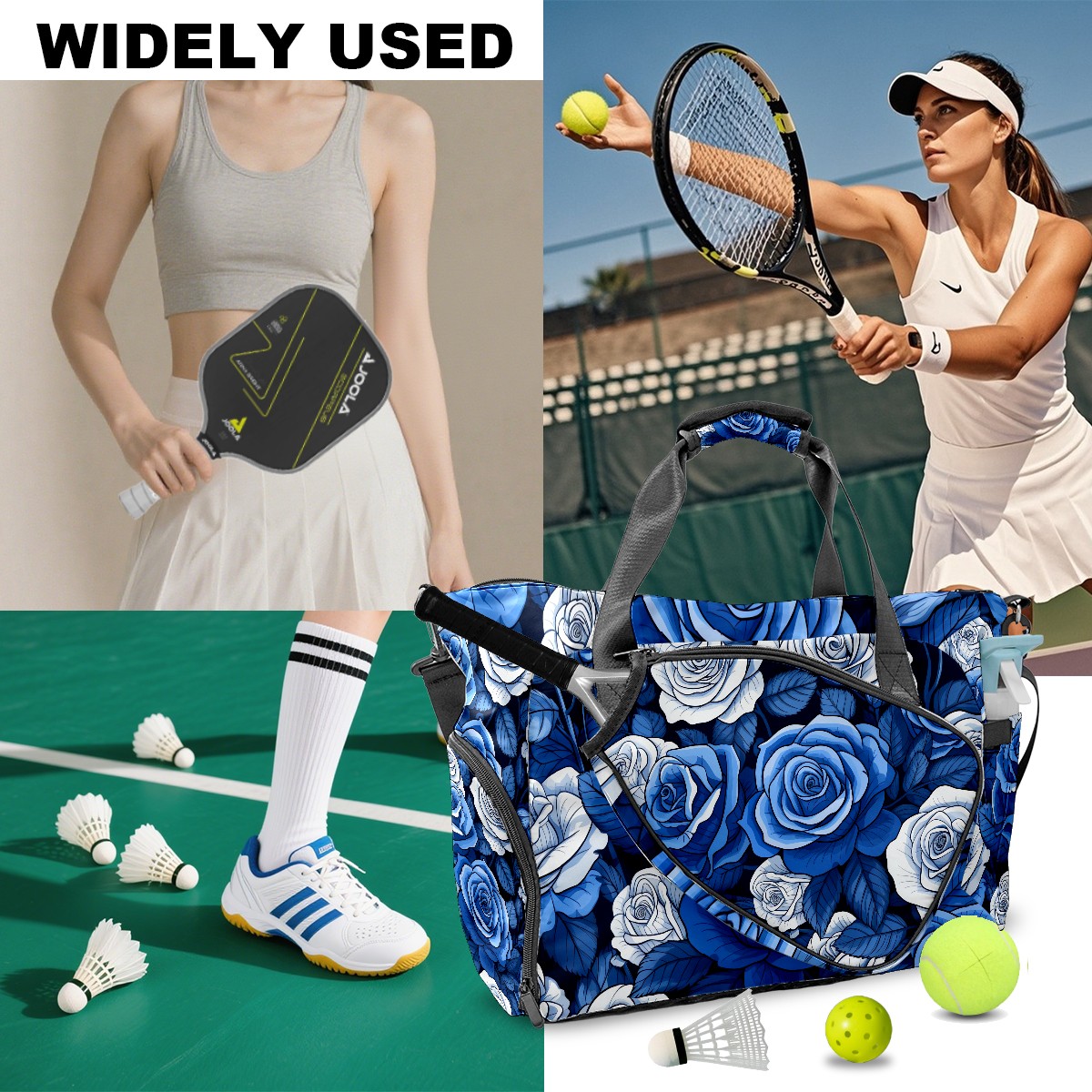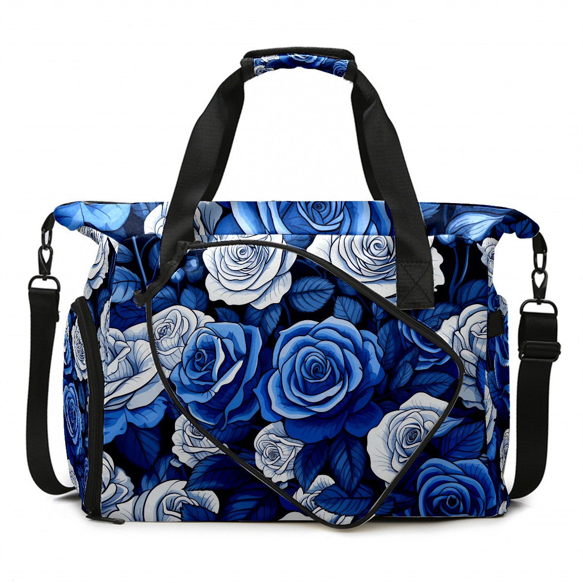 Pickleball Tote Bag Blue Roses Flower (1) Pickleball Bag with Paddle Storage for Women Men Large Sports Bag for Paddles Balls Tennis
