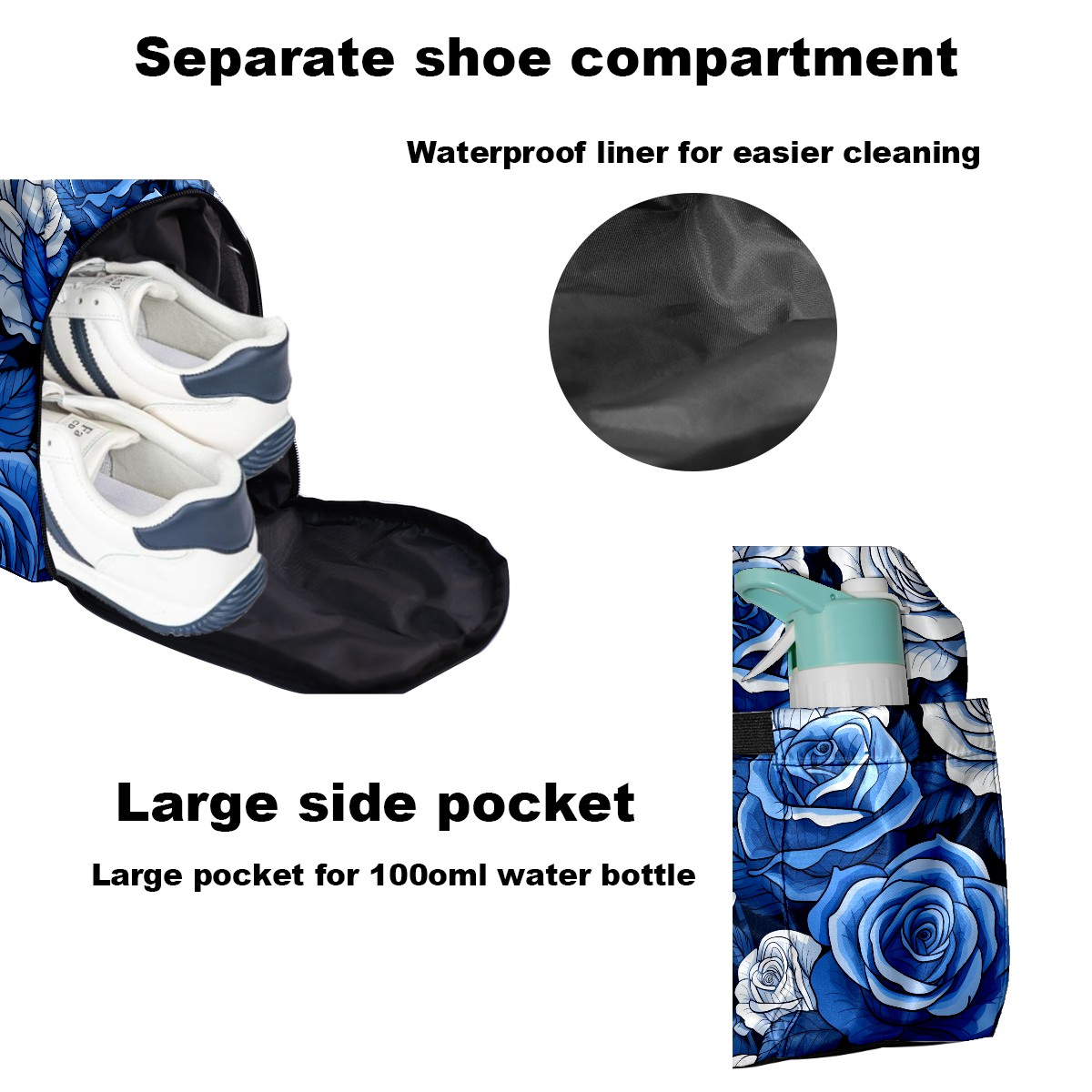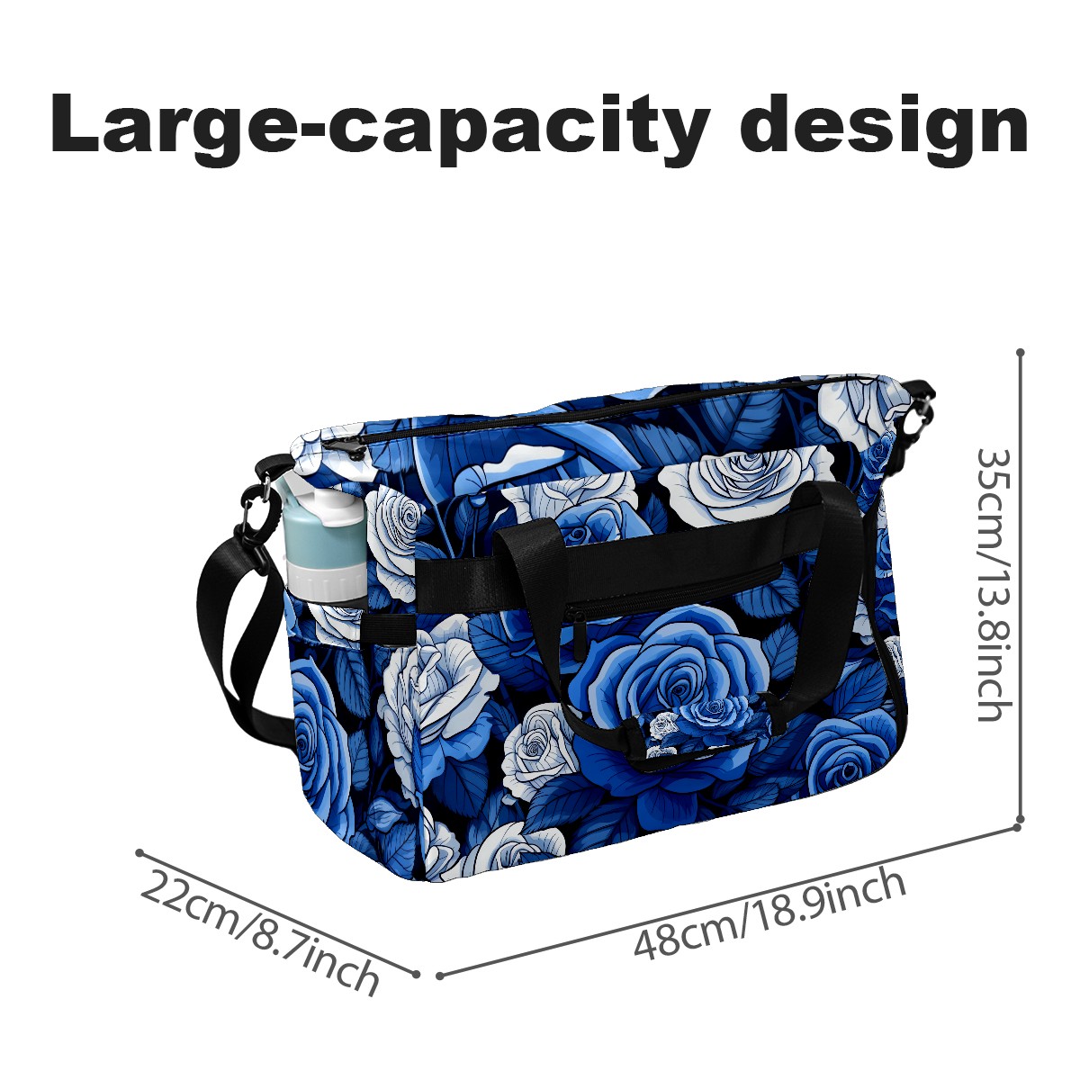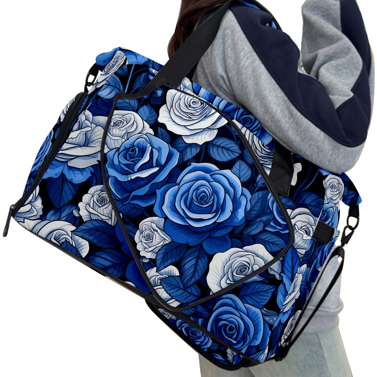 Pickleball Tote Bag Blue Roses Flower (1) Pickleball Bag with Paddle Storage for Women Men Large Sports Bag for Paddles Balls Tennis