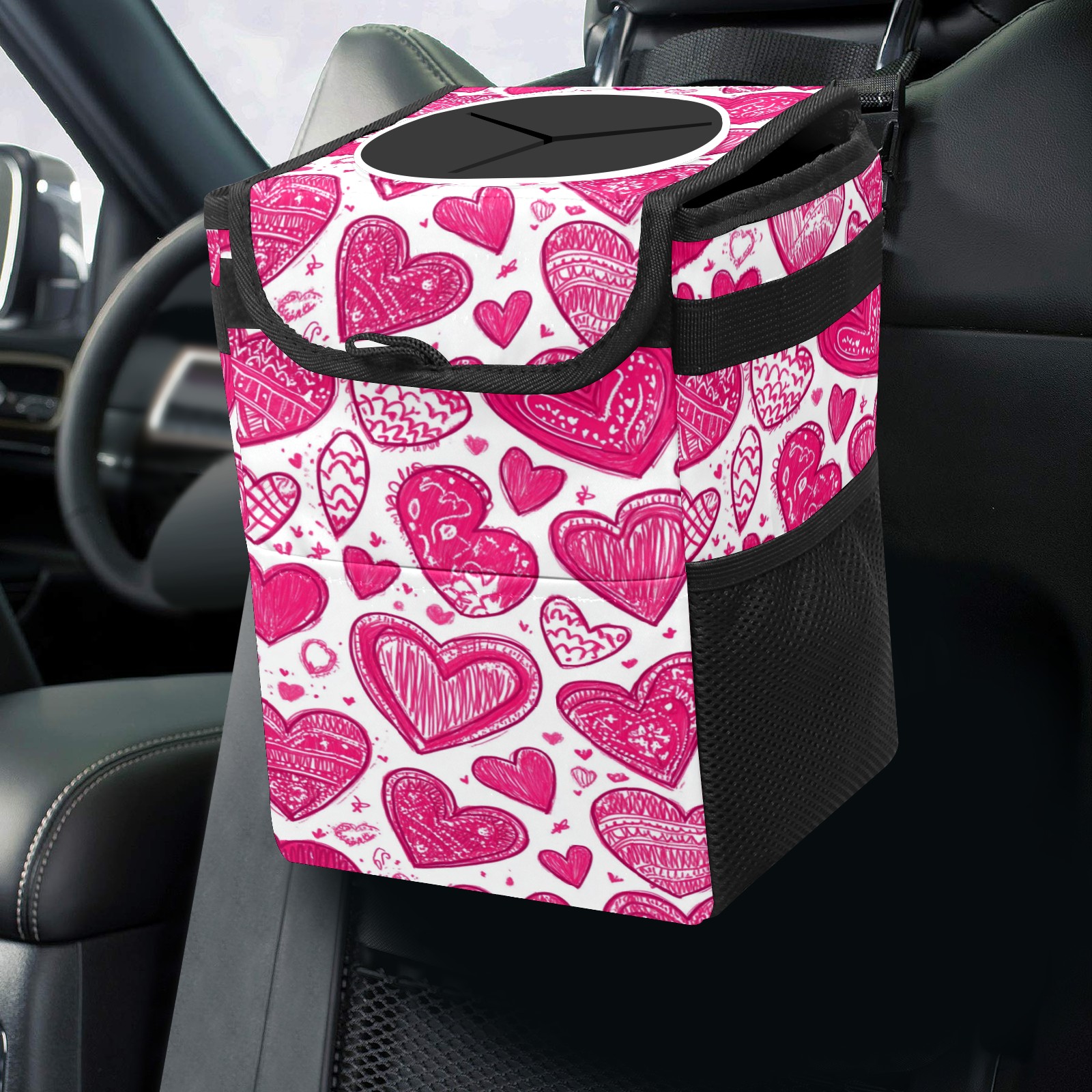 Universal Hanging Car Trash Can - Leakproof Design with Secure Lid | Fits SUV, Truck, Van | Front & Back Seat Friendly | Smart Automotive Accessory Heart