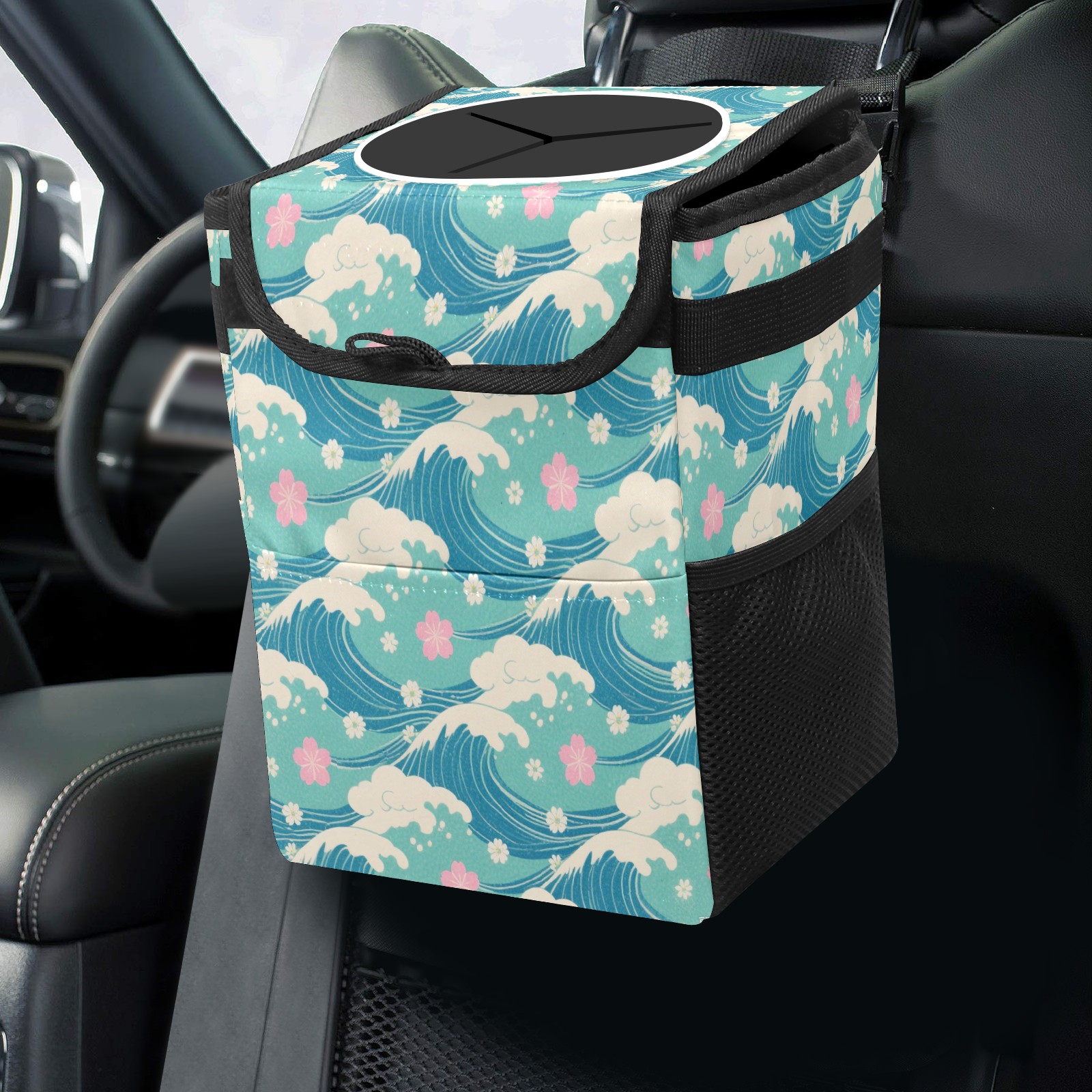 Universal Hanging Car Trash Can - Leakproof Design with Secure Lid | Fits SUV, Truck, Van | Front & Back Seat Friendly | Smart Automotive Accessory Japanese Style