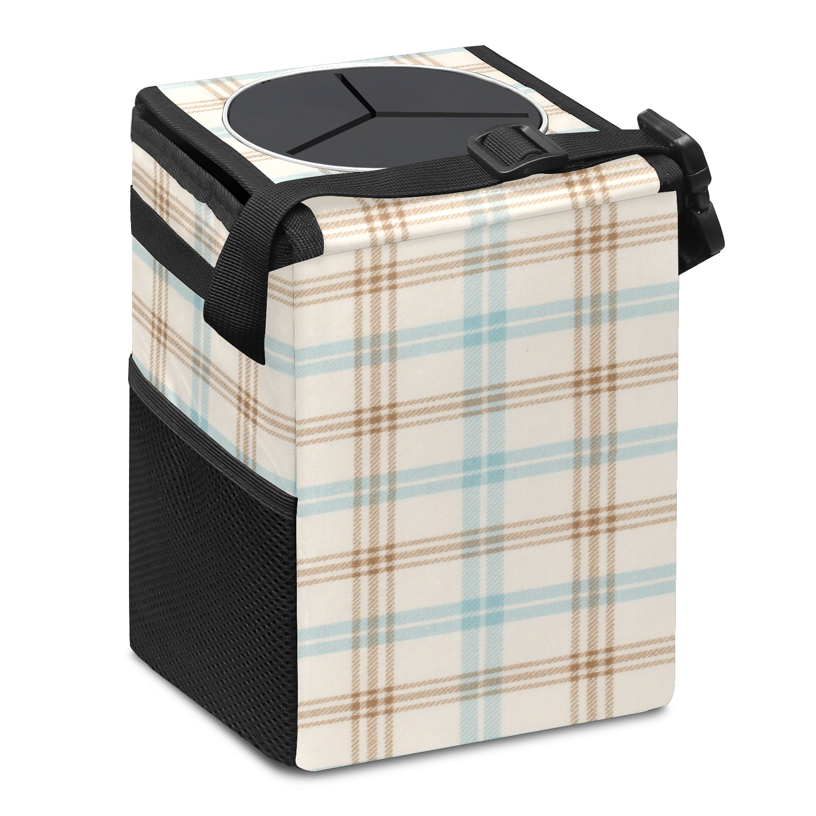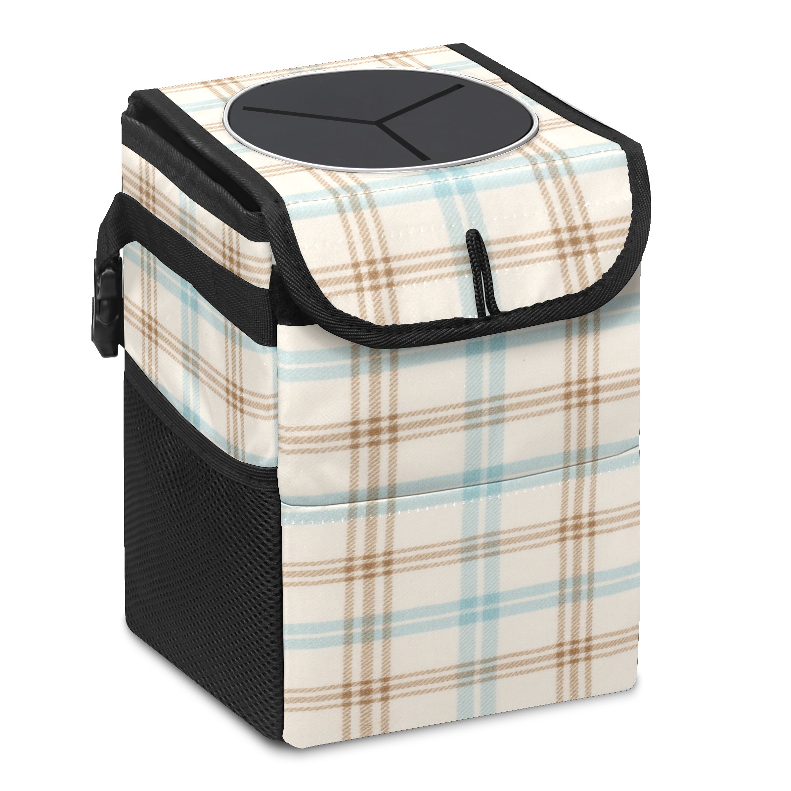 Universal Hanging Car Trash Can - Leakproof Design with Secure Lid | Fits SUV, Truck, Van | Front & Back Seat Friendly | Smart Automotive Accessory Brown Plaid