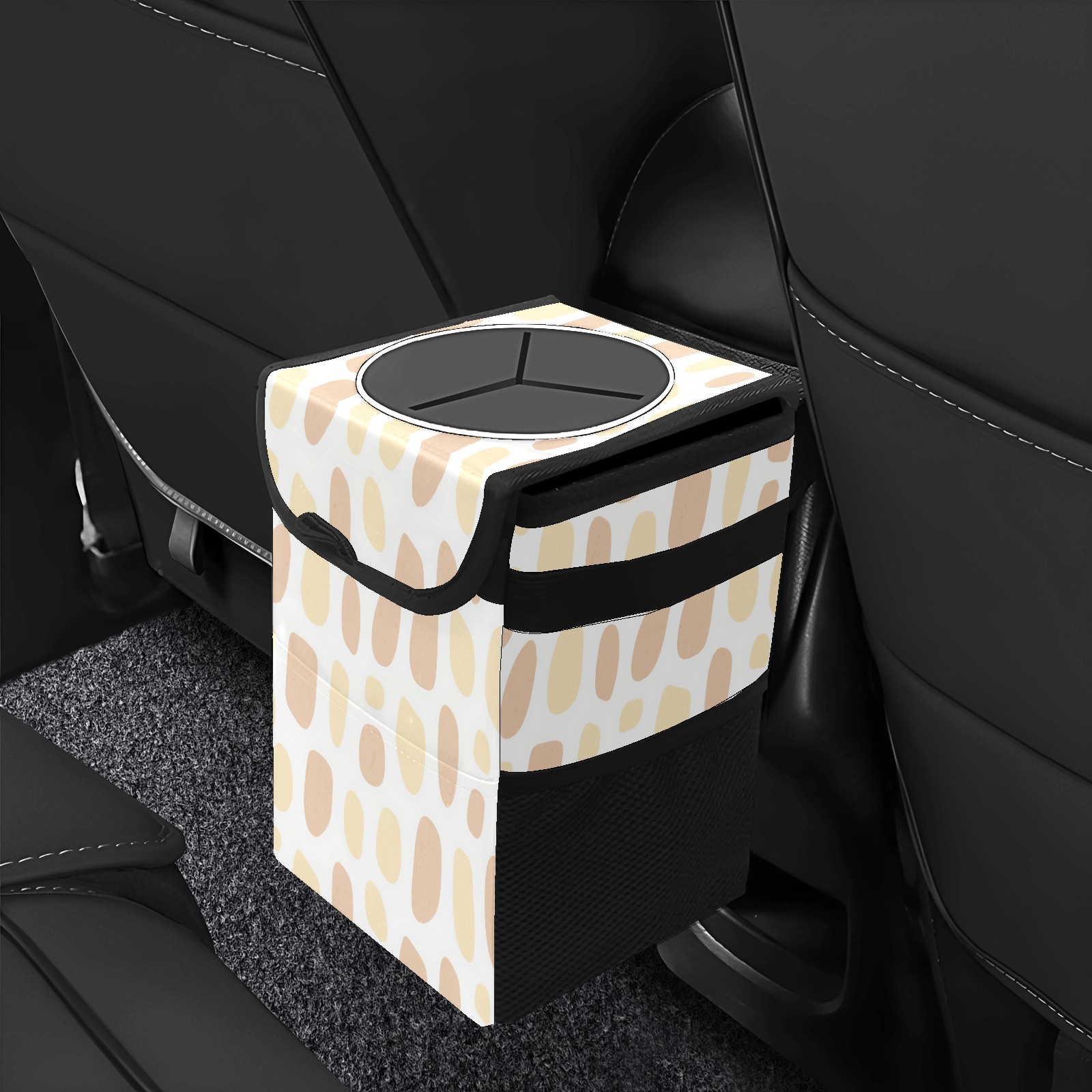 • <p>This multi-functional car trash can features a stylish printed design, combining practicality and aesthetics. Made with high-quality twill fabric and woven straps, it's sturdy and durable. Dimensions: 24×17×16cm (9.5×6.7×6.3 inches). The top rubber opening lid makes disposing of trash easy, while side mesh pockets and a front pocket easily store snacks, mobile phones, and other small items. Equipped with a dual securing system of straps and elastic hooks, it can be flexibly hung behind headrests, inside armrest boxes, or hooked to the bottom of seat cushions. Not only can it be used as a trash can, but it can also function as a food or miscellaneous item storage box, achieving multiple uses. When not in use, it can be folded for storage, saving space and creating a clean and tidy environment for your car.<br></p>
