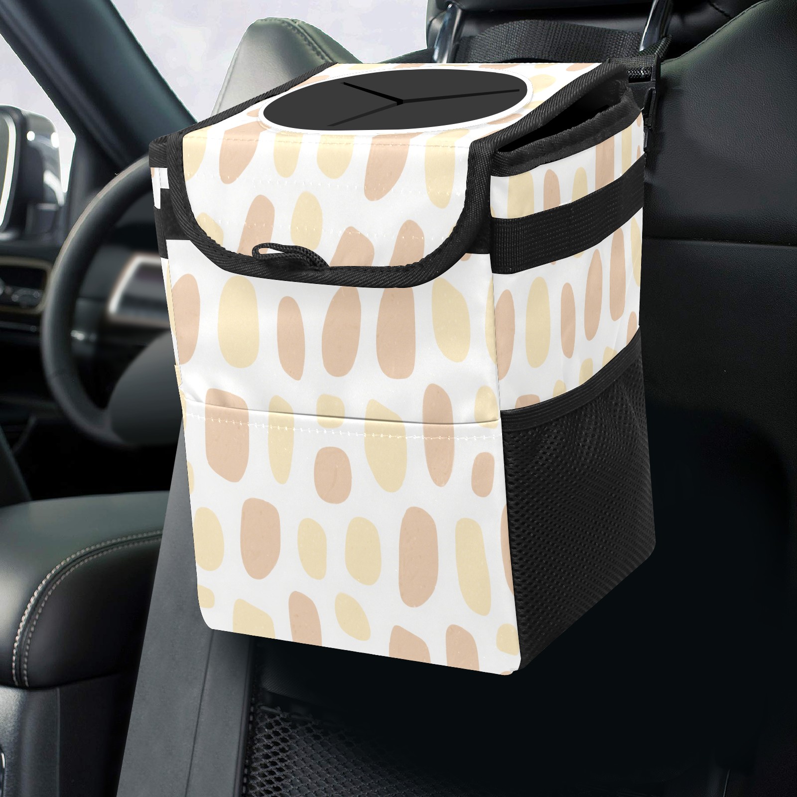 Universal Hanging Car Trash Can - Leakproof Design with Secure Lid | Fits SUV, Truck, Van | Front & Back Seat Friendly | Smart Automotive Accessory Brown Stripes