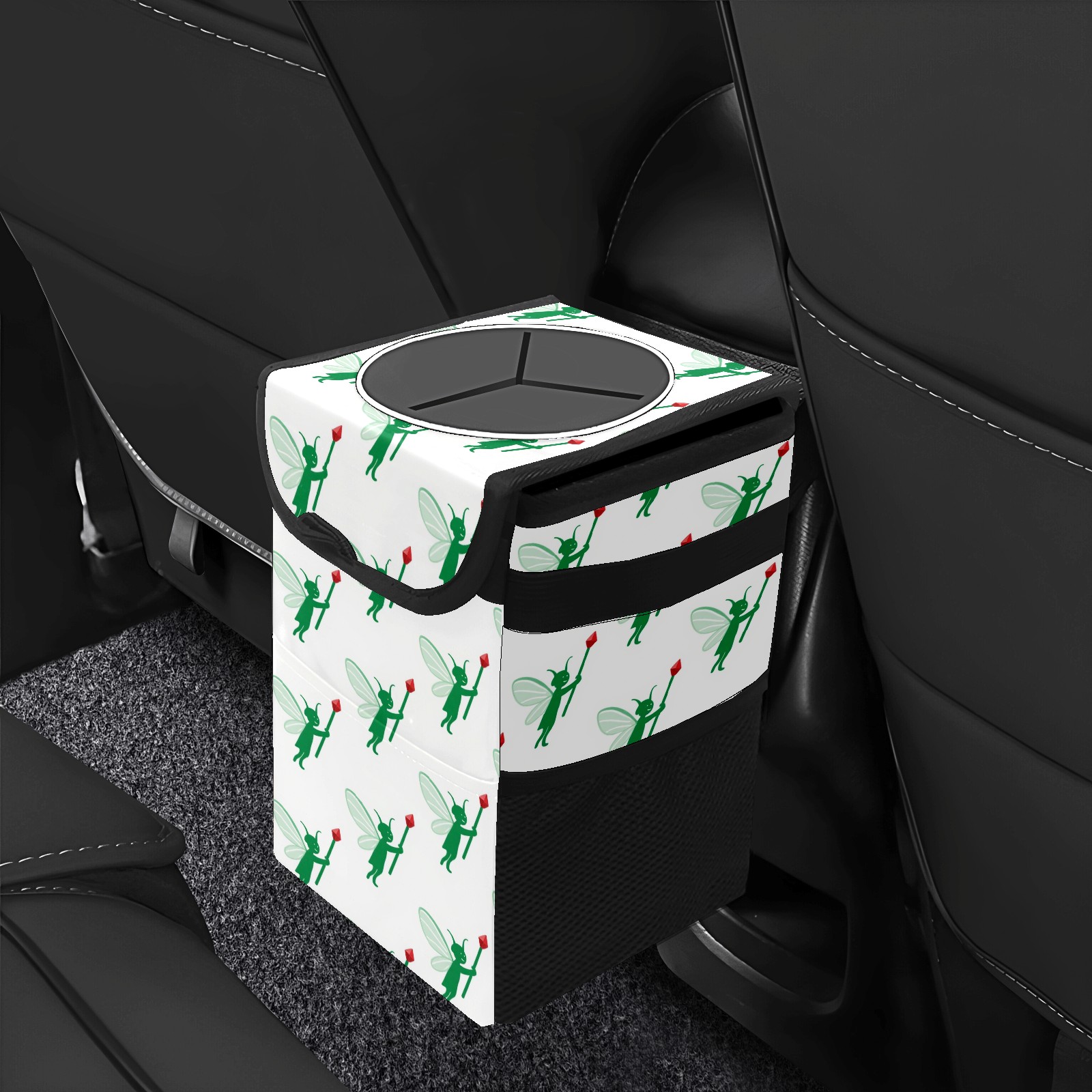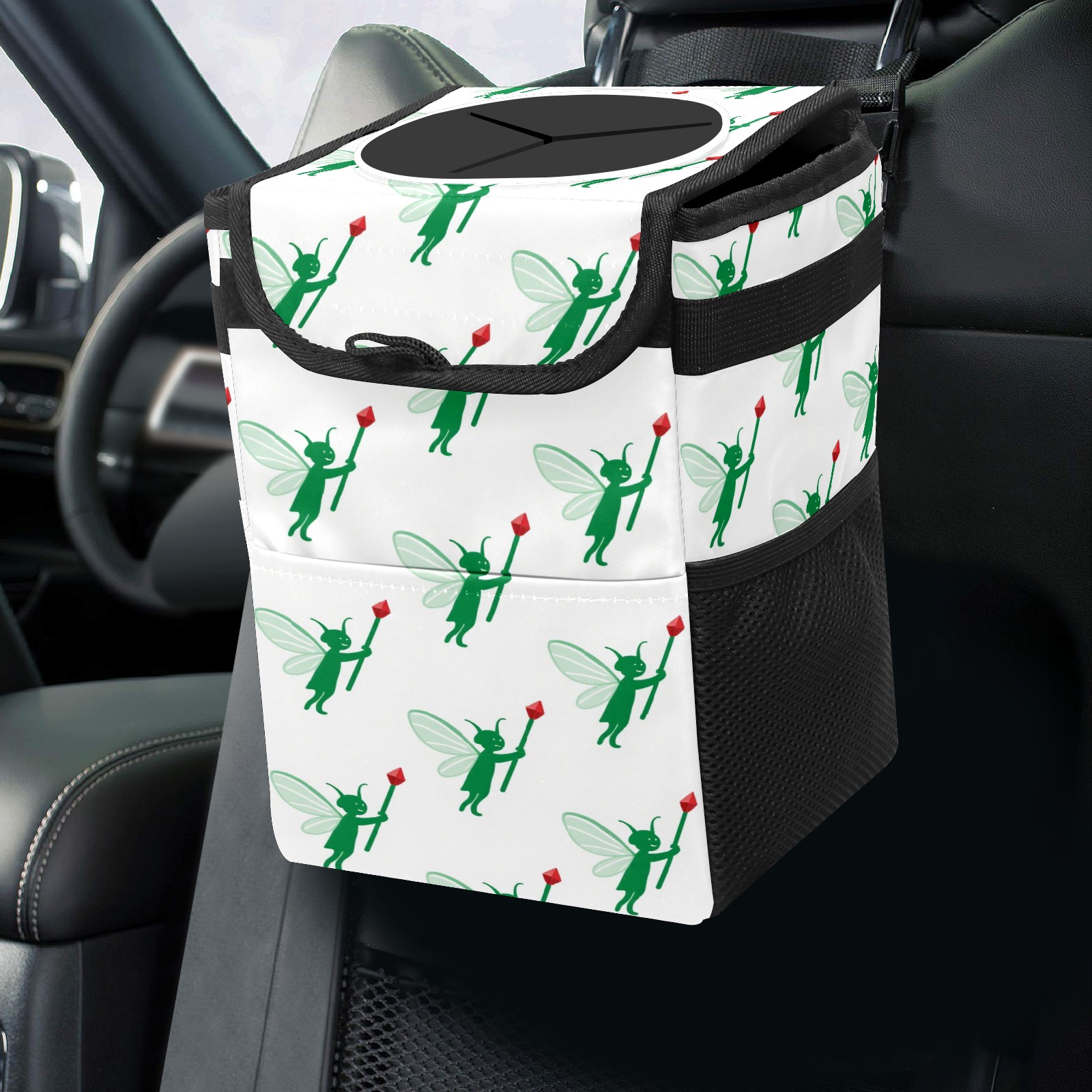Universal Hanging Car Trash Can - Leakproof Design with Secure Lid | Fits SUV, Truck, Van | Front & Back Seat Friendly | Smart Automotive Accessory Green Cartoon Patterns