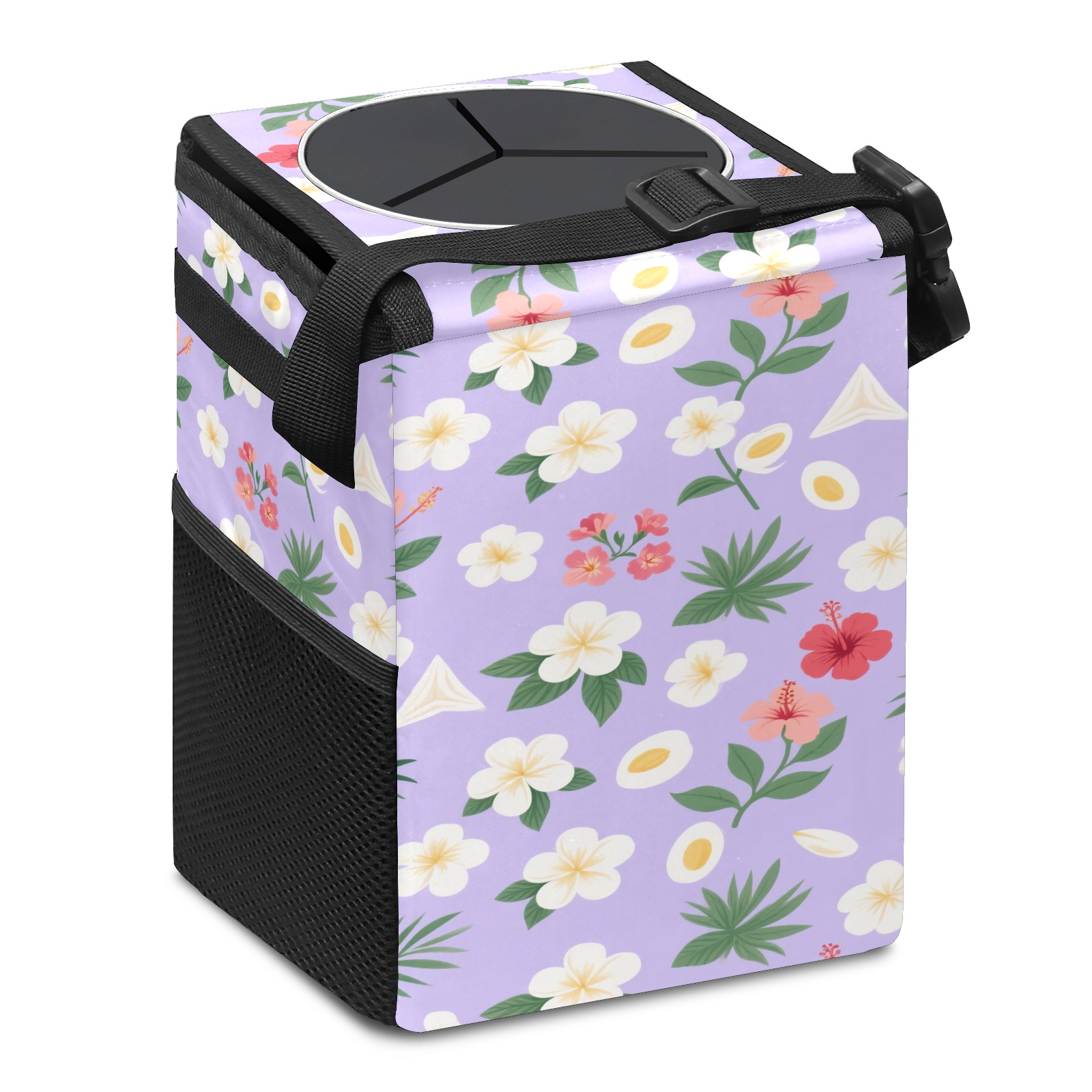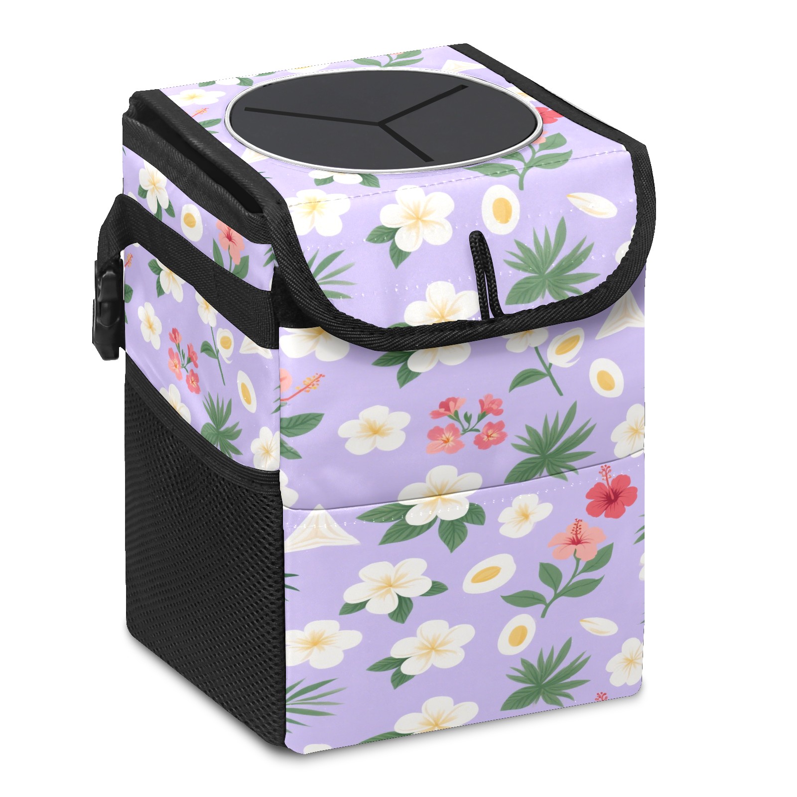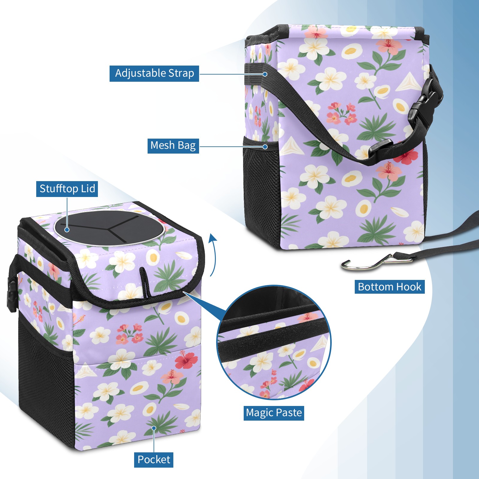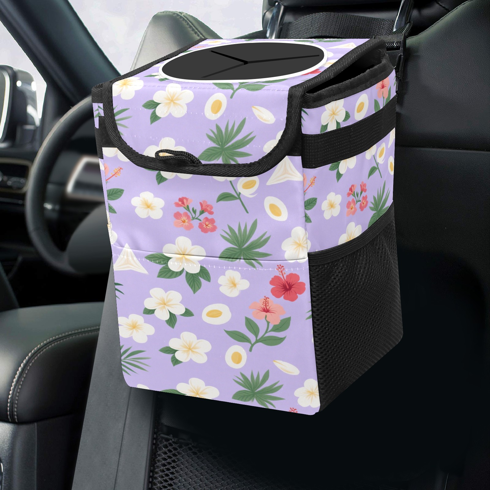 Universal Hanging Car Trash Can - Leakproof Design with Secure Lid | Fits SUV, Truck, Van | Front & Back Seat Friendly | Smart Automotive Accessory Flower Purple
