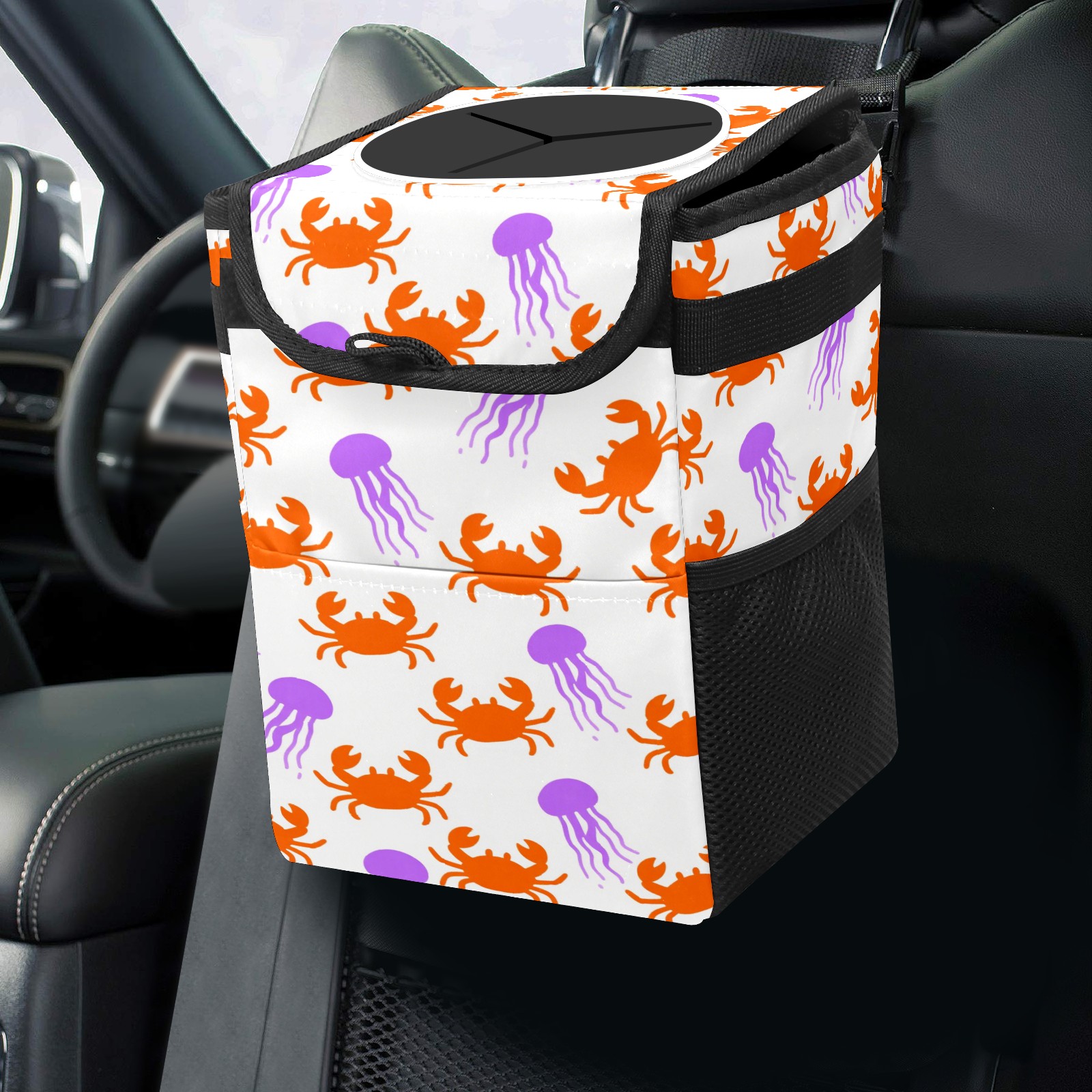 Universal Hanging Car Trash Can - Leakproof Design with Secure Lid | Fits SUV, Truck, Van | Front & Back Seat Friendly | Smart Automotive Accessory Colorful Crab Octopus