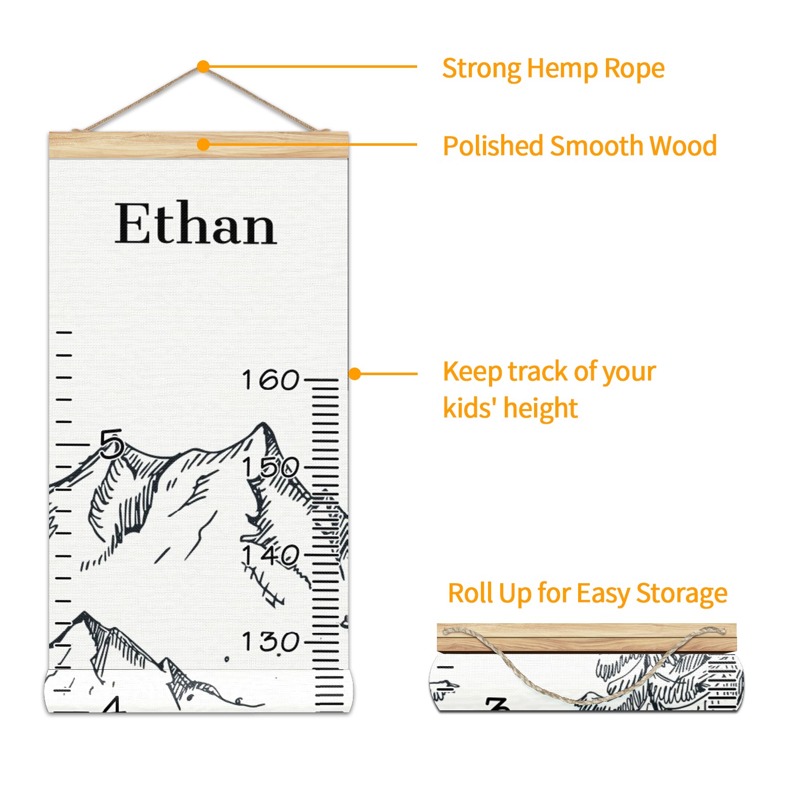 Personalized Kids Name Growth Chart Ruler for Wall Wood Frame Canvas Height Measure Chart 13.4x56 in Hanging Growth Chart Winter Mountain11.20 Boys Girls Room Decor