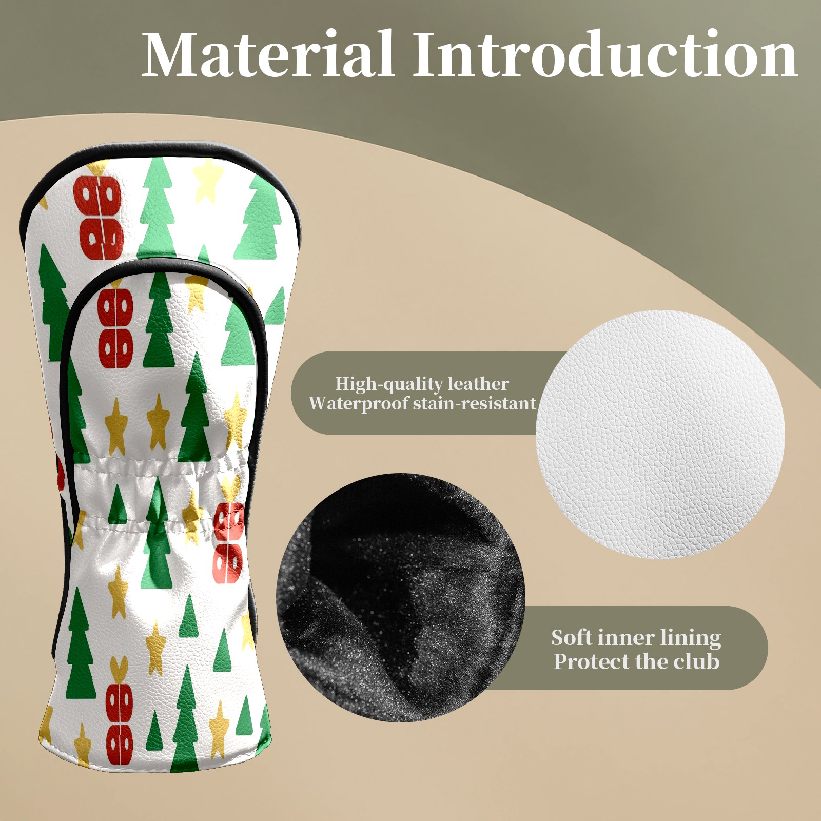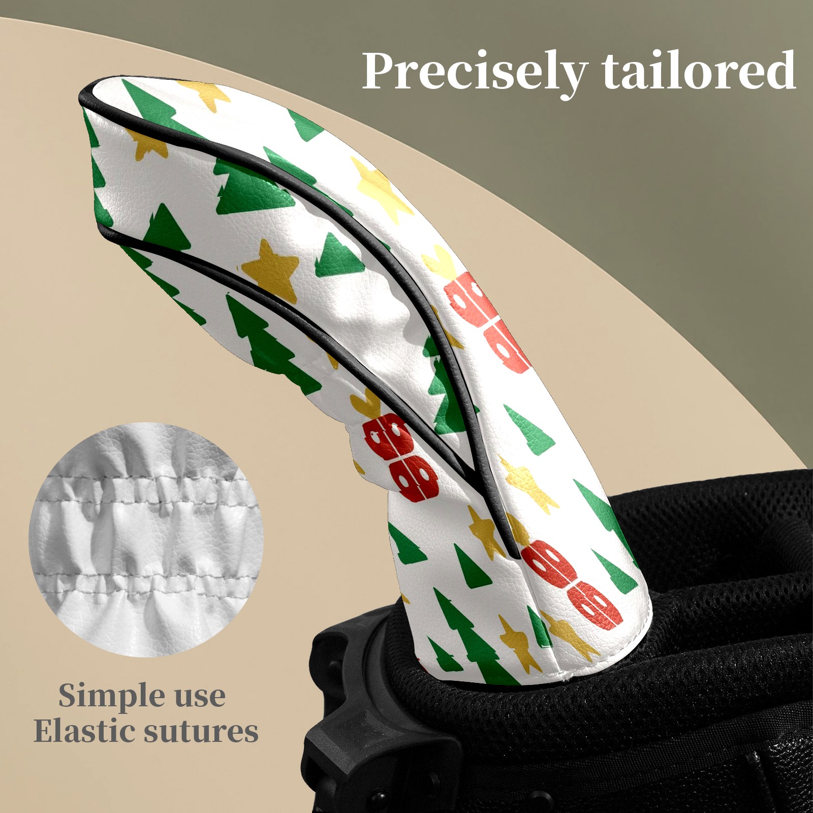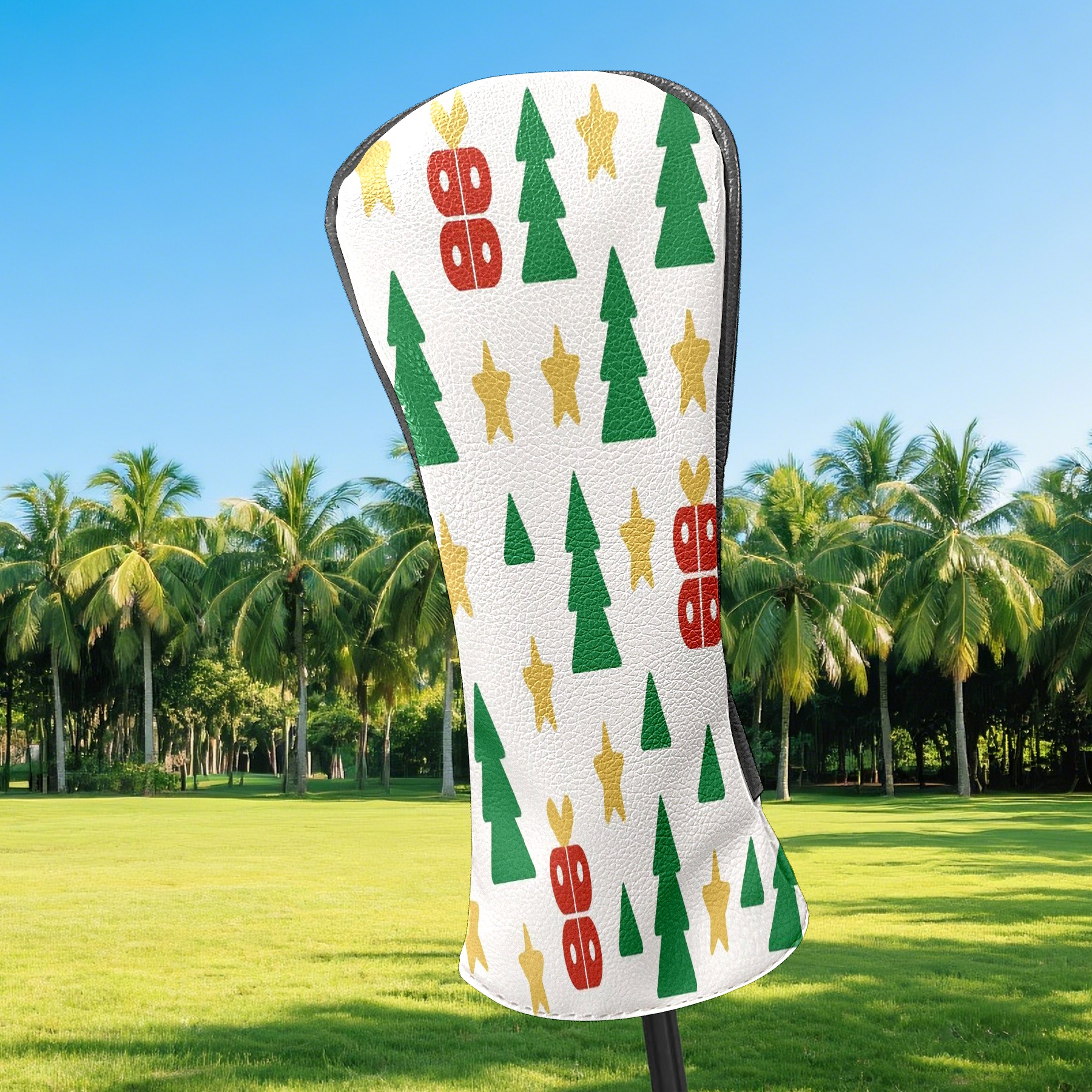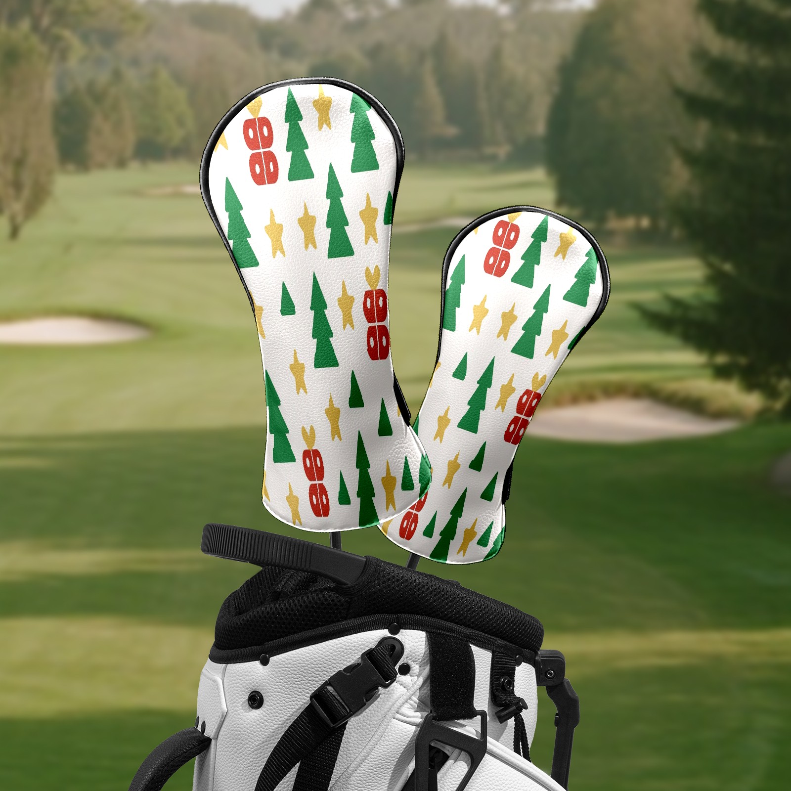 Counullo Golf Head Covers - Beige Xmas Trees Driver Fairway Headcover, Durable PU Leather & Soft Velvet Lining, Secure Elastic Band, Perfect Christmas Golf Gift for Men