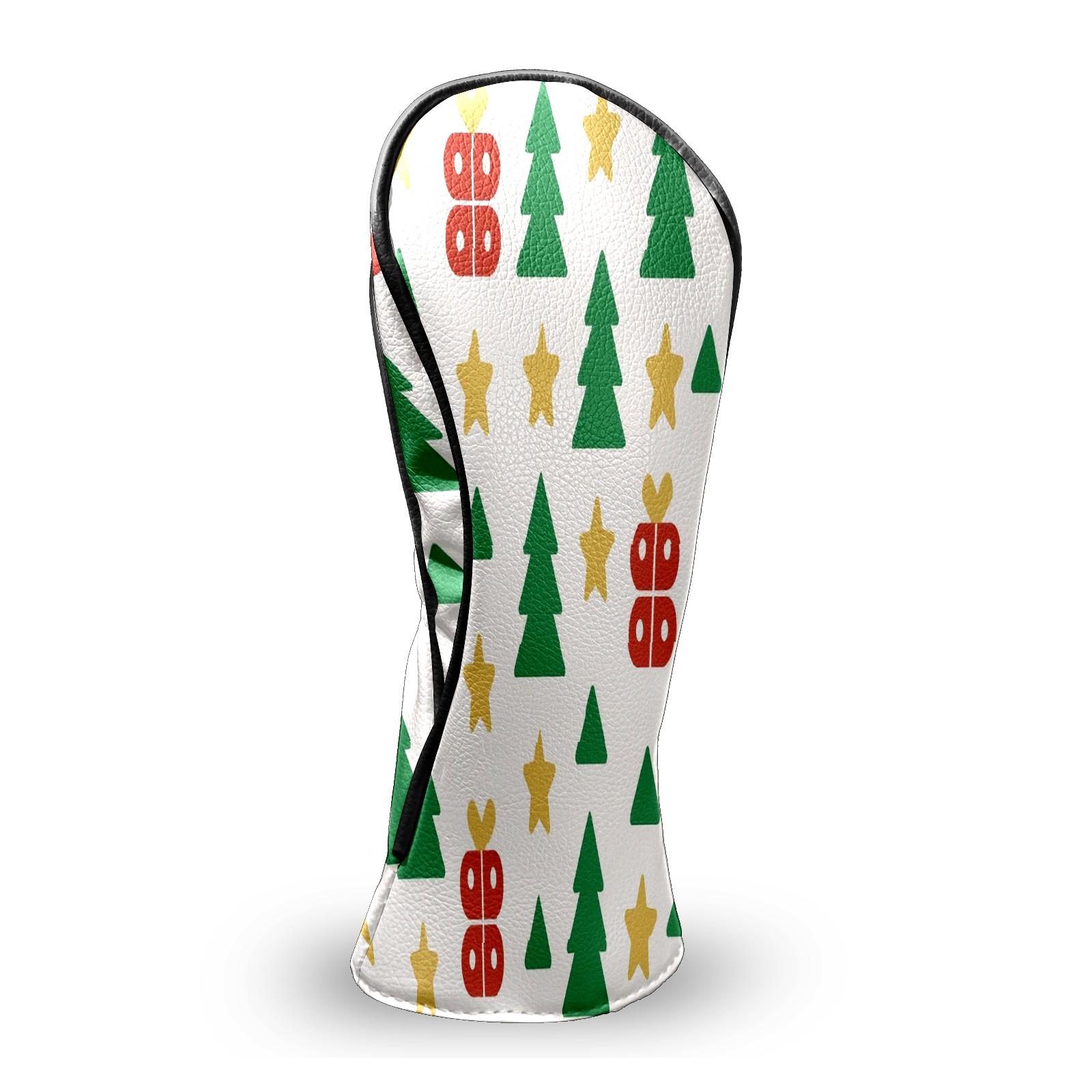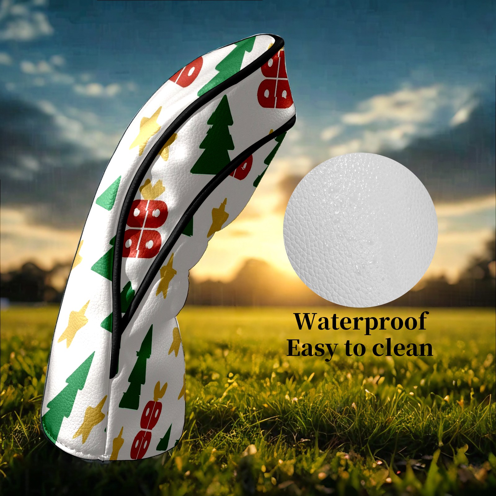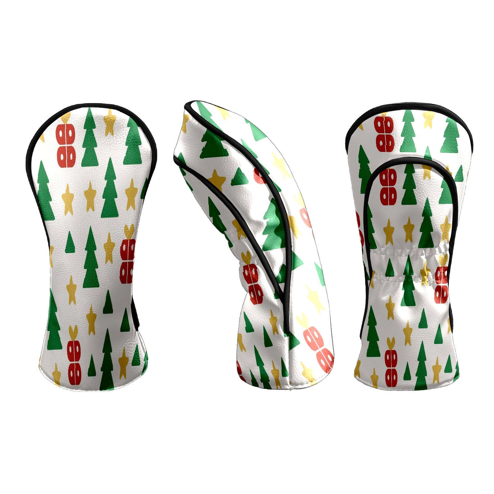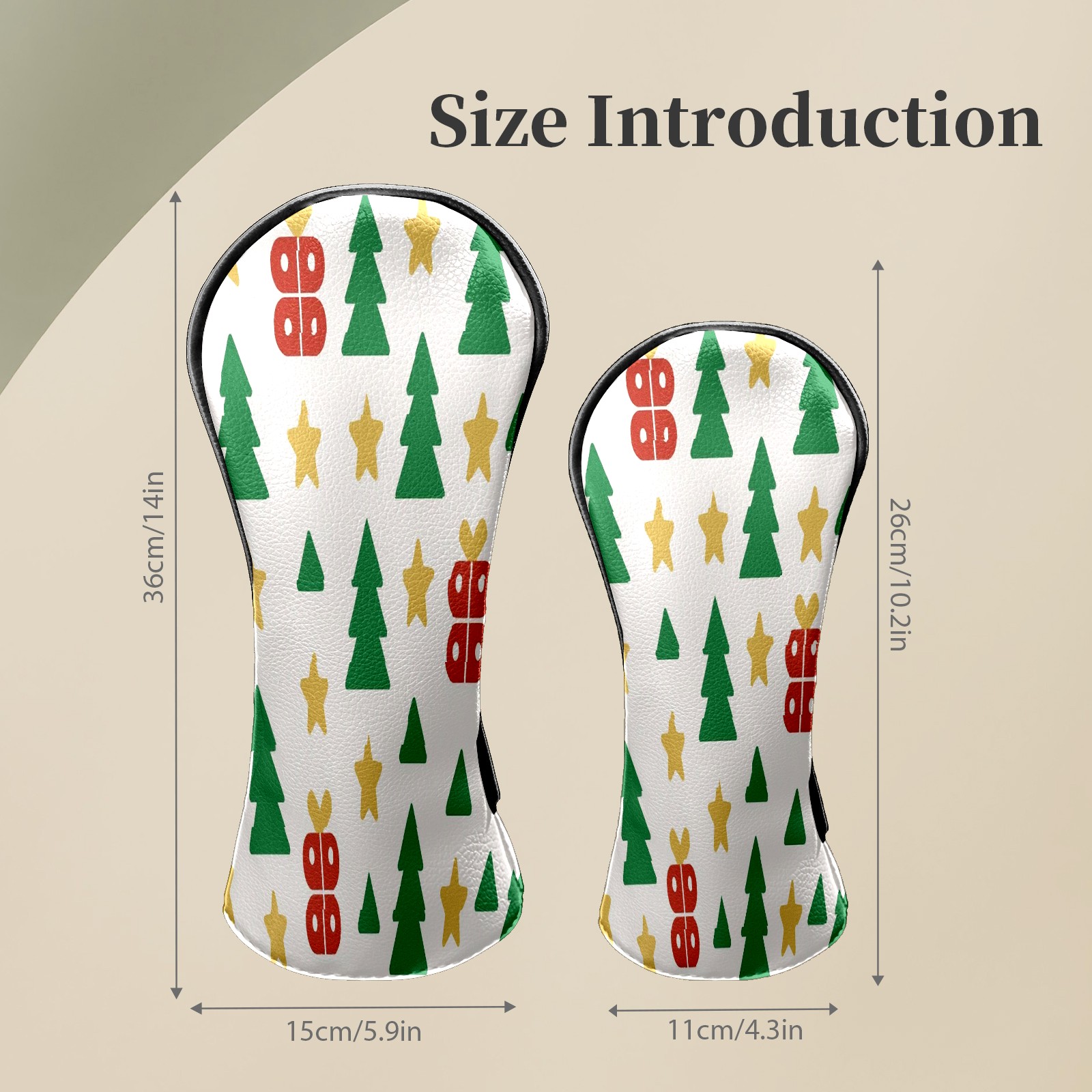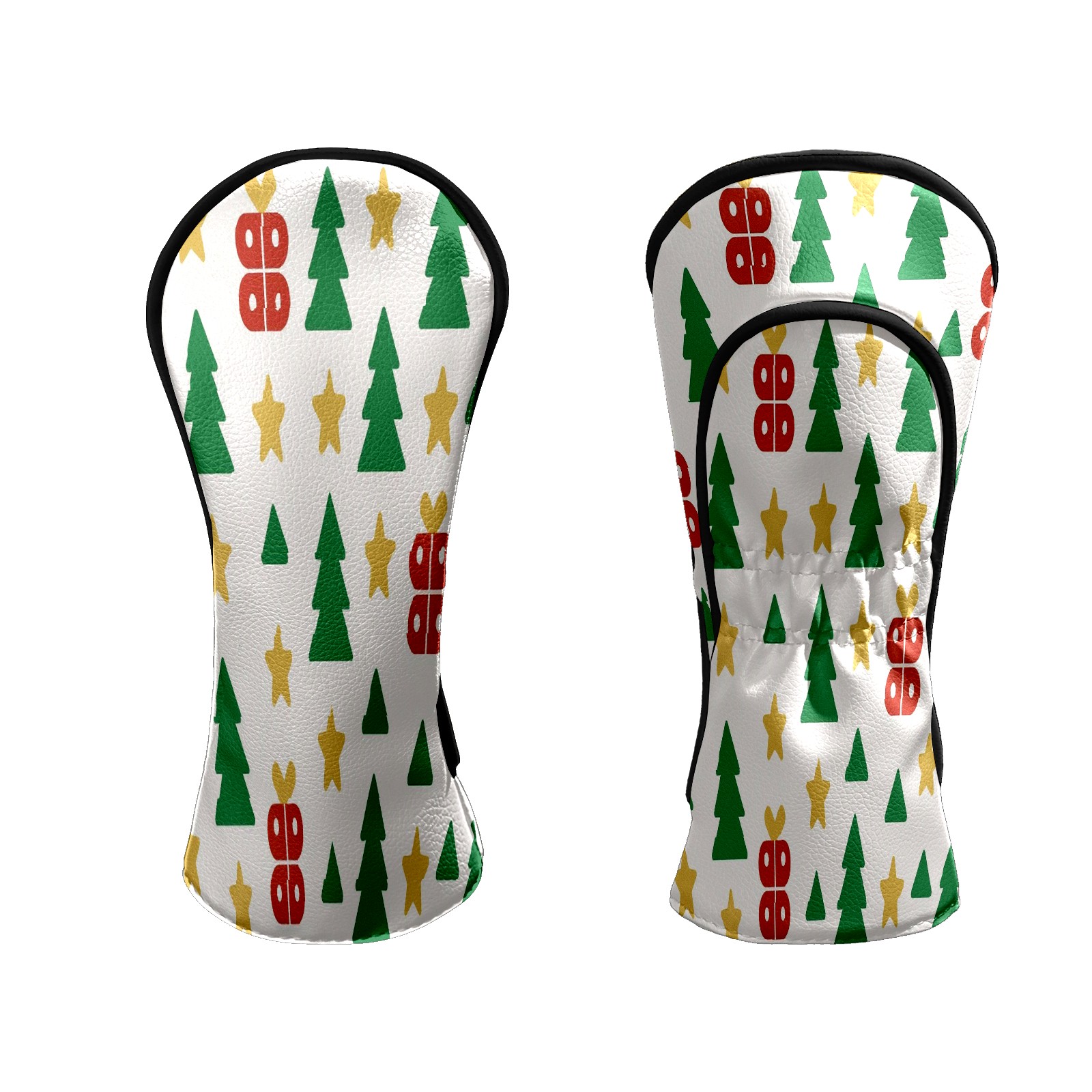 Counullo Golf Head Covers - Beige Xmas Trees Driver Fairway Headcover, Durable PU Leather & Soft Velvet Lining, Secure Elastic Band, Perfect Christmas Golf Gift for Men