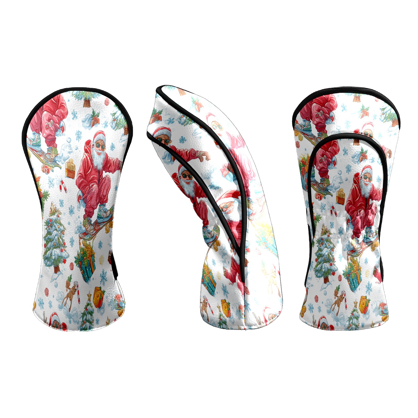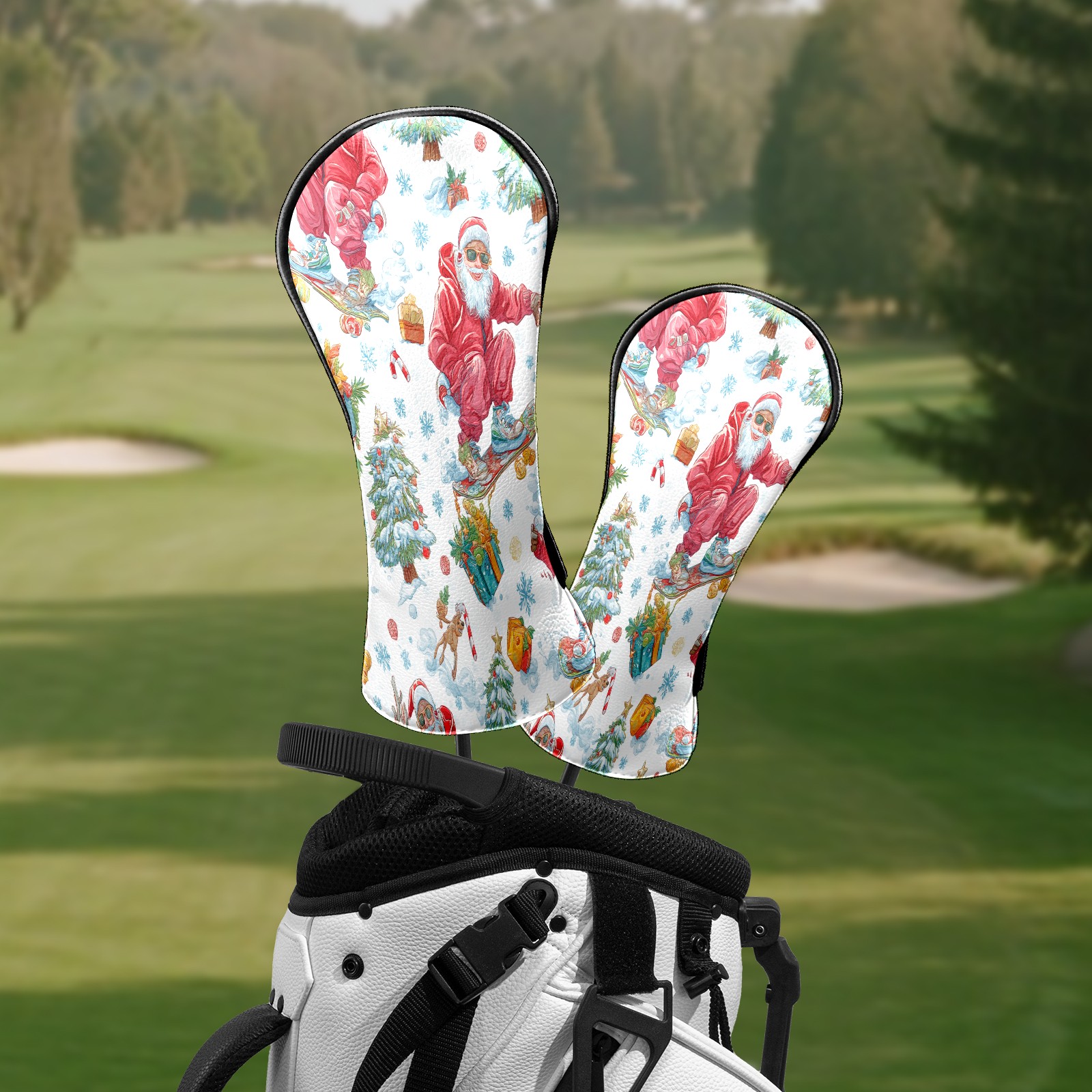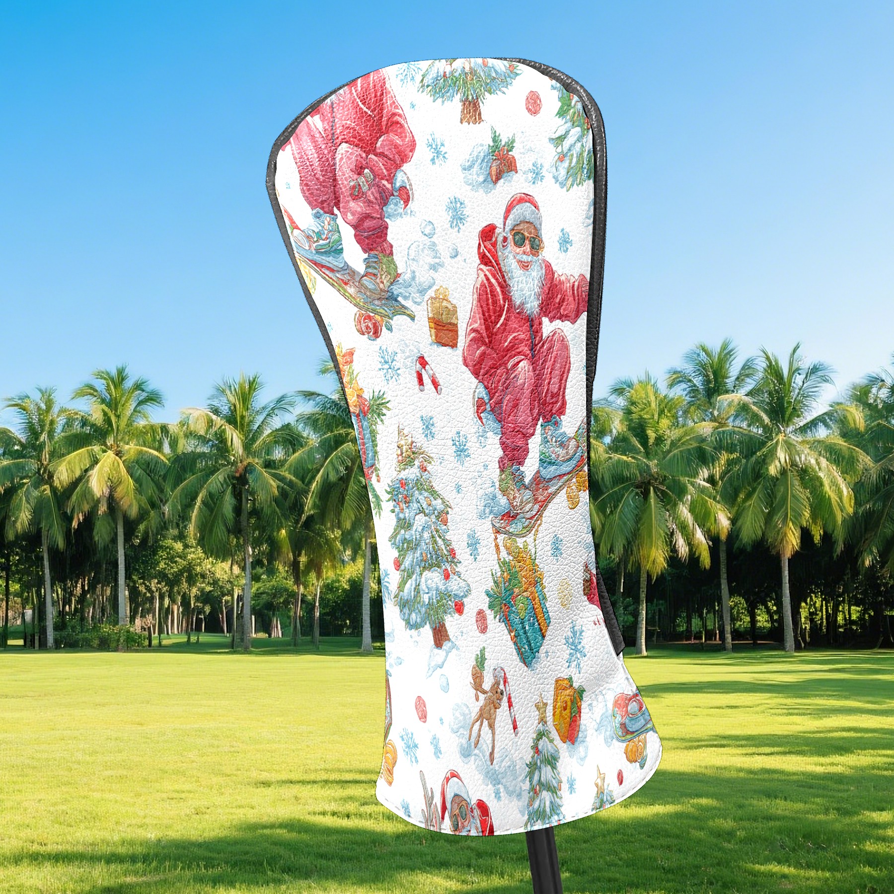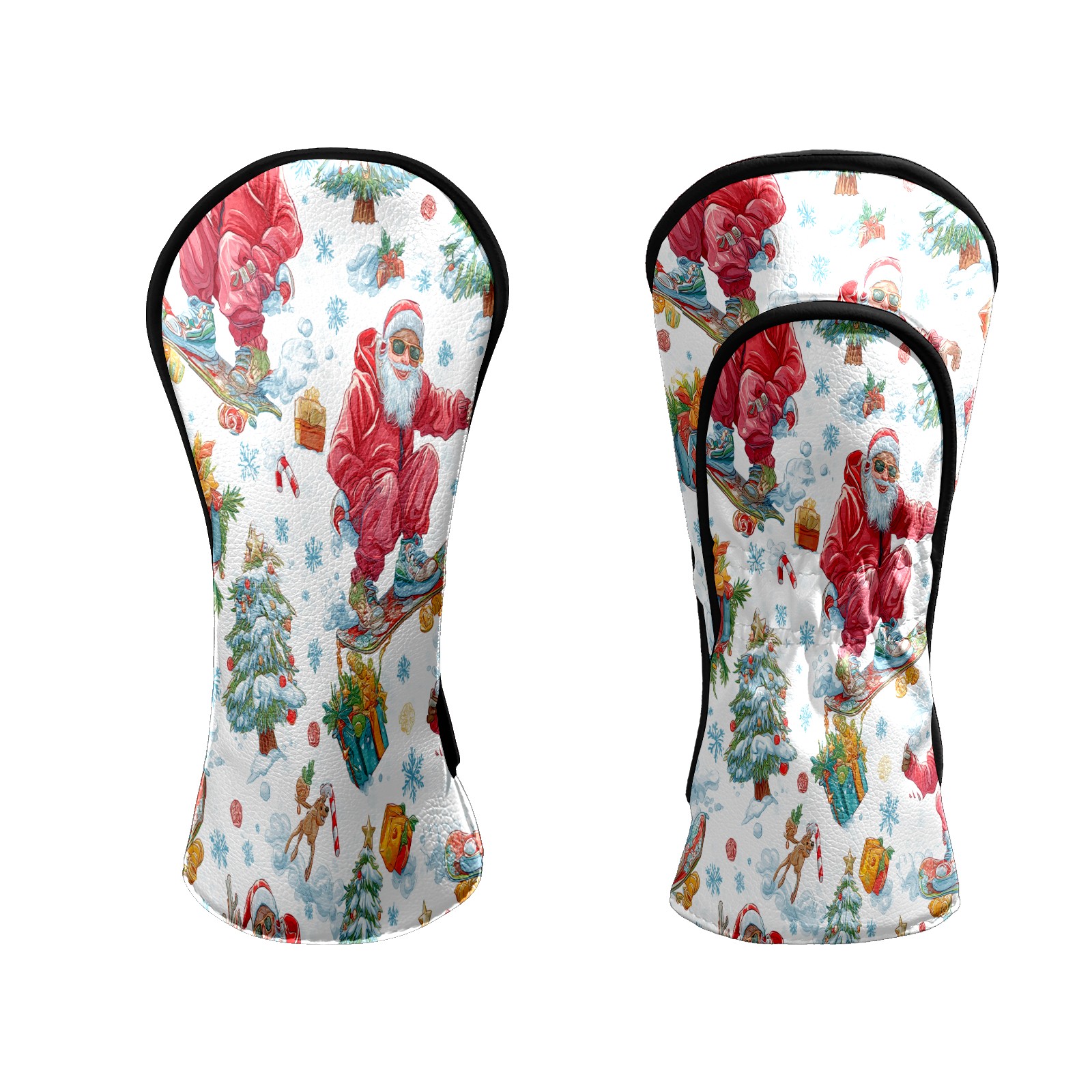 Counullo Golf Head Covers - Red Santa Skate Driver Fairway Headcover, Durable PU Leather & Soft Velvet Lining, Secure Elastic Band, Perfect Christmas Golf Gift for Men
