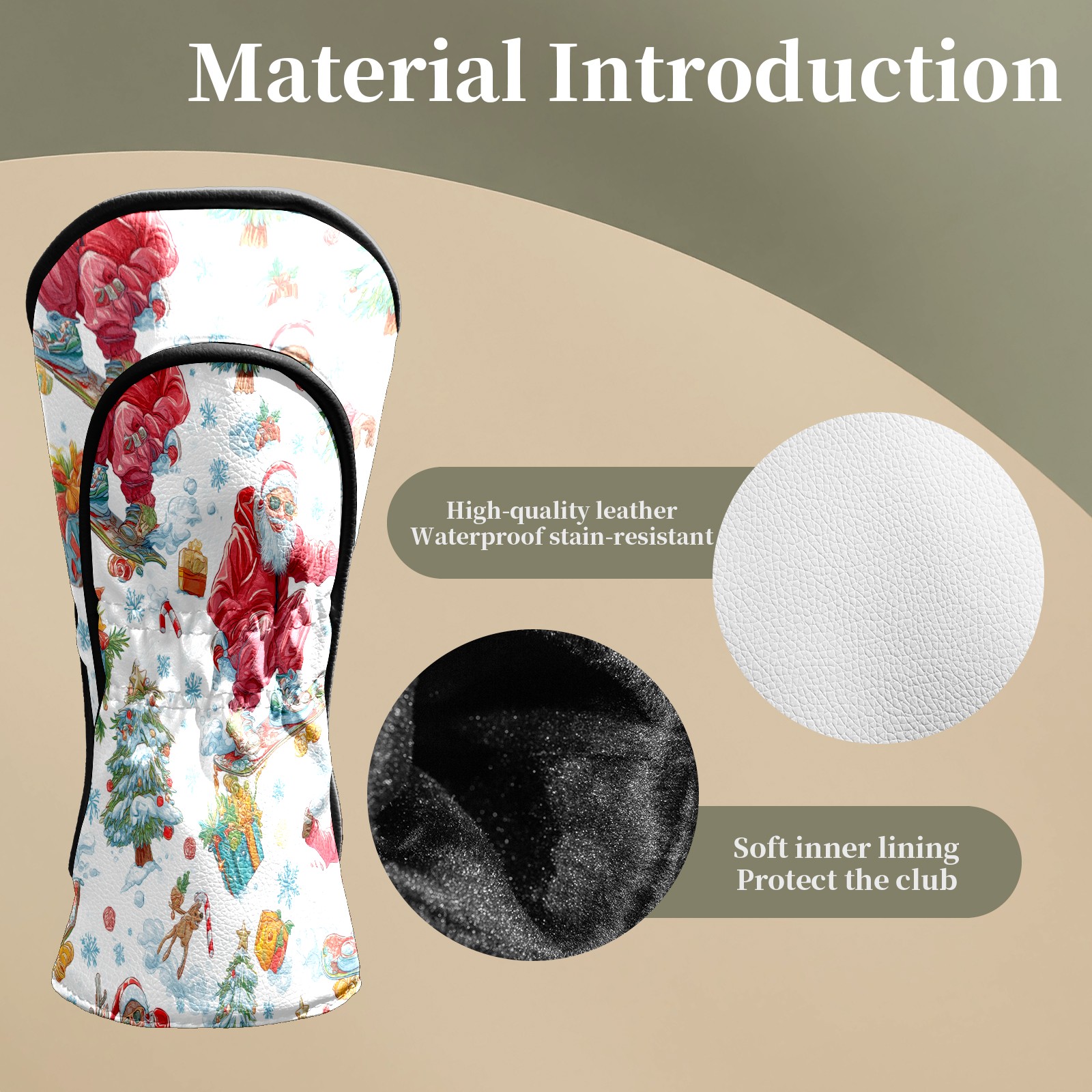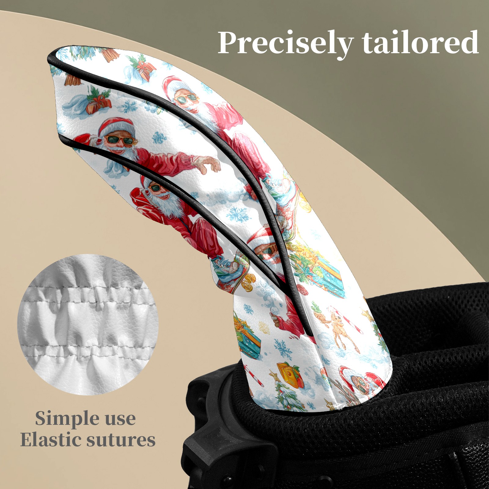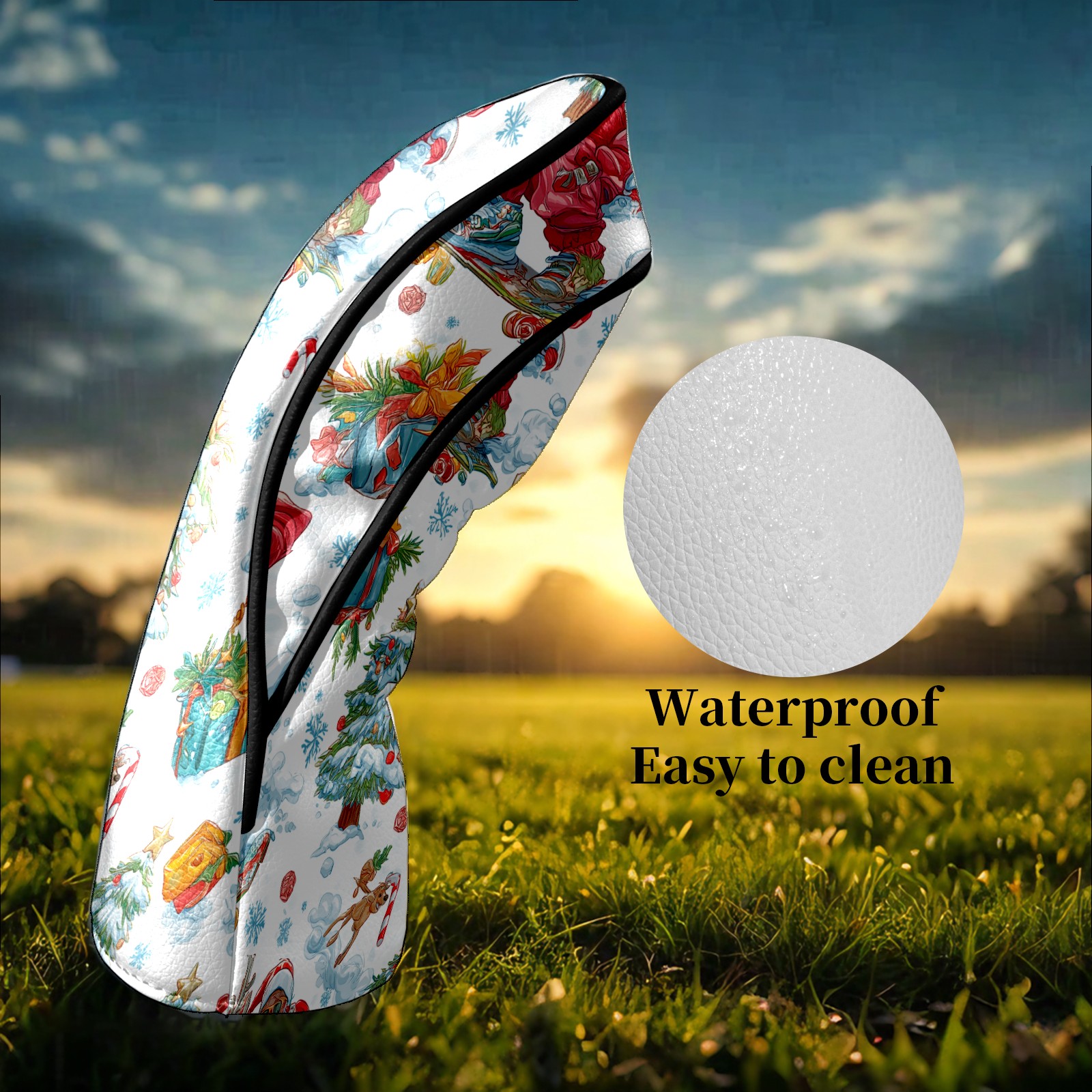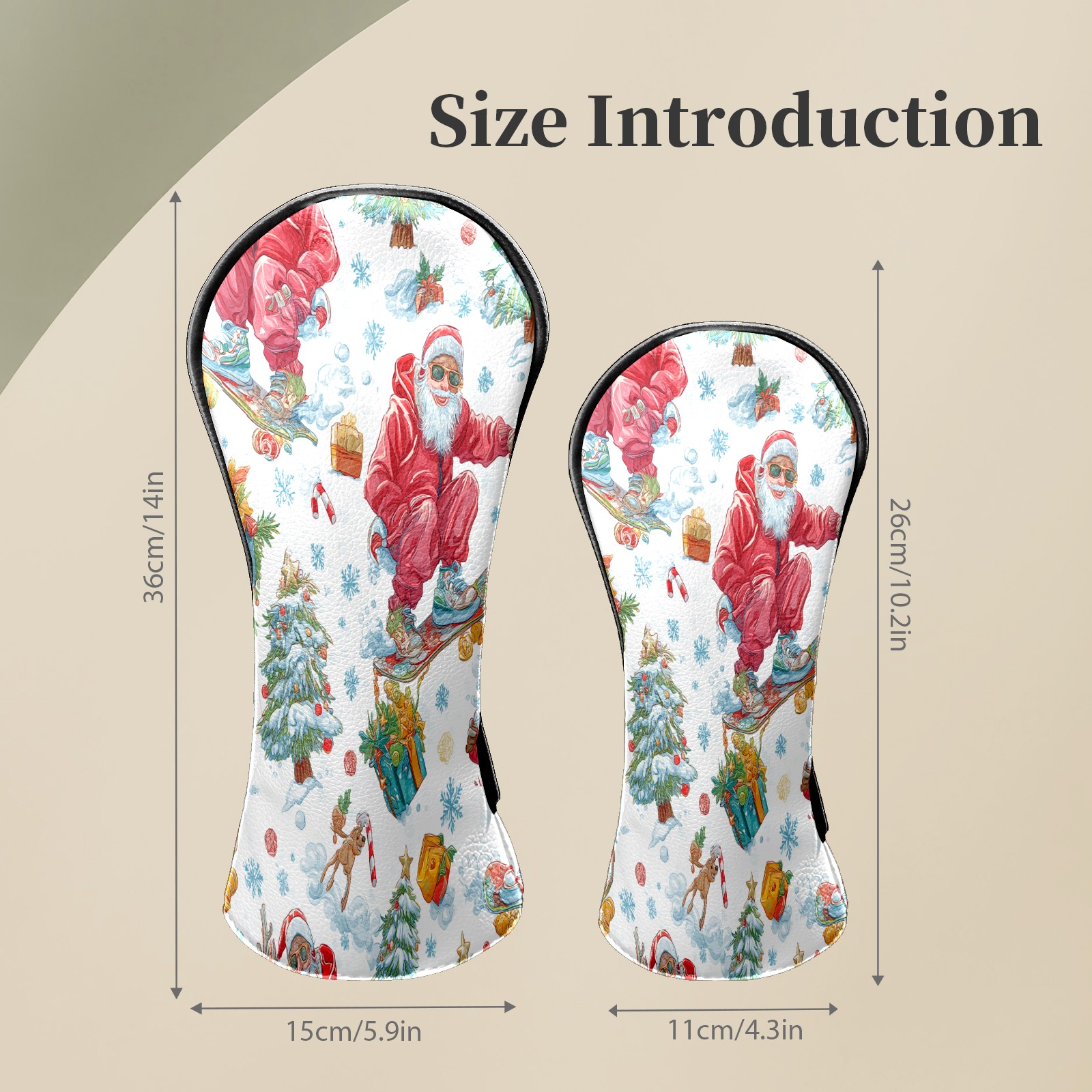 Counullo Golf Head Covers - Red Santa Skate Driver Fairway Headcover, Durable PU Leather & Soft Velvet Lining, Secure Elastic Band, Perfect Christmas Golf Gift for Men