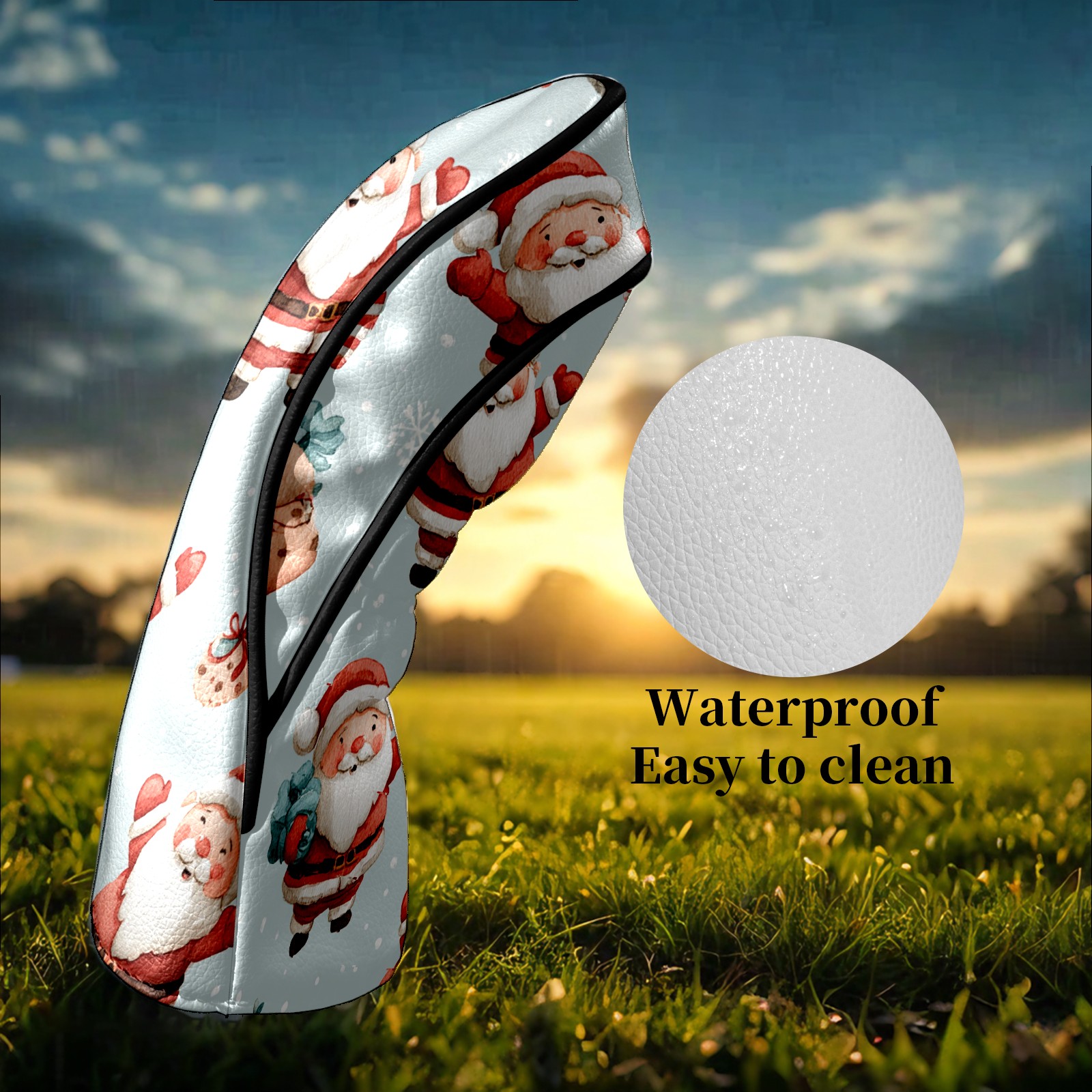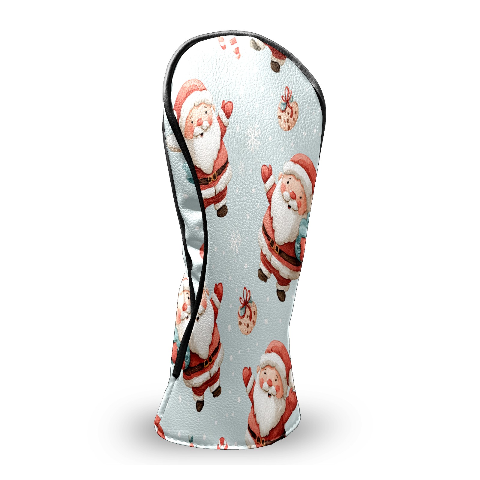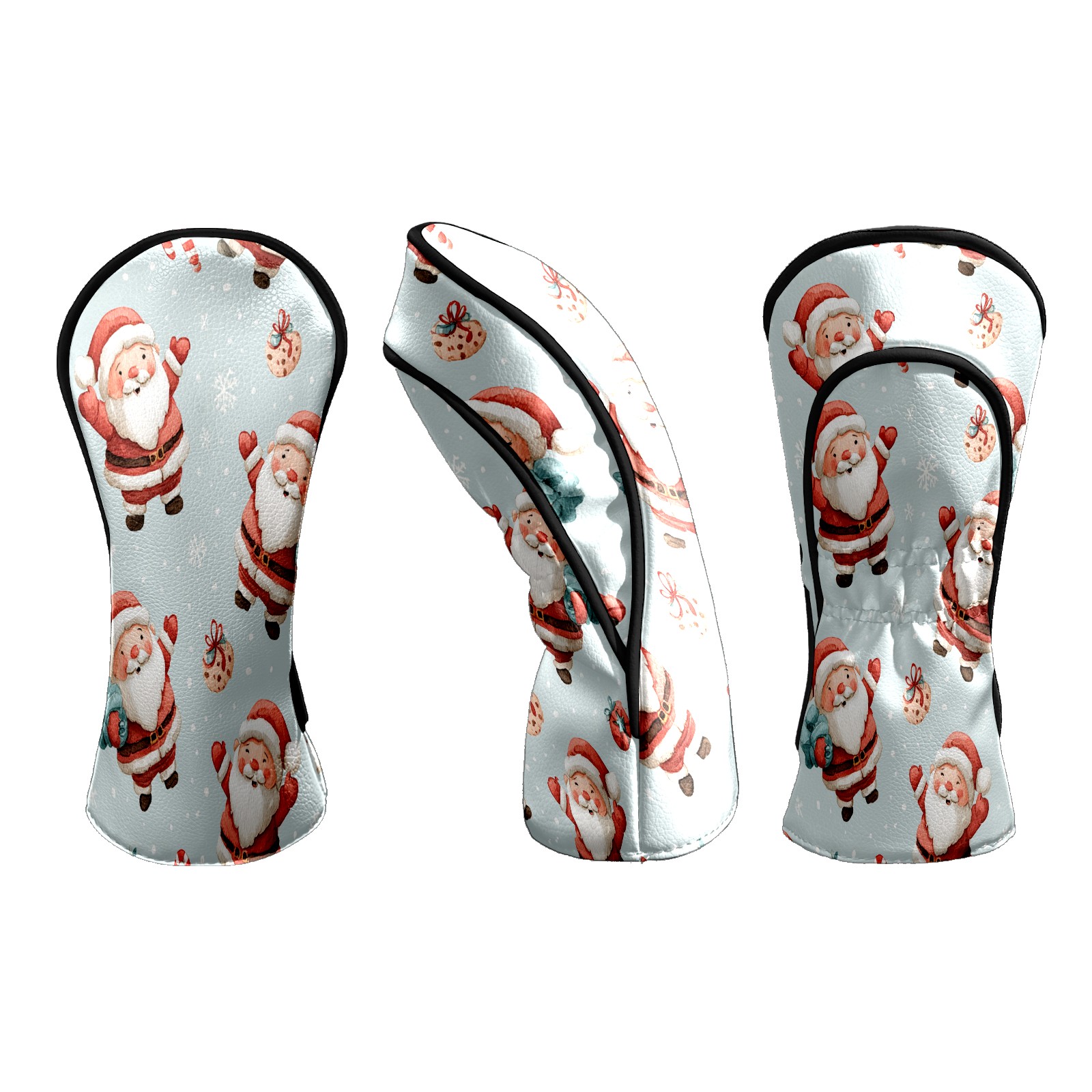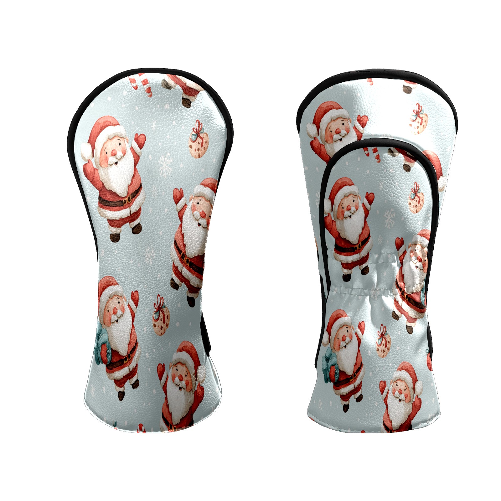 Counullo Golf Head Covers - Blue Xmas Santa Driver Fairway Headcover, Durable PU Leather & Soft Velvet Lining, Secure Elastic Band, Perfect Christmas Golf Gift for Men