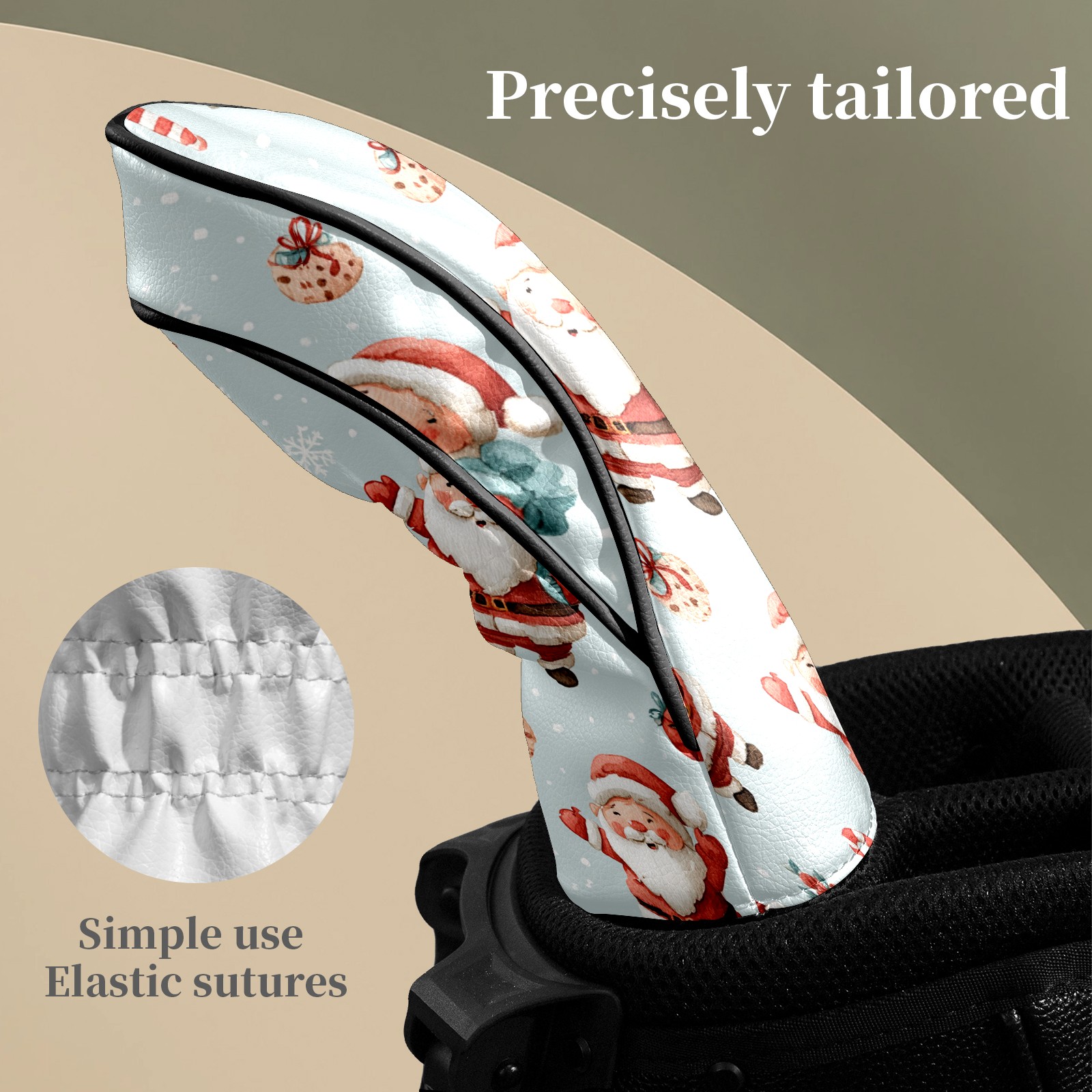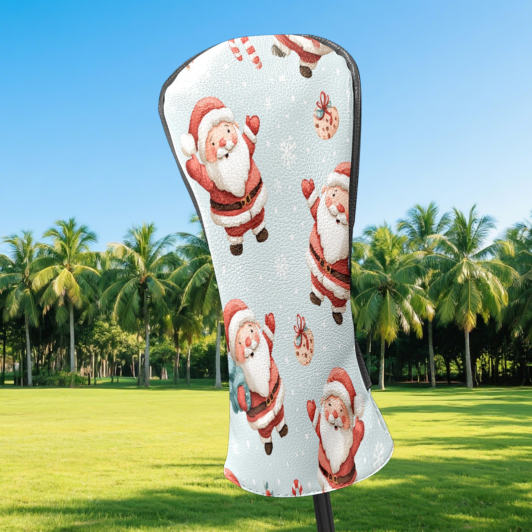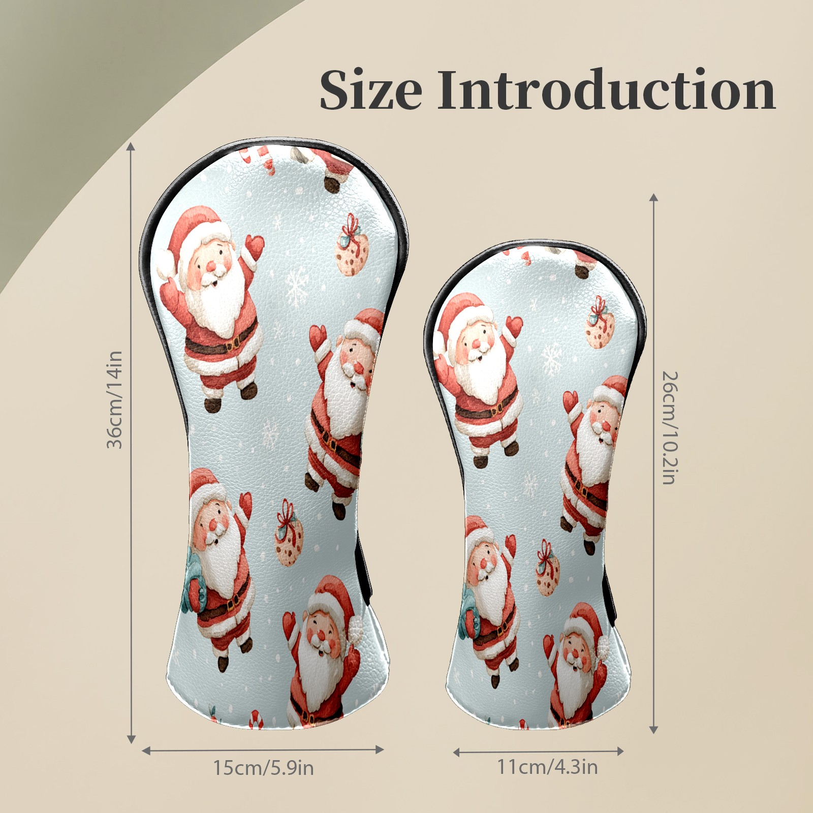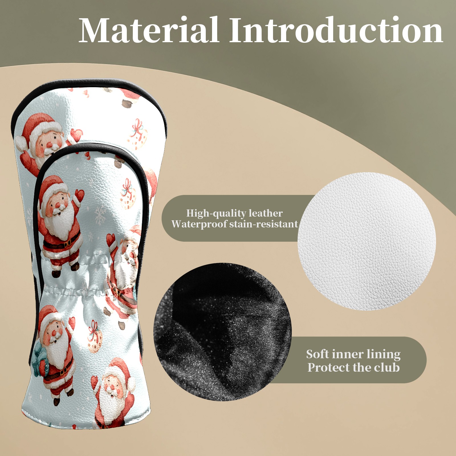 Counullo Golf Head Covers - Blue Xmas Santa Driver Fairway Headcover, Durable PU Leather & Soft Velvet Lining, Secure Elastic Band, Perfect Christmas Golf Gift for Men