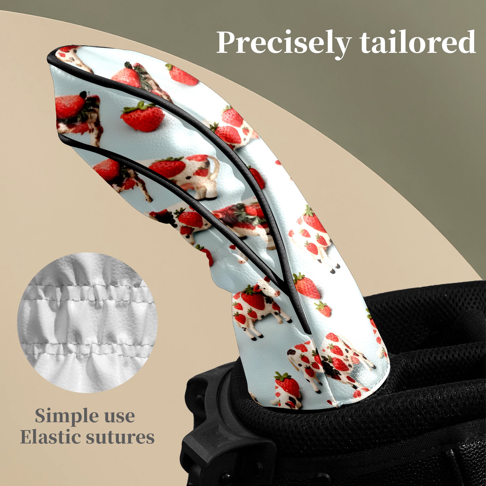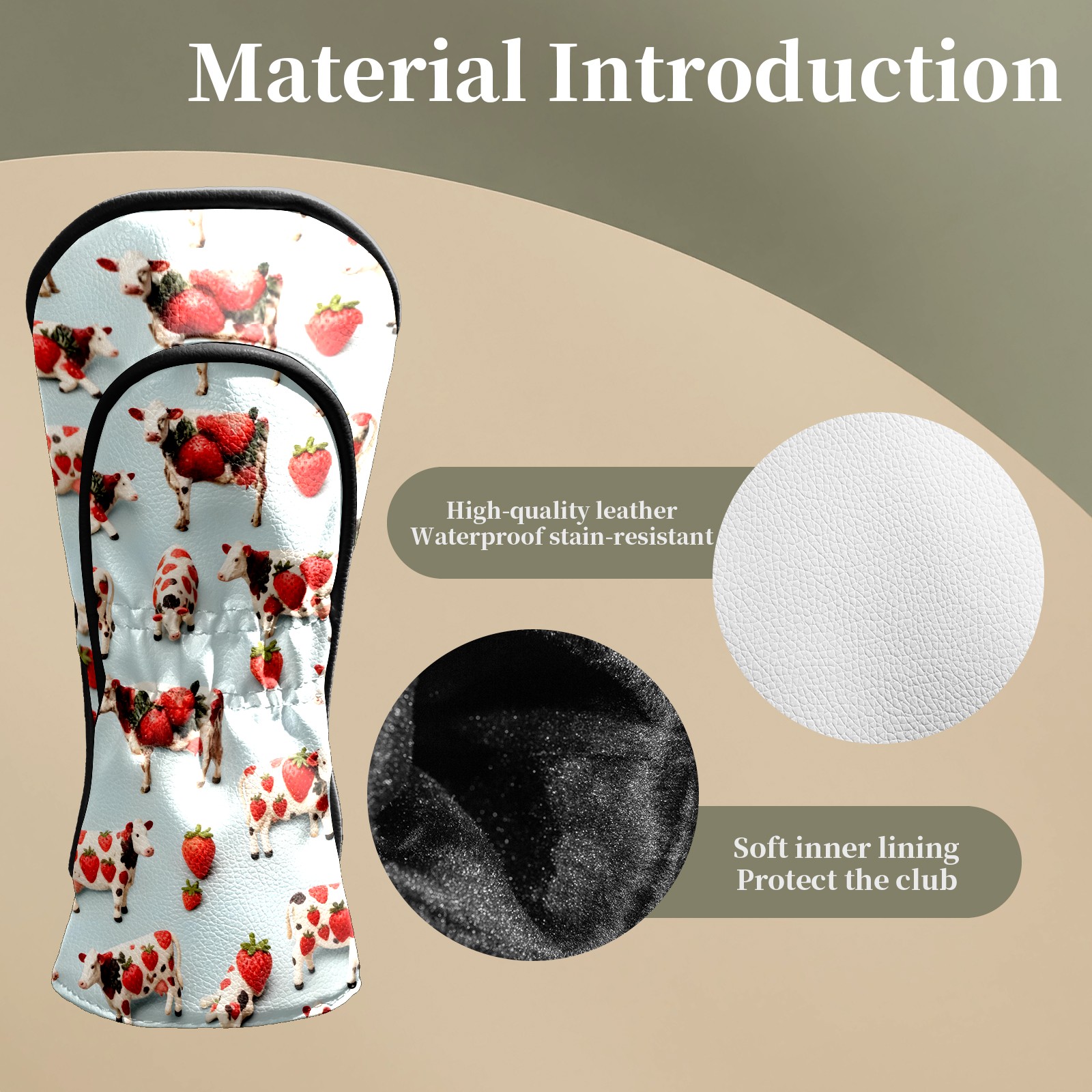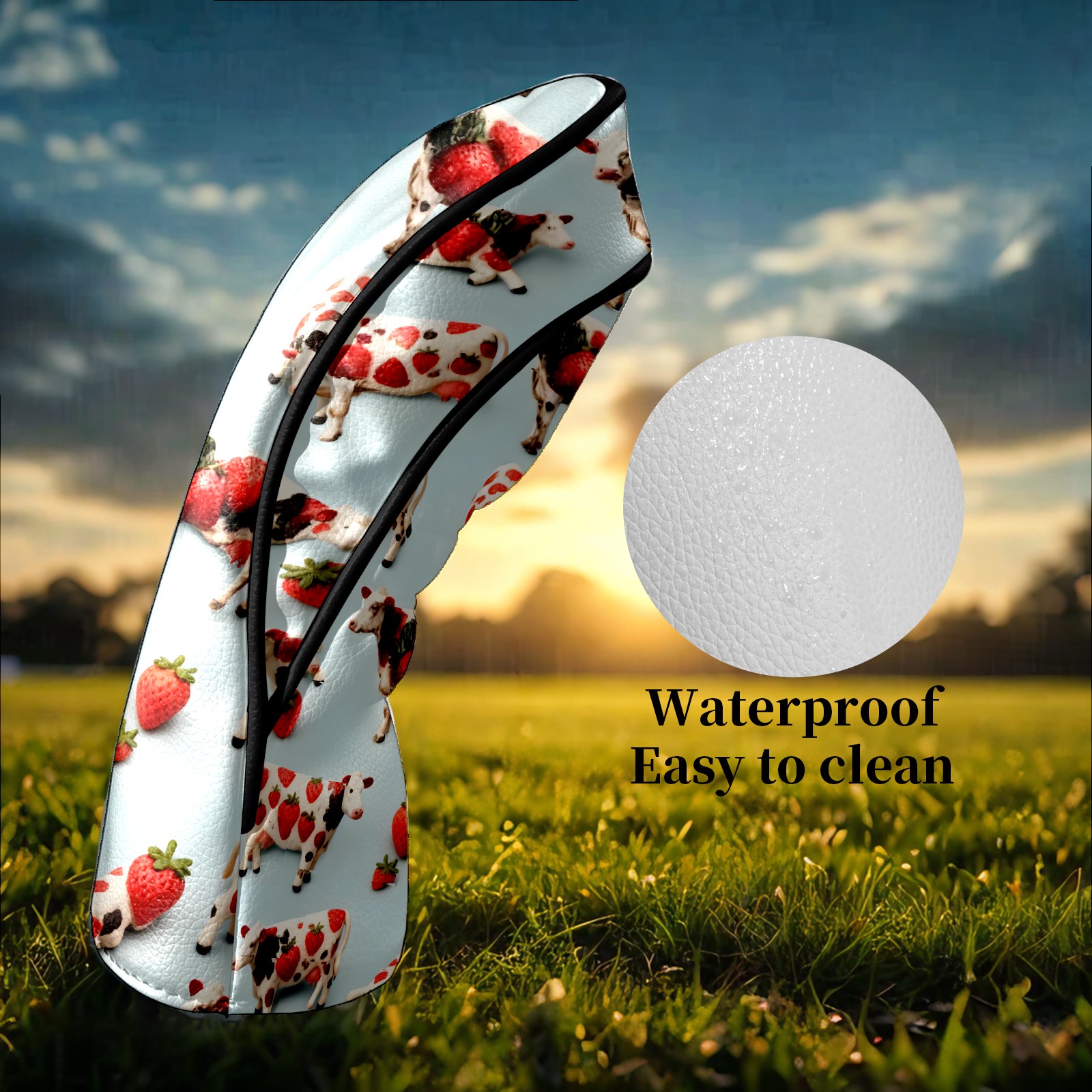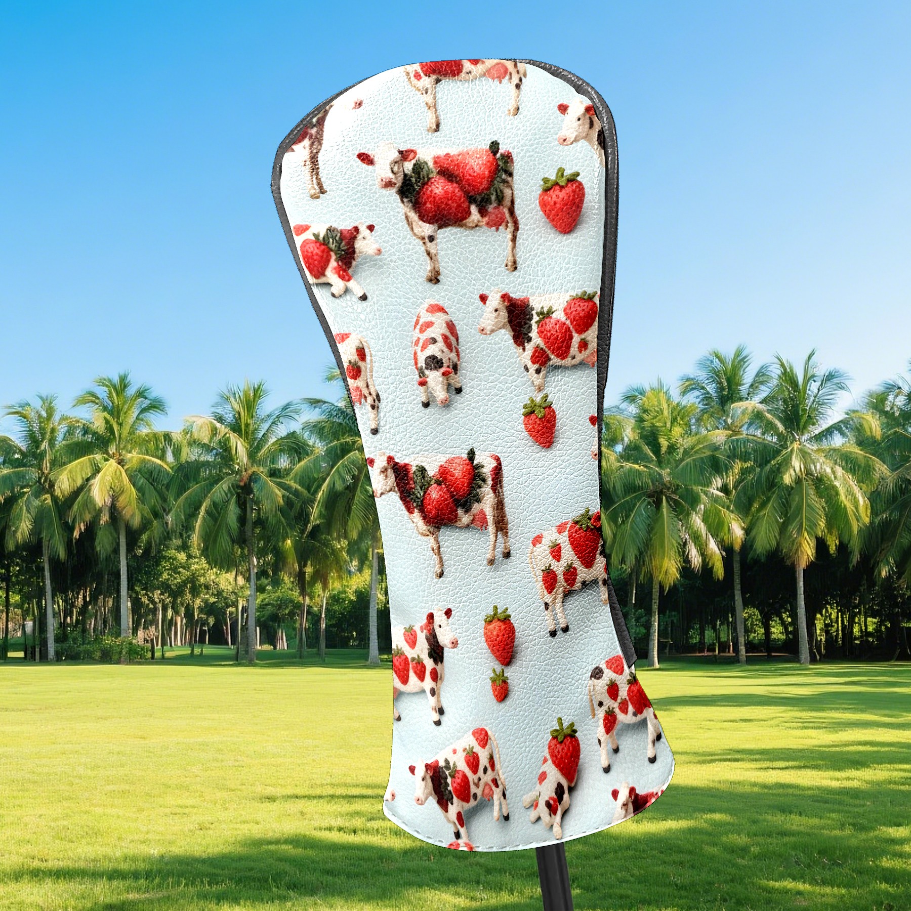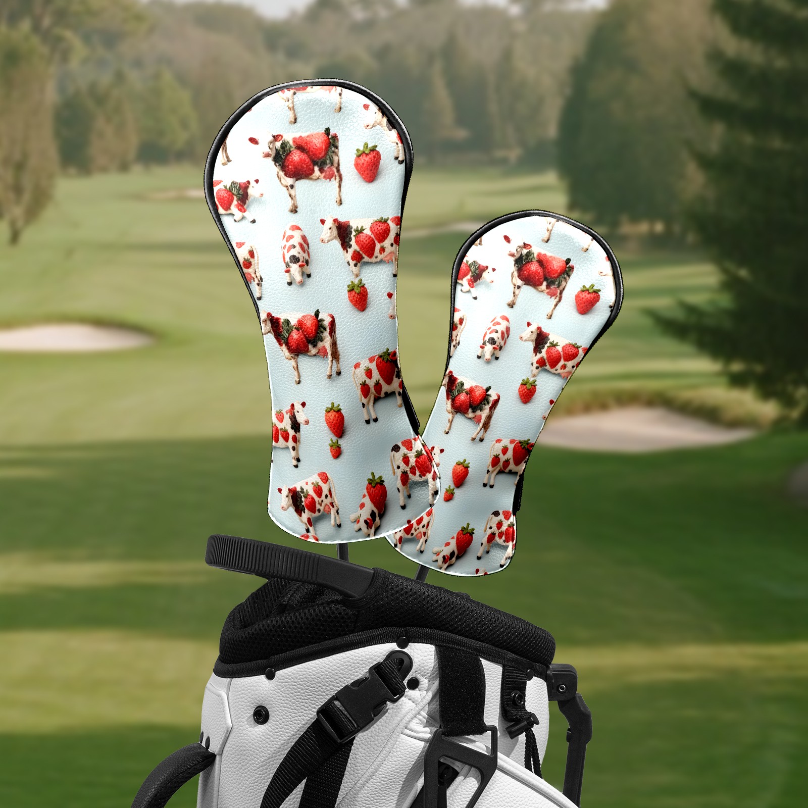 Counullo Golf Head Covers - Blue Cows Driver Fairway Headcover, Durable PU Leather & Soft Velvet Lining, Secure Elastic Band, Perfect Christmas Golf Gift for Men