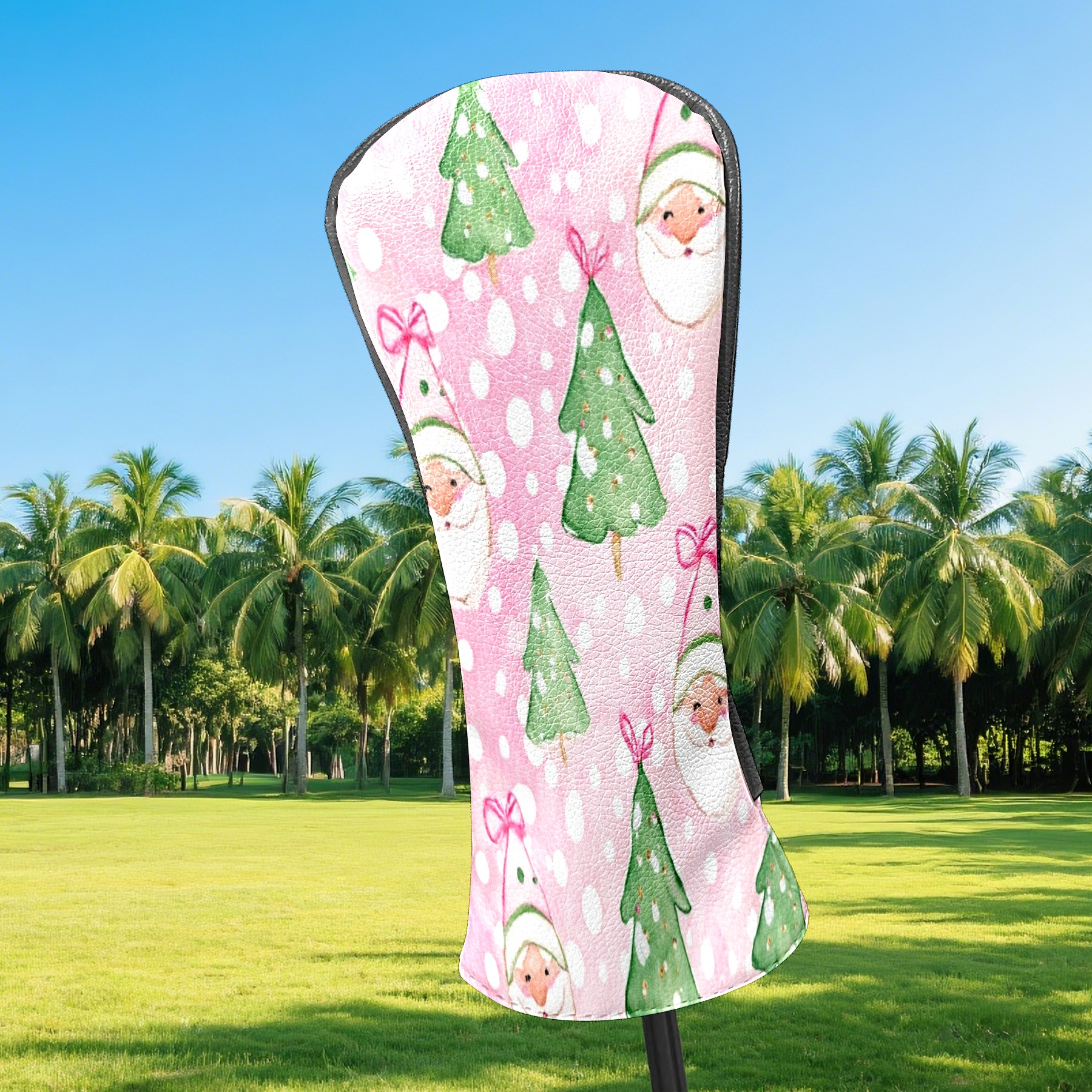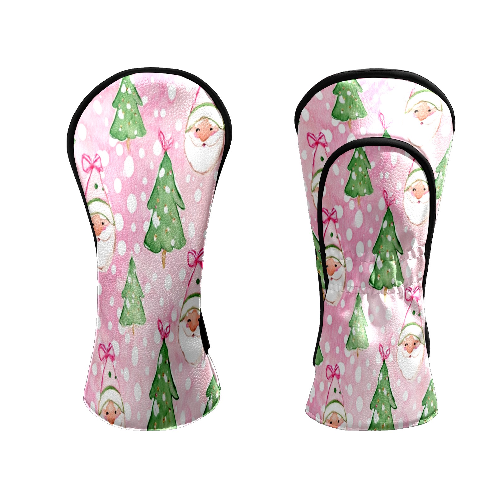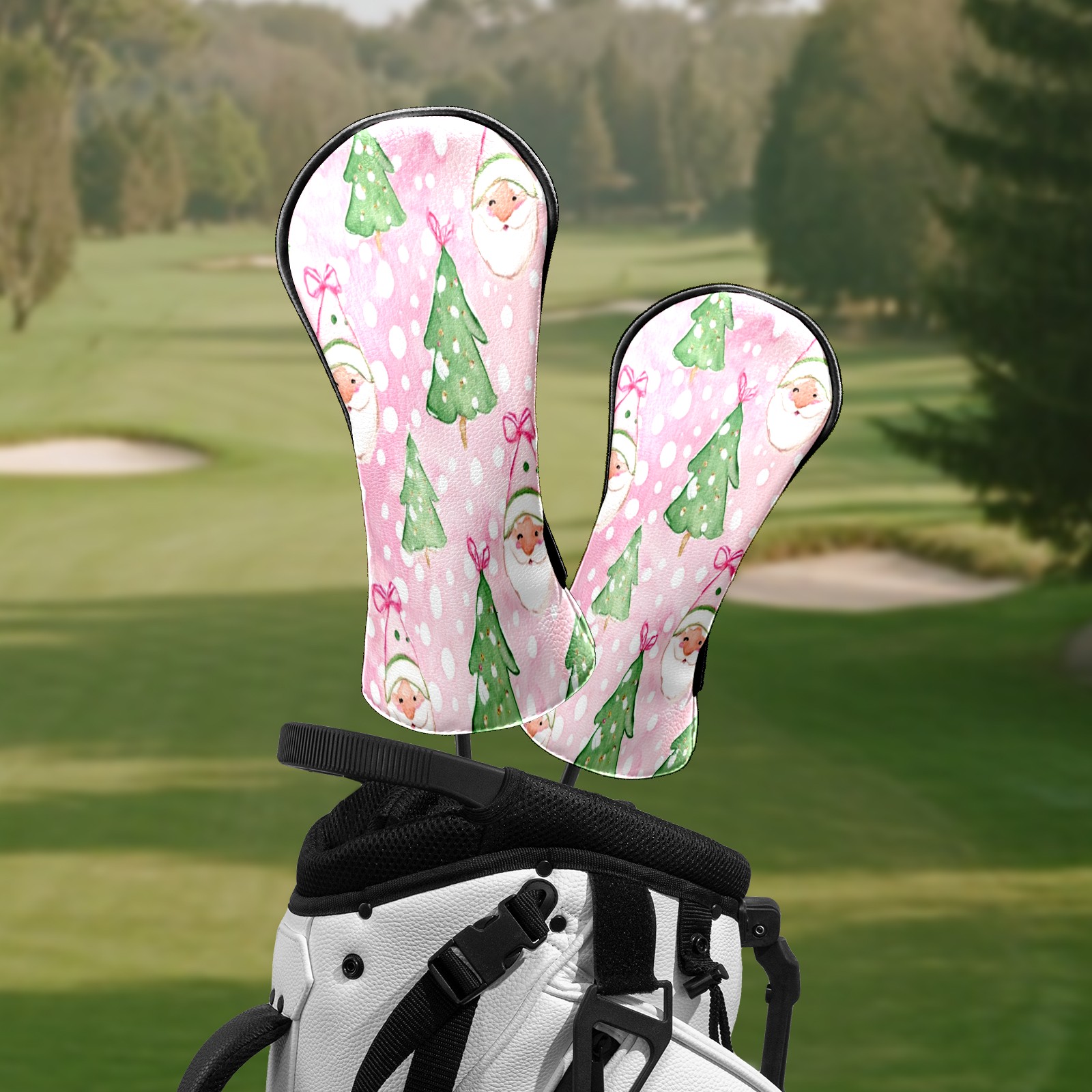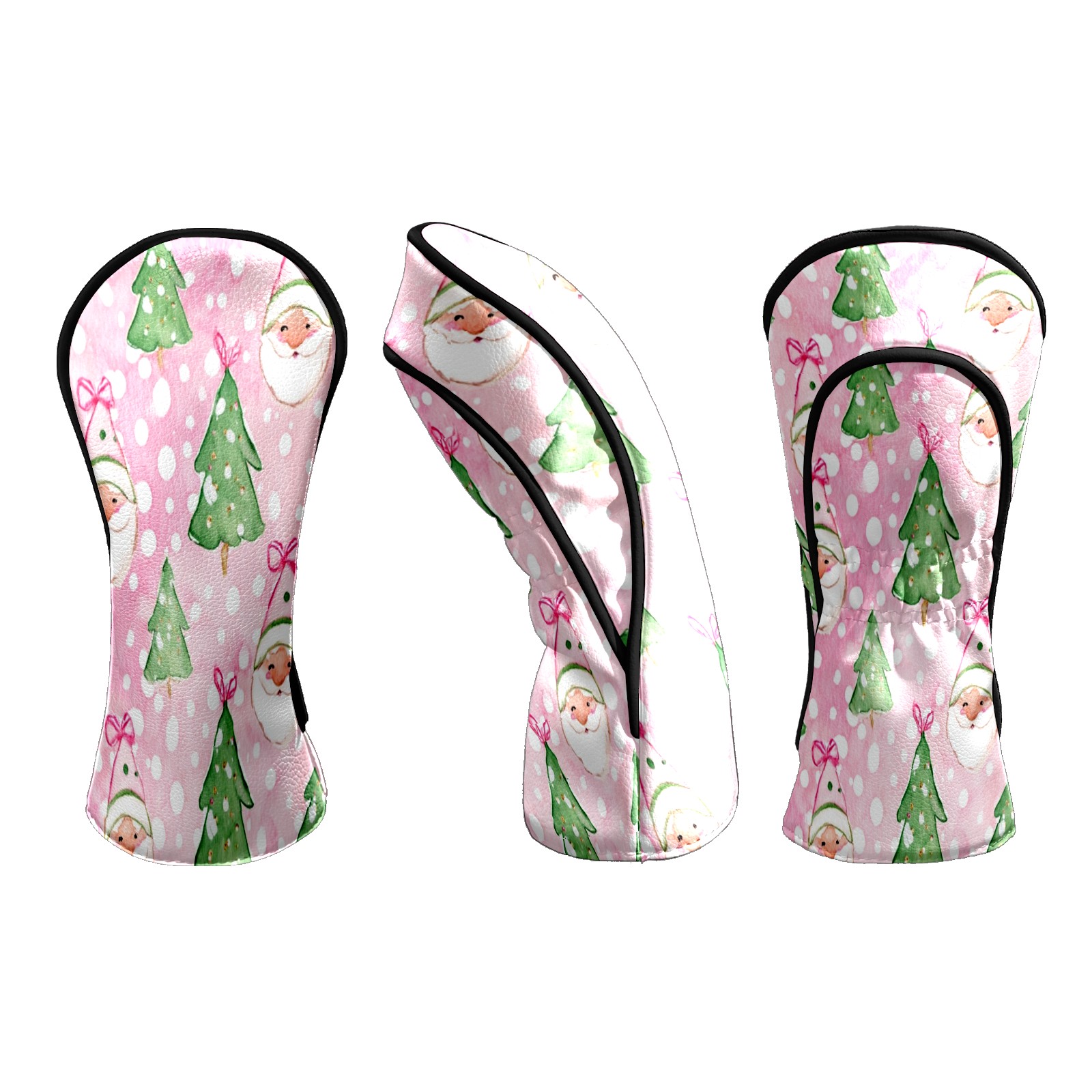 Counullo Golf Head Covers - Pink Xmas Santa Driver Fairway Headcover, Durable PU Leather & Soft Velvet Lining, Secure Elastic Band, Perfect Christmas Golf Gift for Men