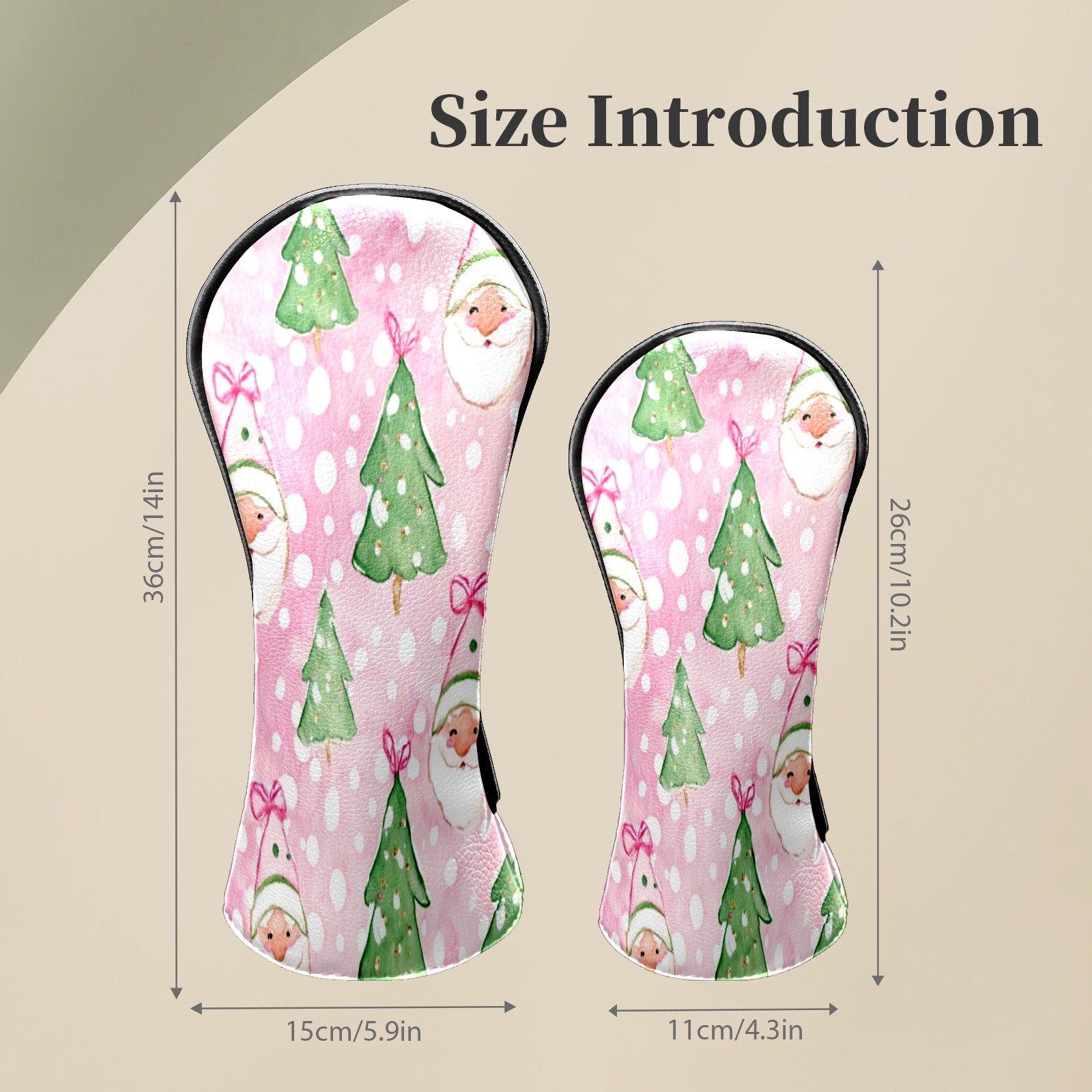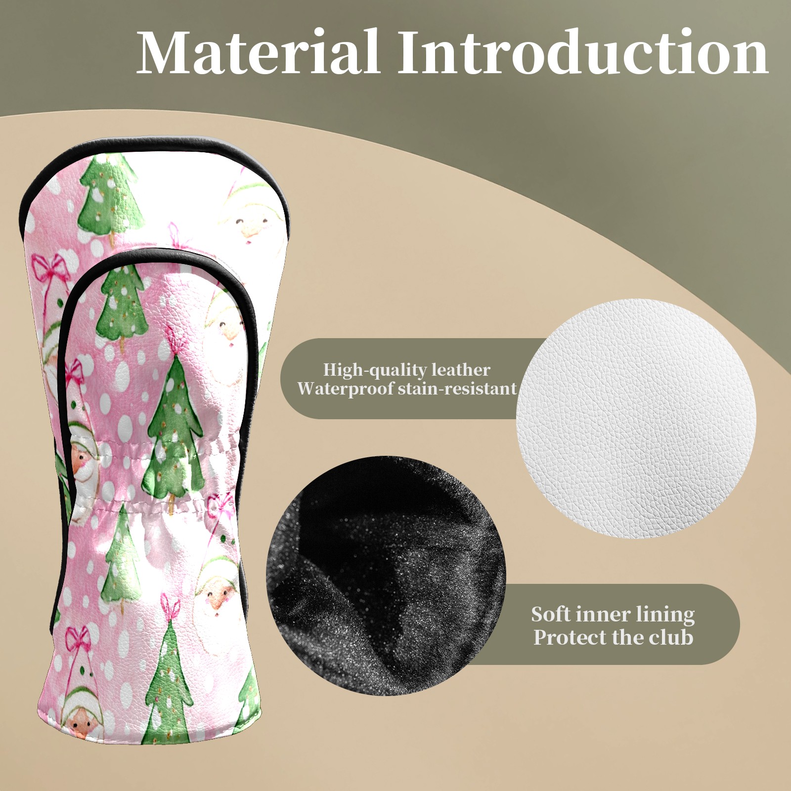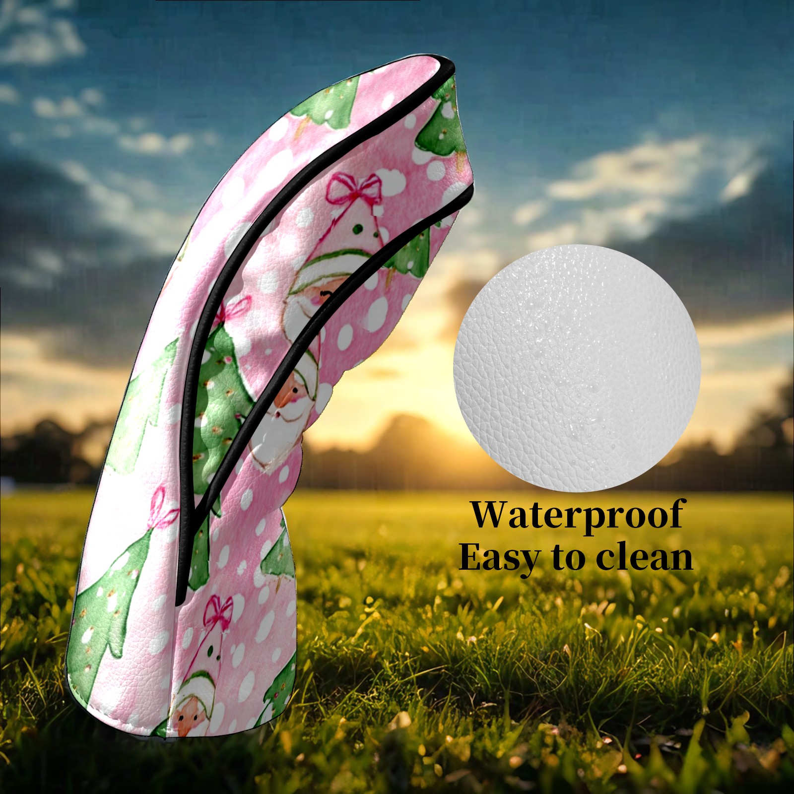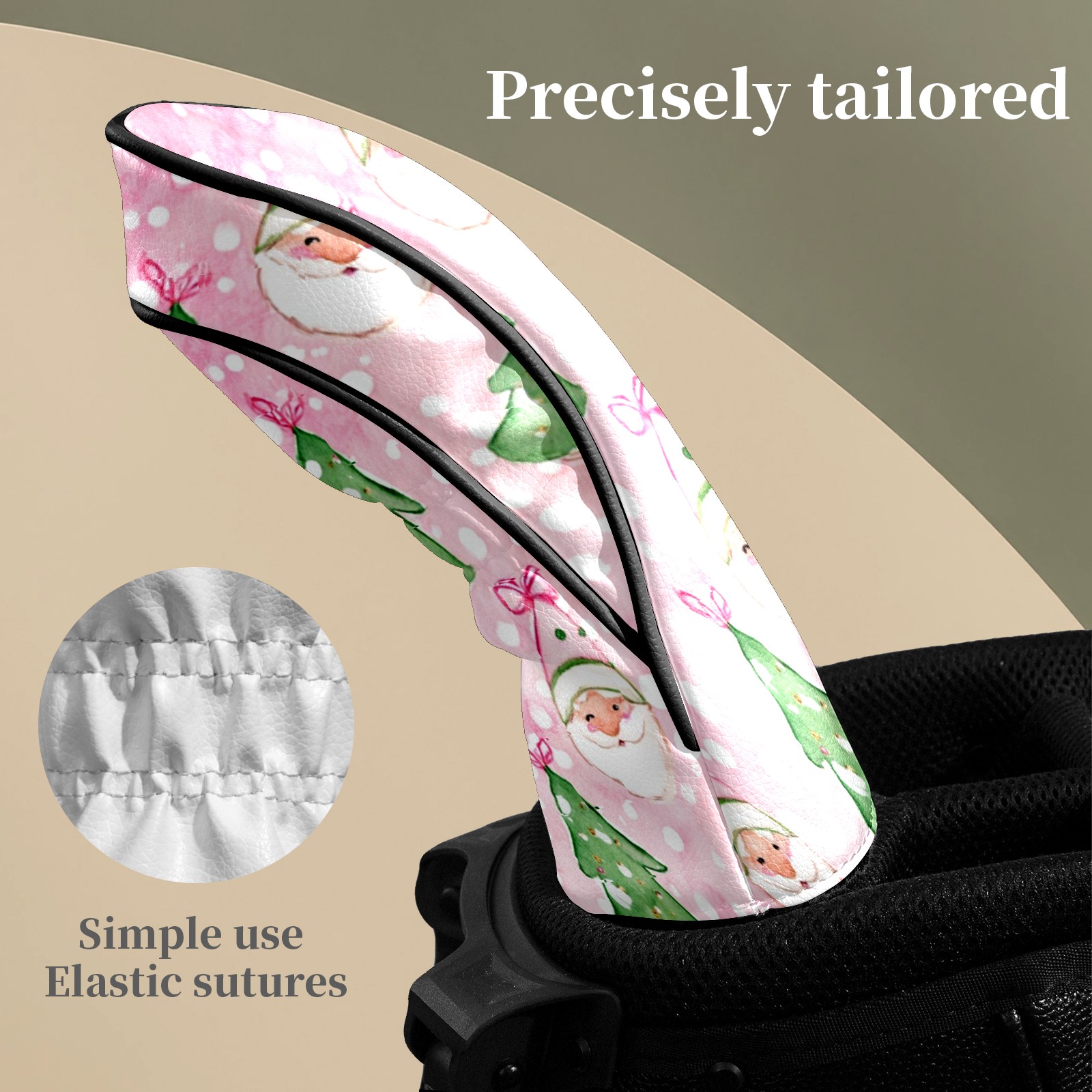 Counullo Golf Head Covers - Pink Xmas Santa Driver Fairway Headcover, Durable PU Leather & Soft Velvet Lining, Secure Elastic Band, Perfect Christmas Golf Gift for Men