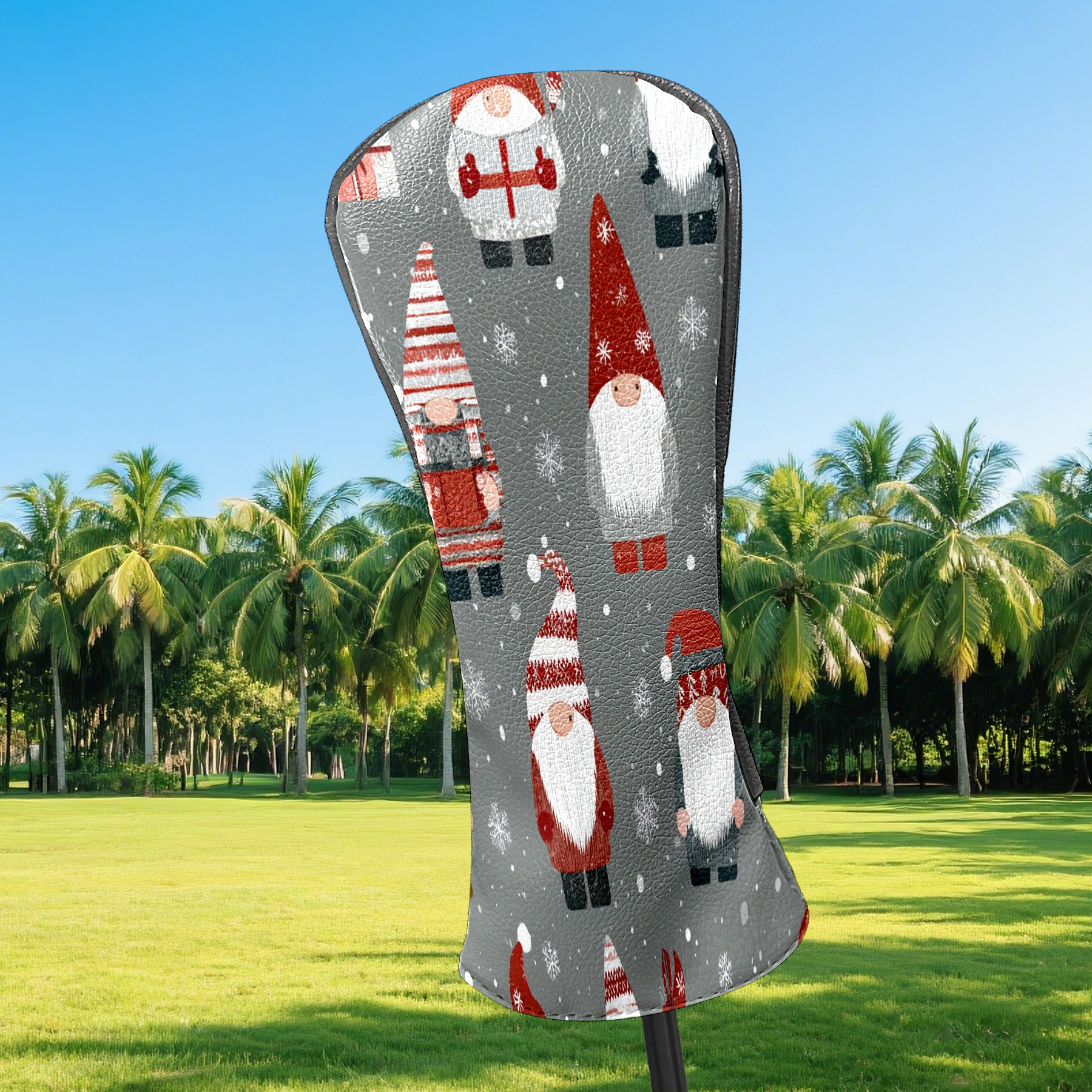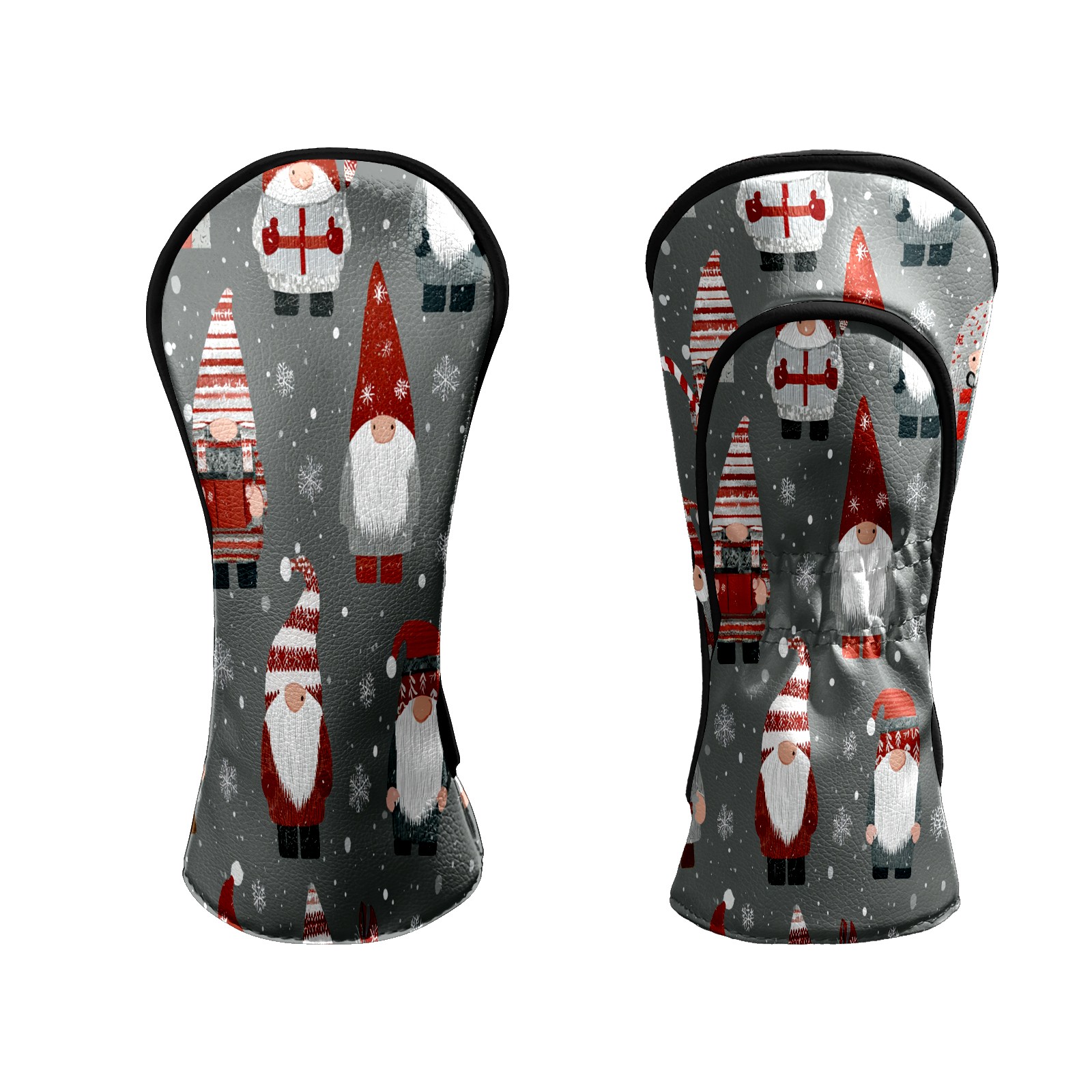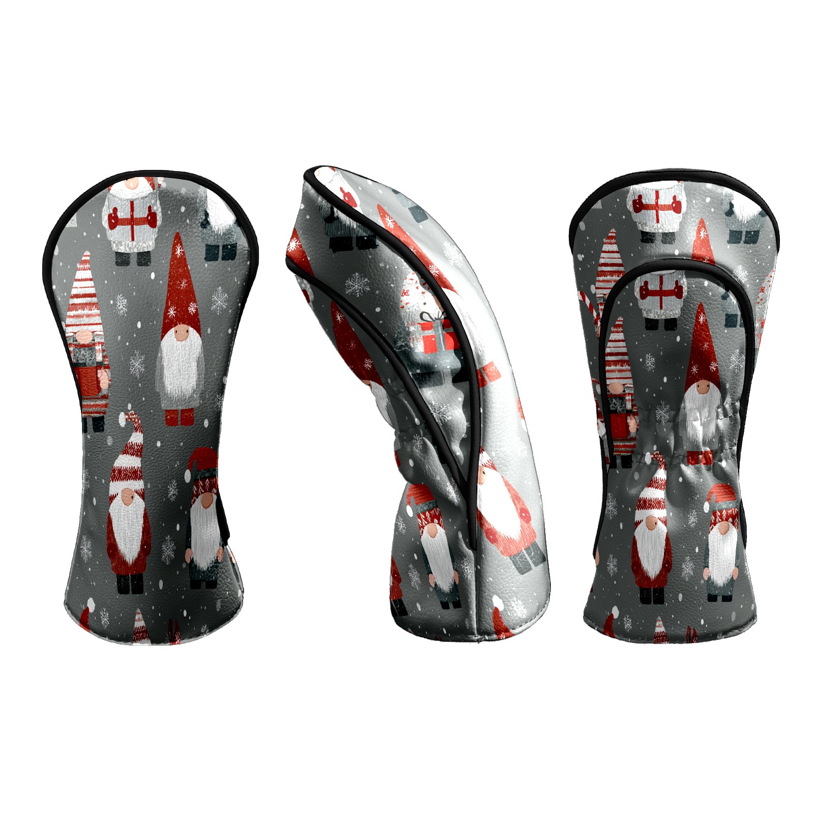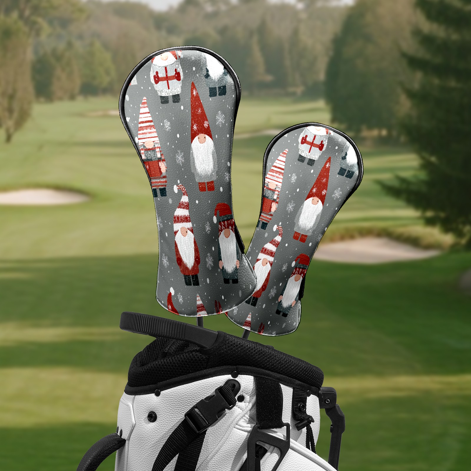 Counullo Golf Head Covers - Gray Xmas Gnomes Driver Fairway Headcover, Durable PU Leather & Soft Velvet Lining, Secure Elastic Band, Perfect Christmas Golf Gift for Men