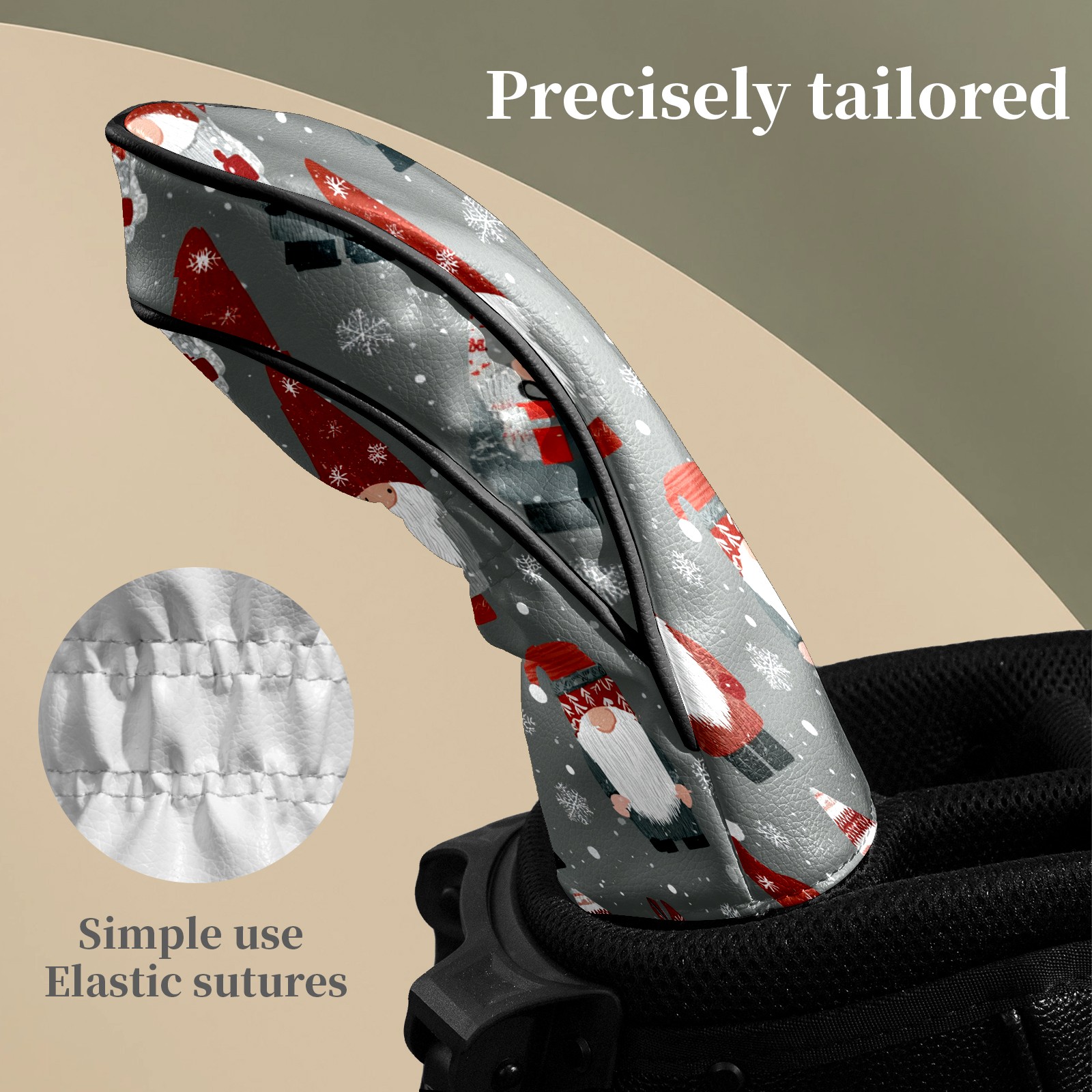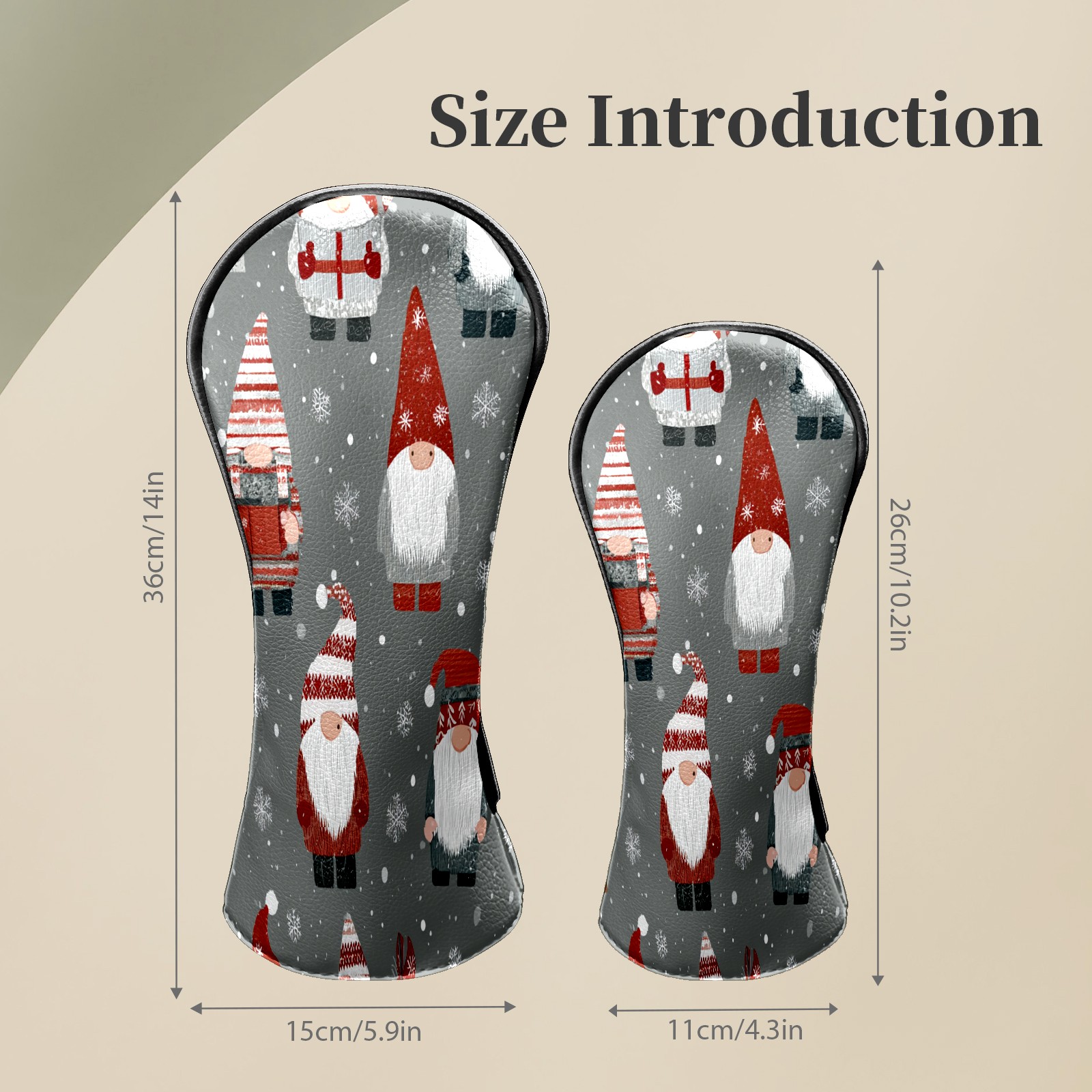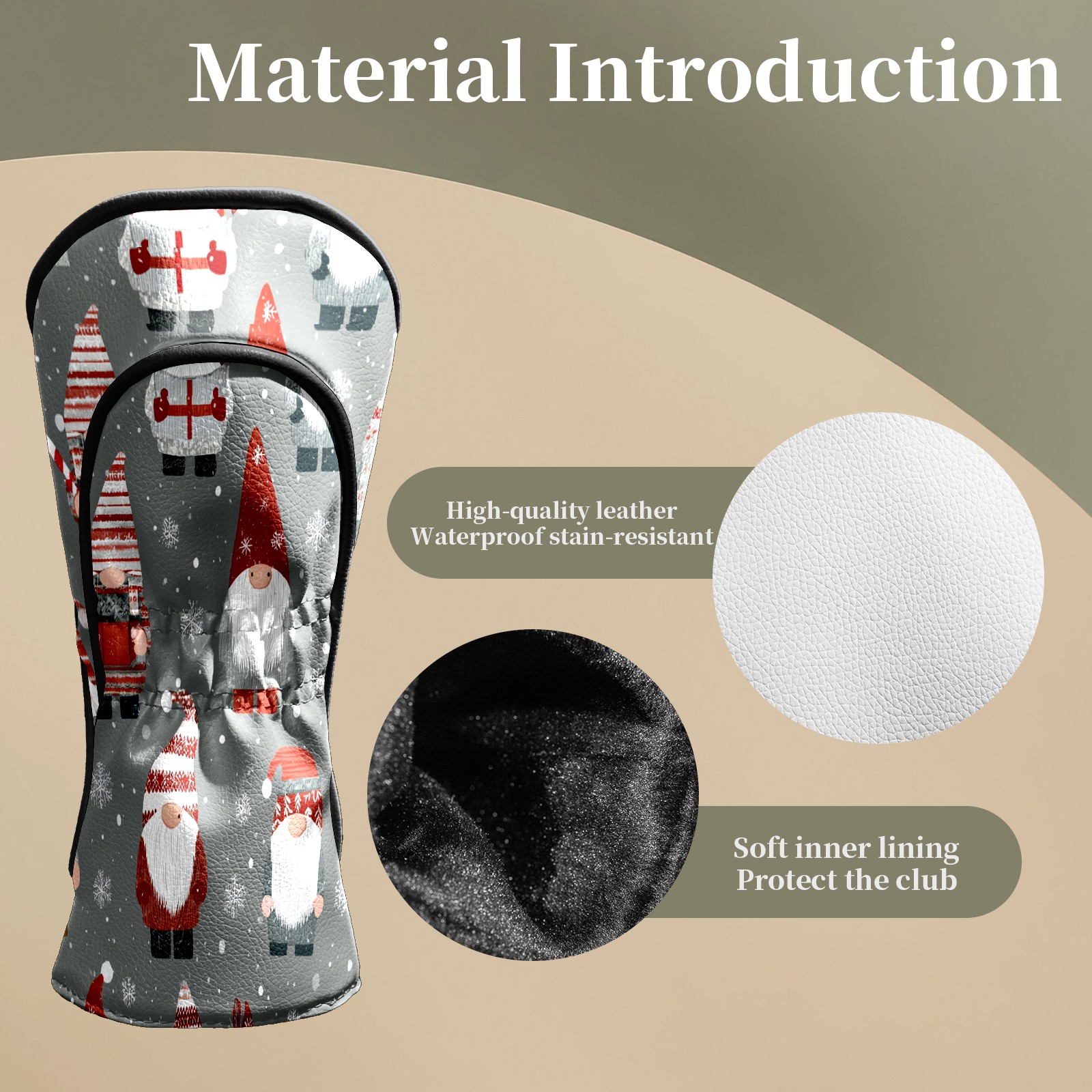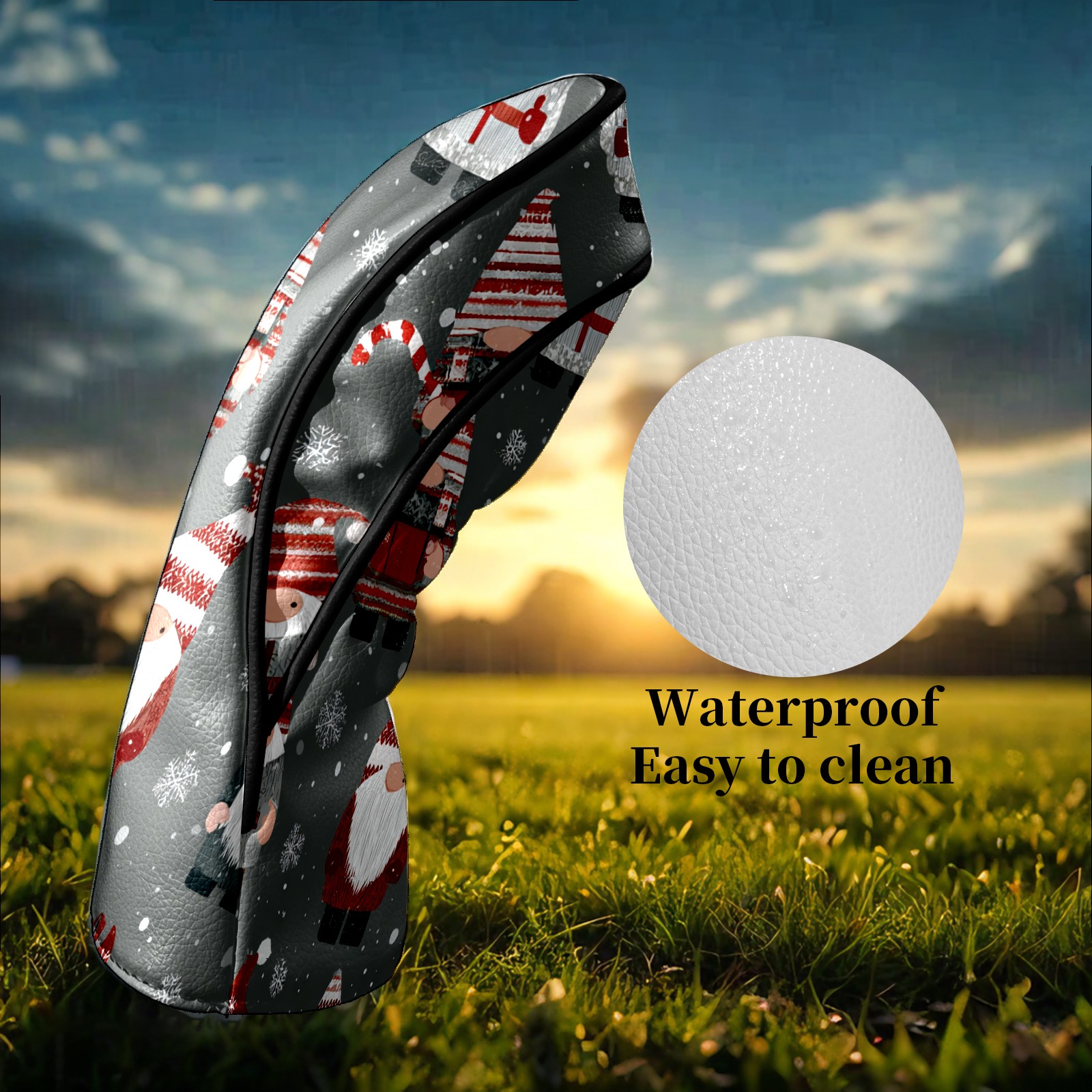 Counullo Golf Head Covers - Gray Xmas Gnomes Driver Fairway Headcover, Durable PU Leather & Soft Velvet Lining, Secure Elastic Band, Perfect Christmas Golf Gift for Men