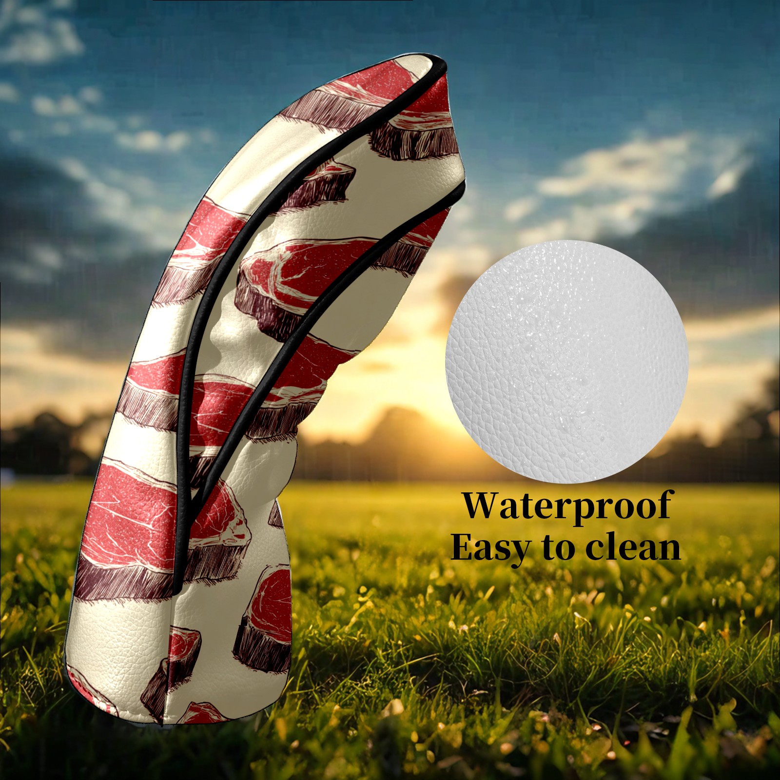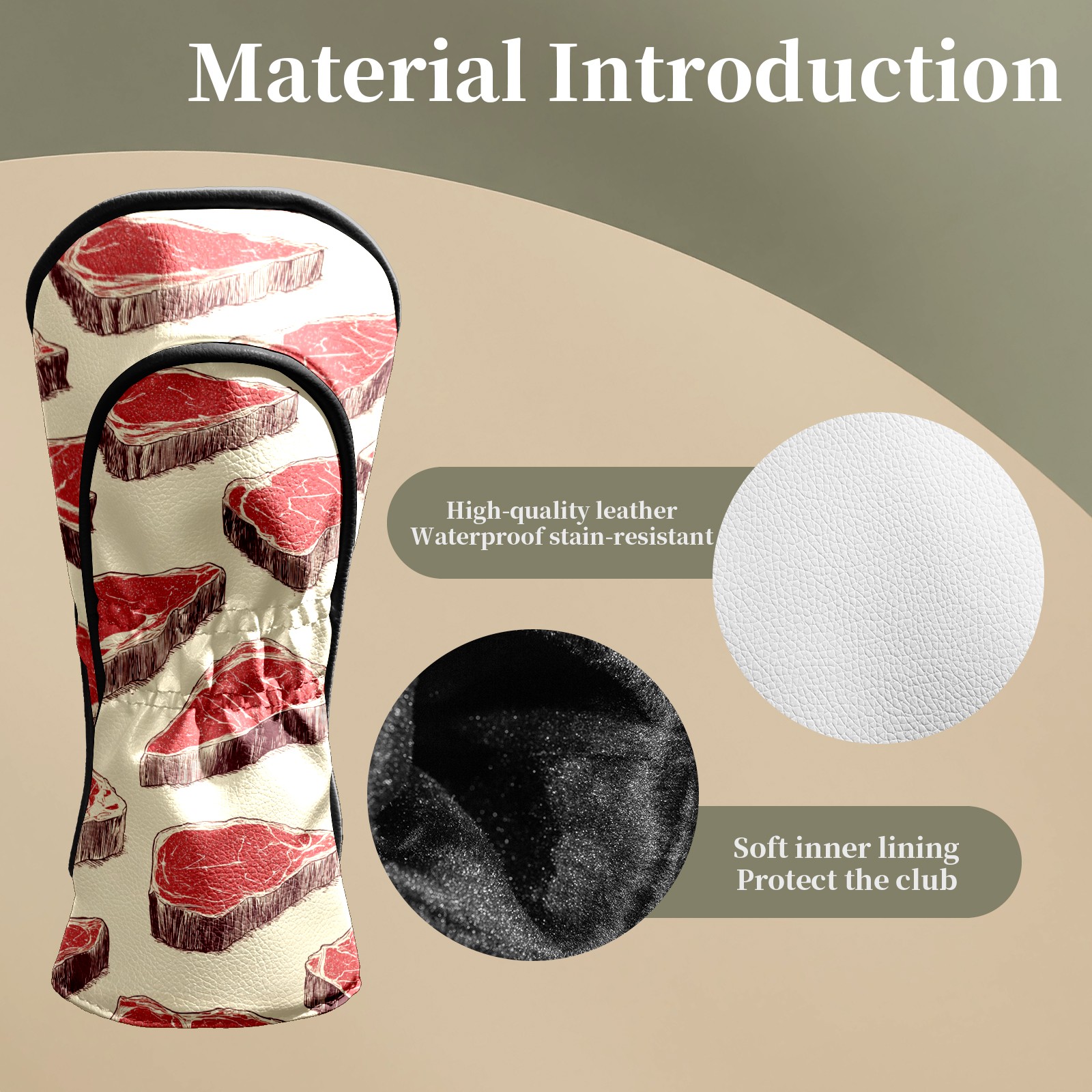 Counullo Golf Head Covers - Beige Meat Driver Fairway Headcover, Durable PU Leather & Soft Velvet Lining, Secure Elastic Band, Perfect Christmas Golf Gift for Men