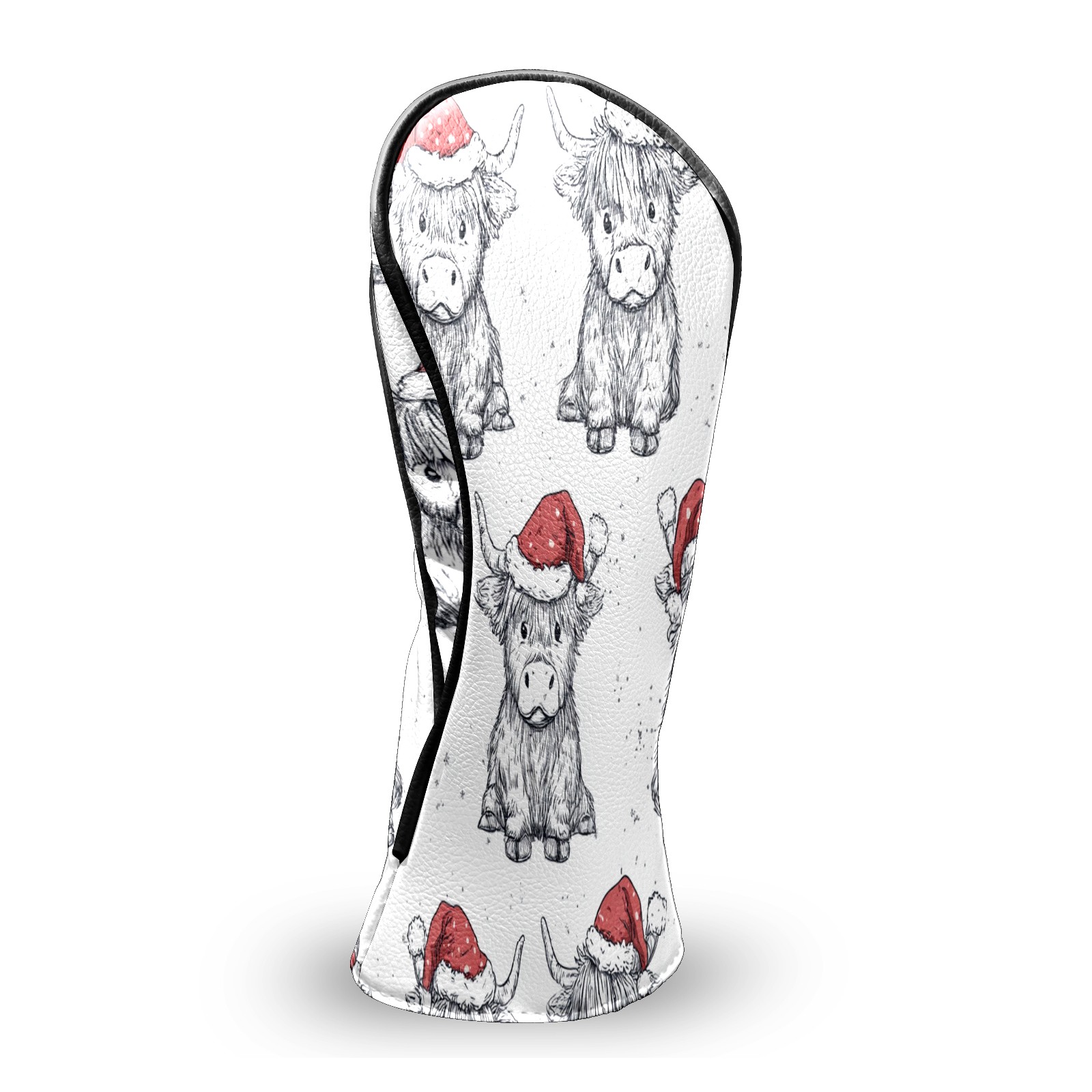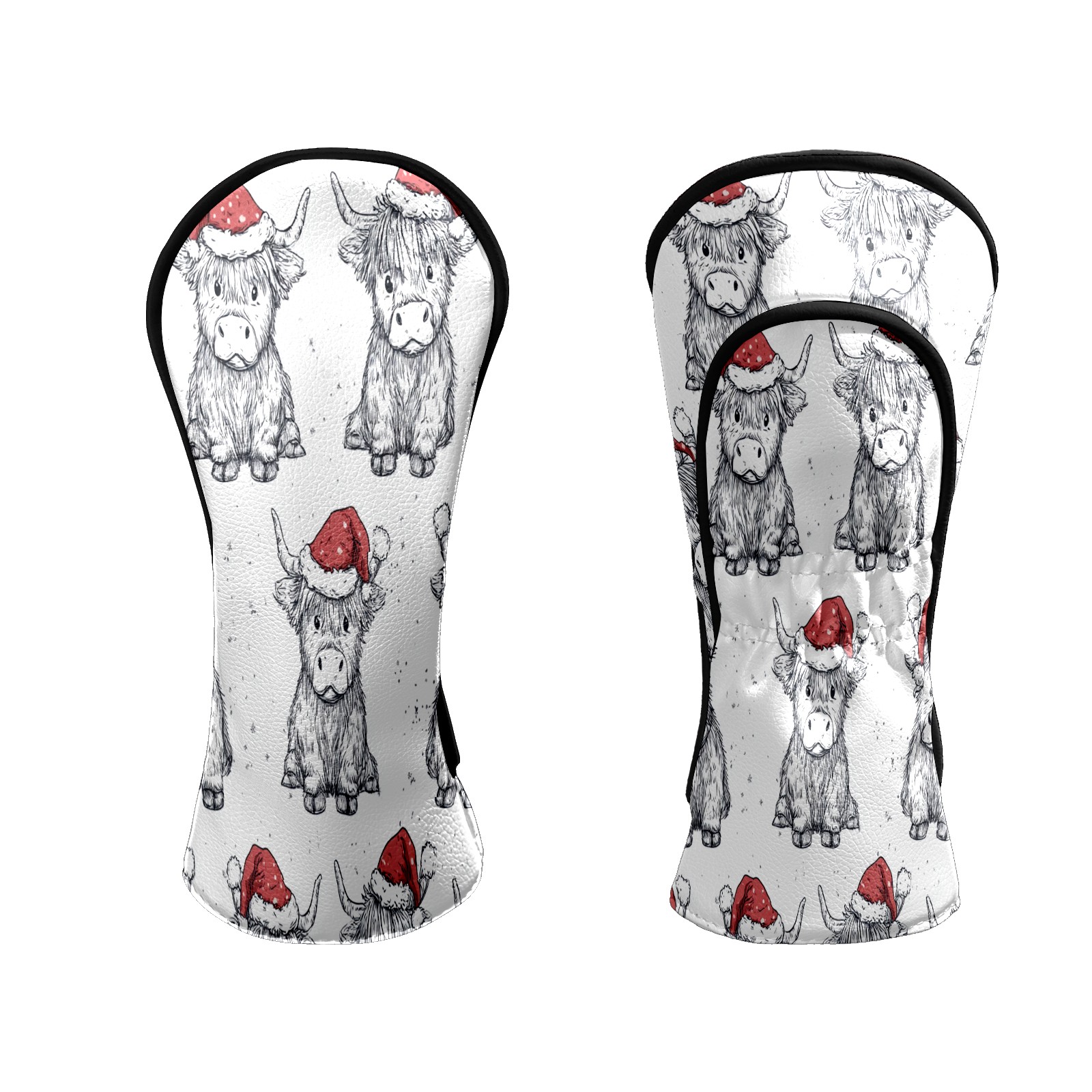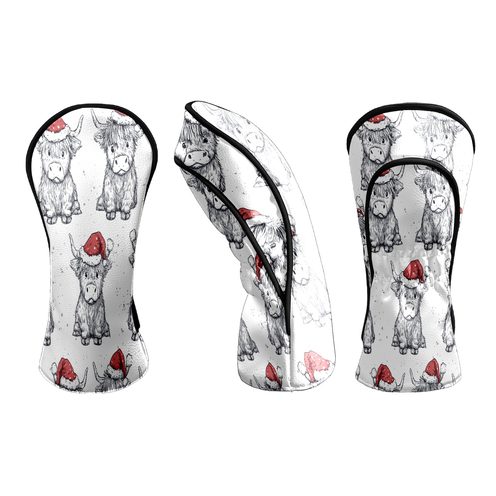 Counullo Golf Head Covers - Gray Xmas Cows Driver Fairway Headcover, Durable PU Leather & Soft Velvet Lining, Secure Elastic Band, Perfect Christmas Golf Gift for Men