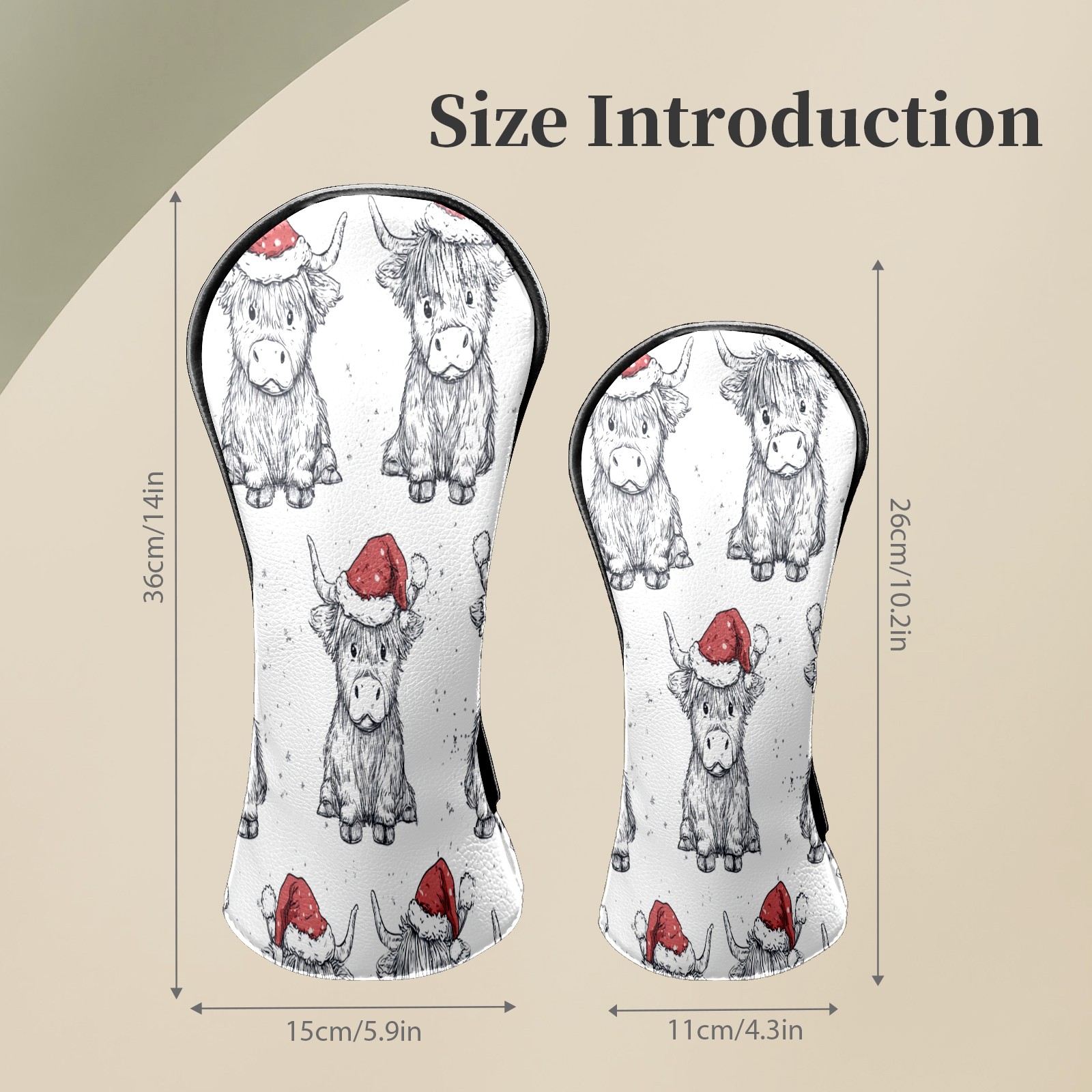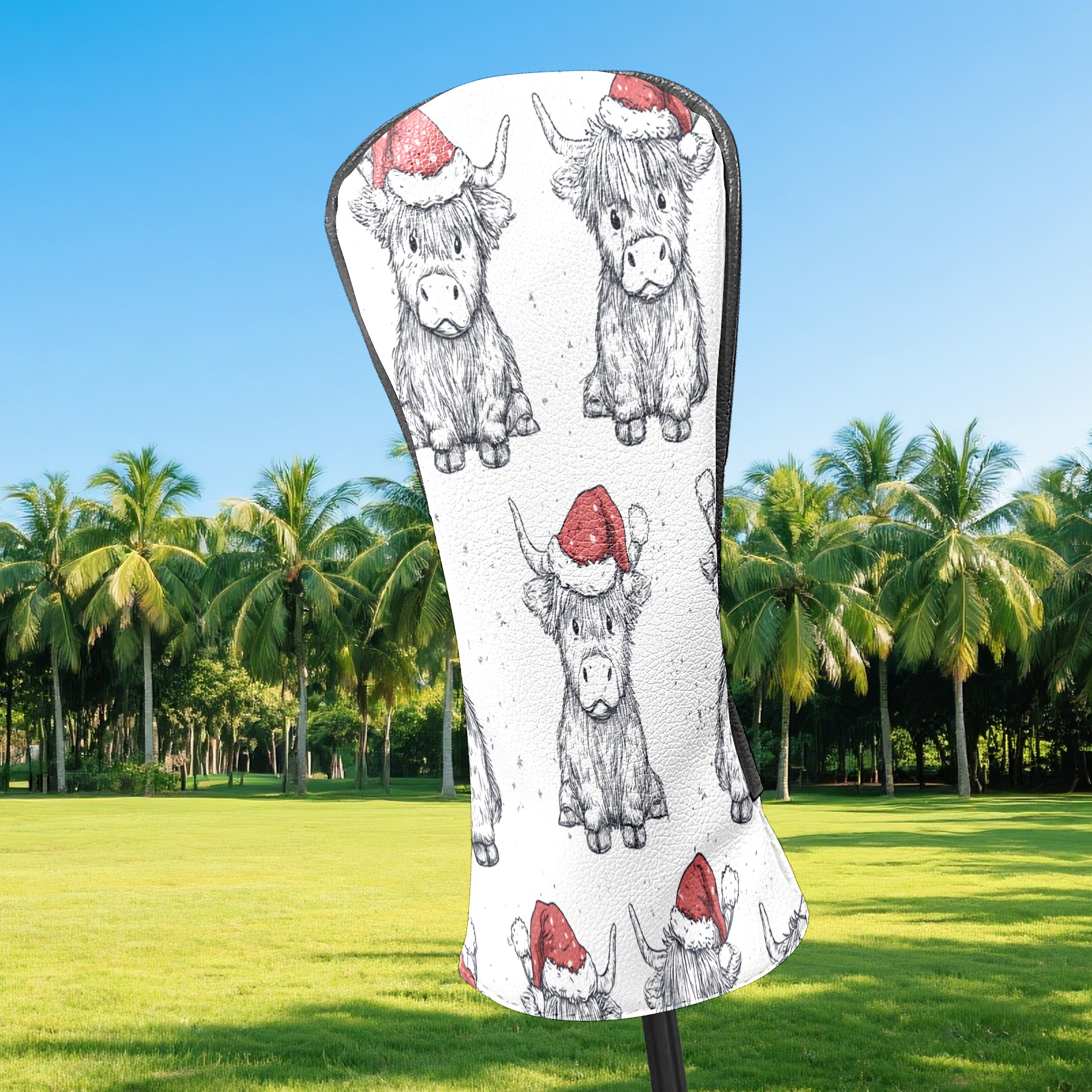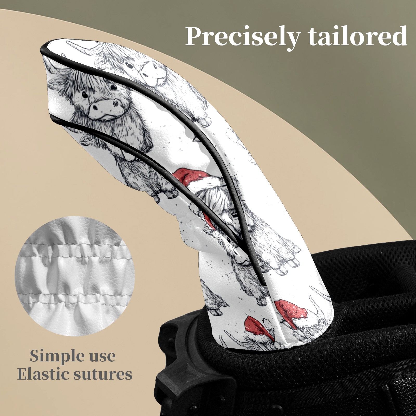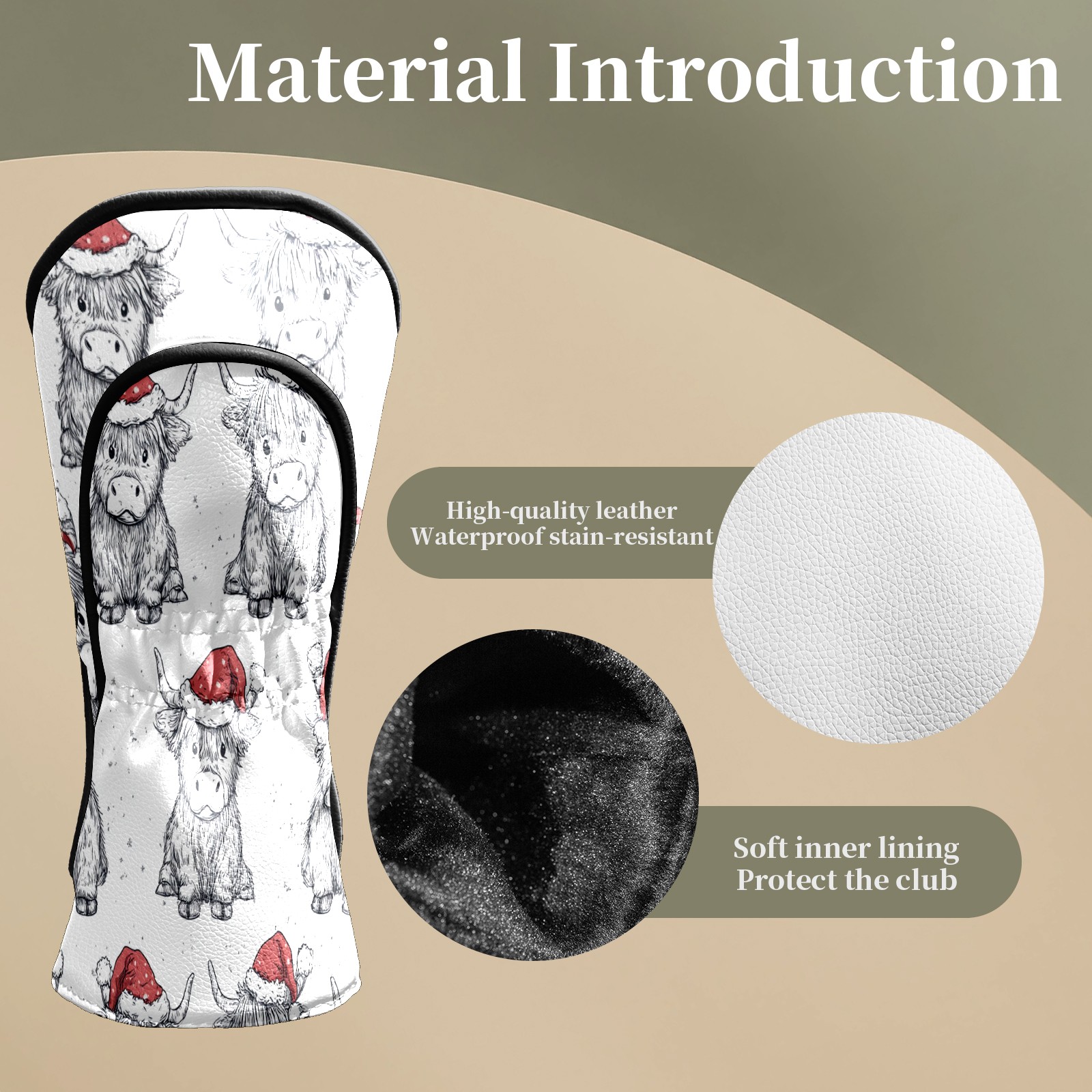 Counullo Golf Head Covers - Gray Xmas Cows Driver Fairway Headcover, Durable PU Leather & Soft Velvet Lining, Secure Elastic Band, Perfect Christmas Golf Gift for Men