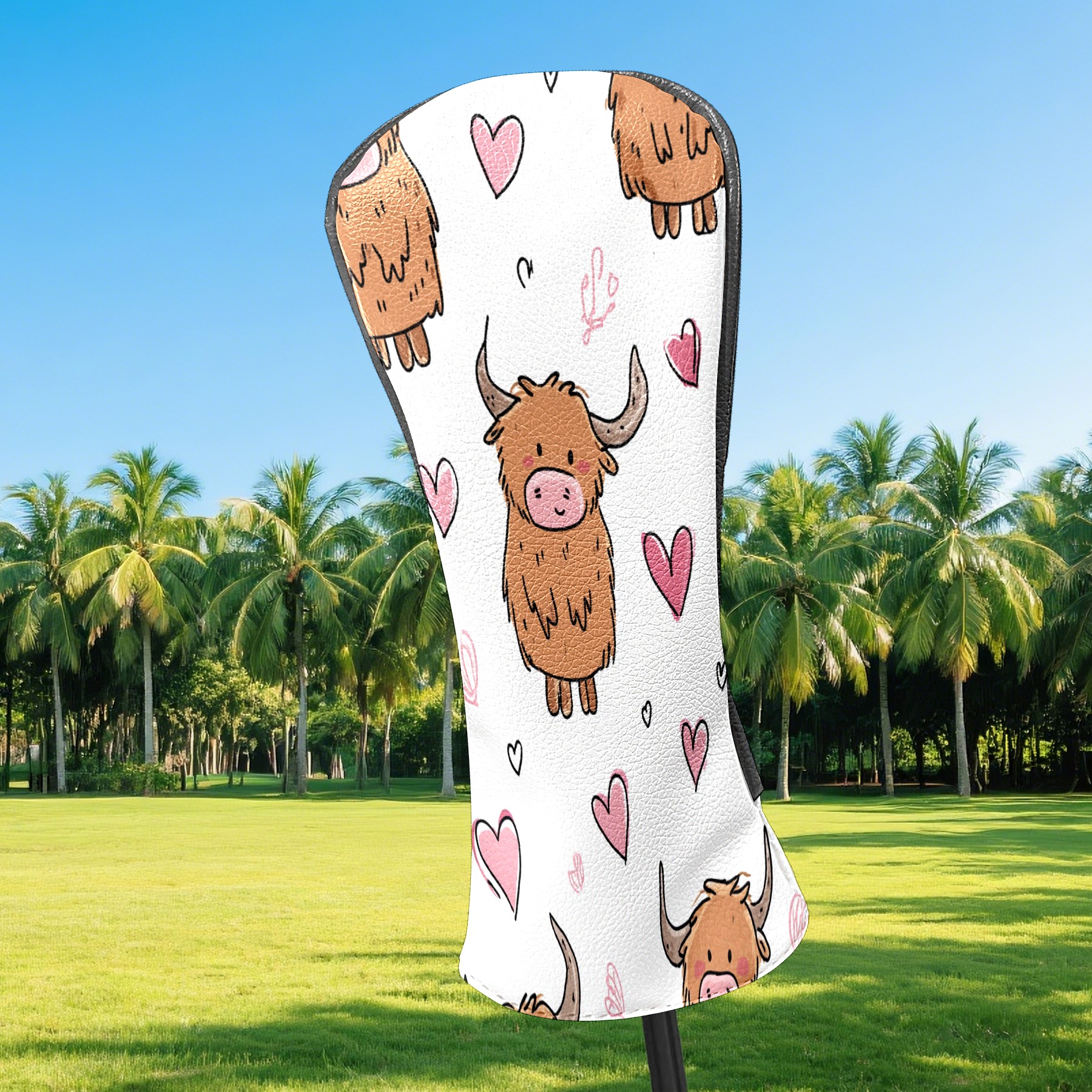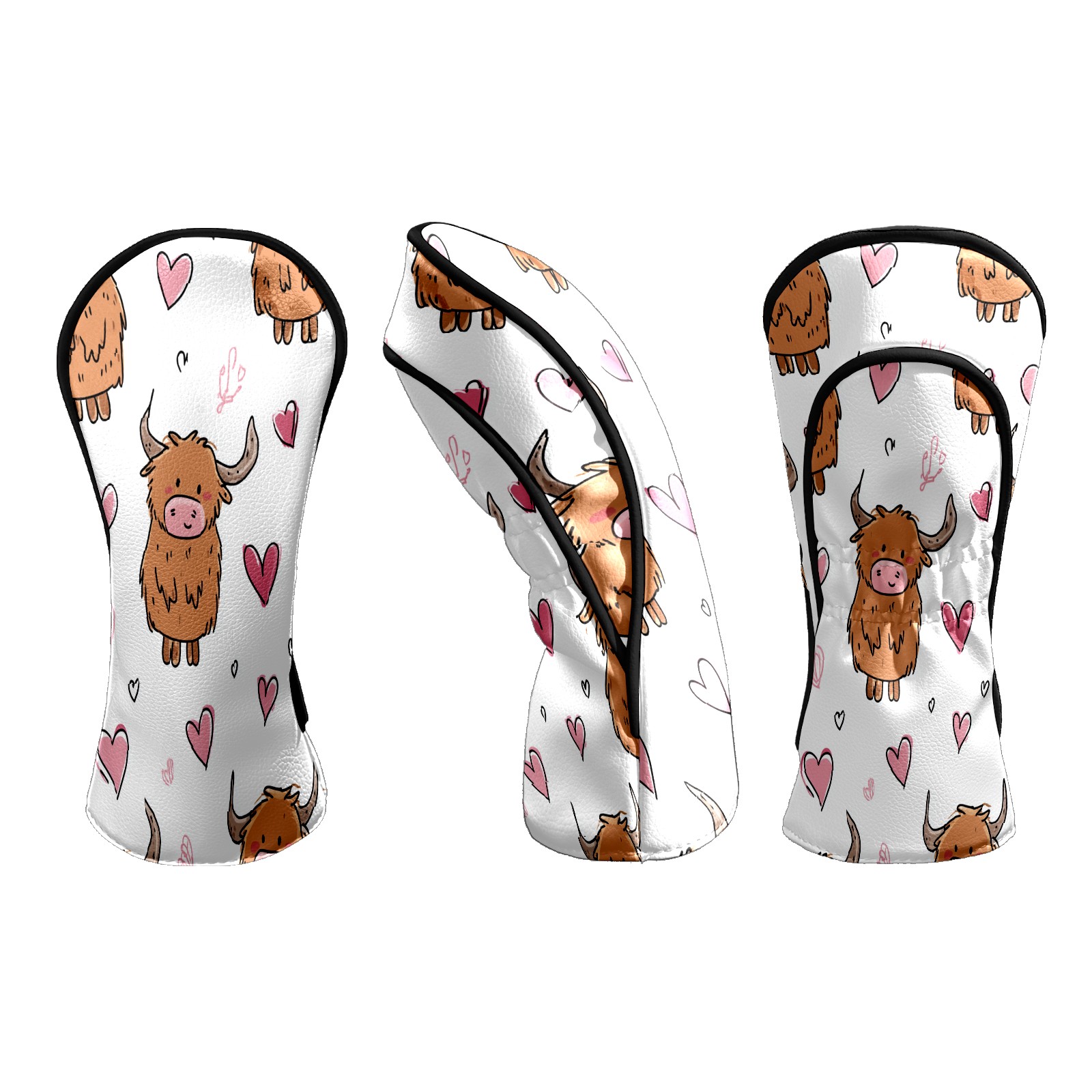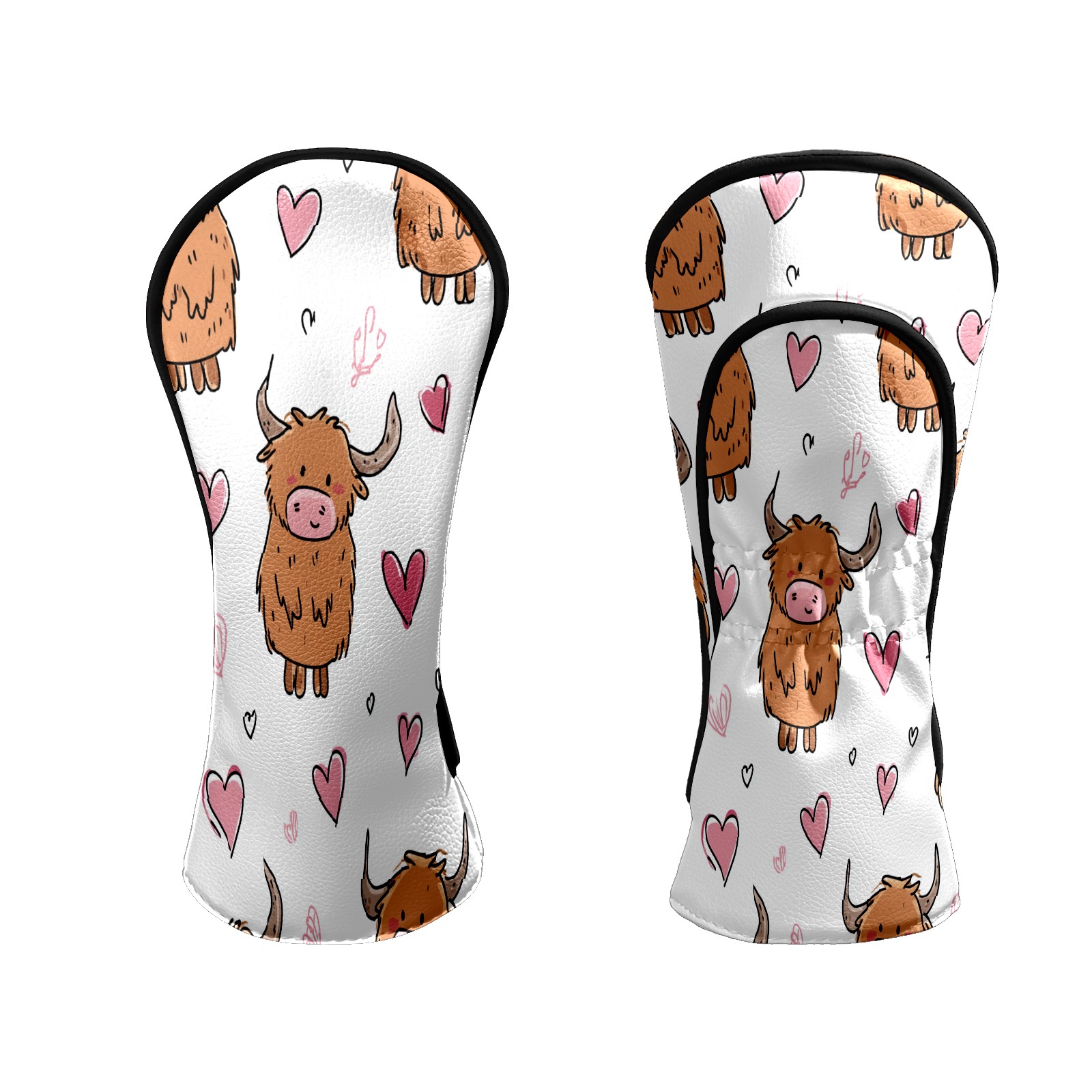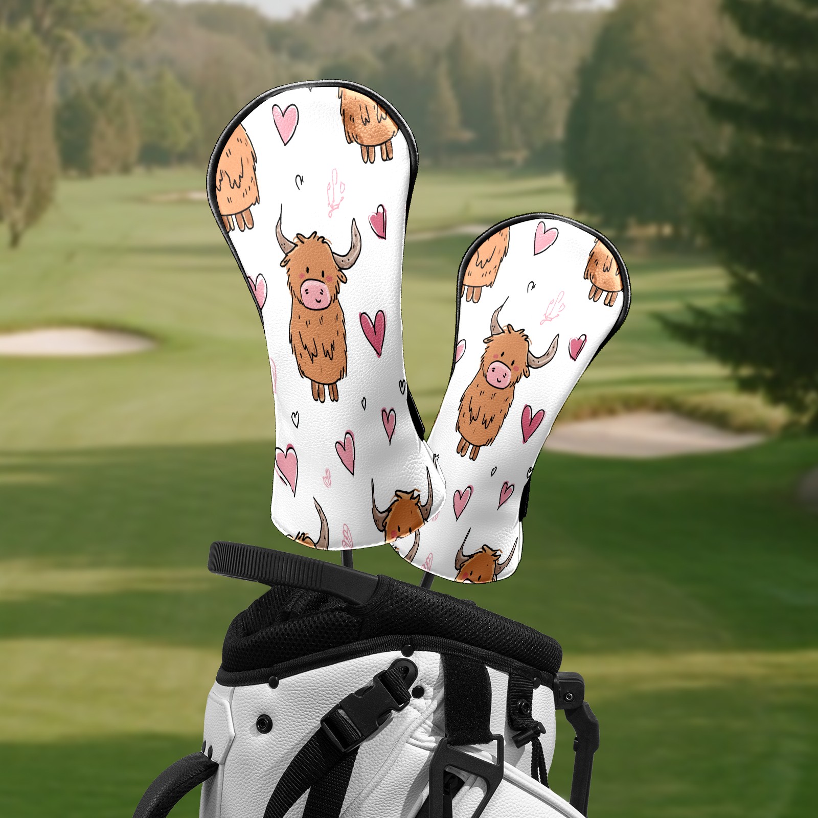 Counullo Golf Head Covers - Brown Heart Cows Driver Fairway Headcover, Durable PU Leather & Soft Velvet Lining, Secure Elastic Band, Perfect Christmas Golf Gift for Men