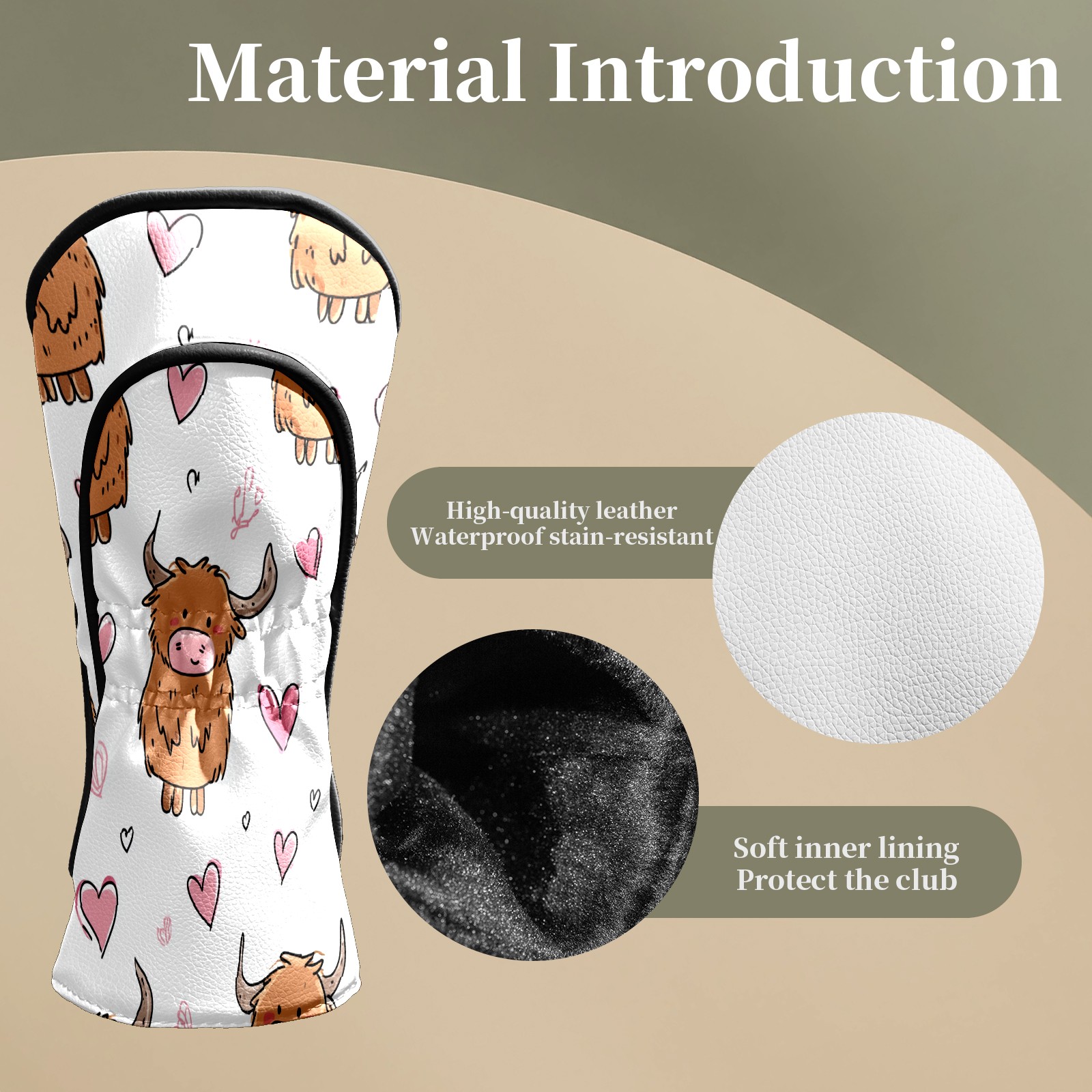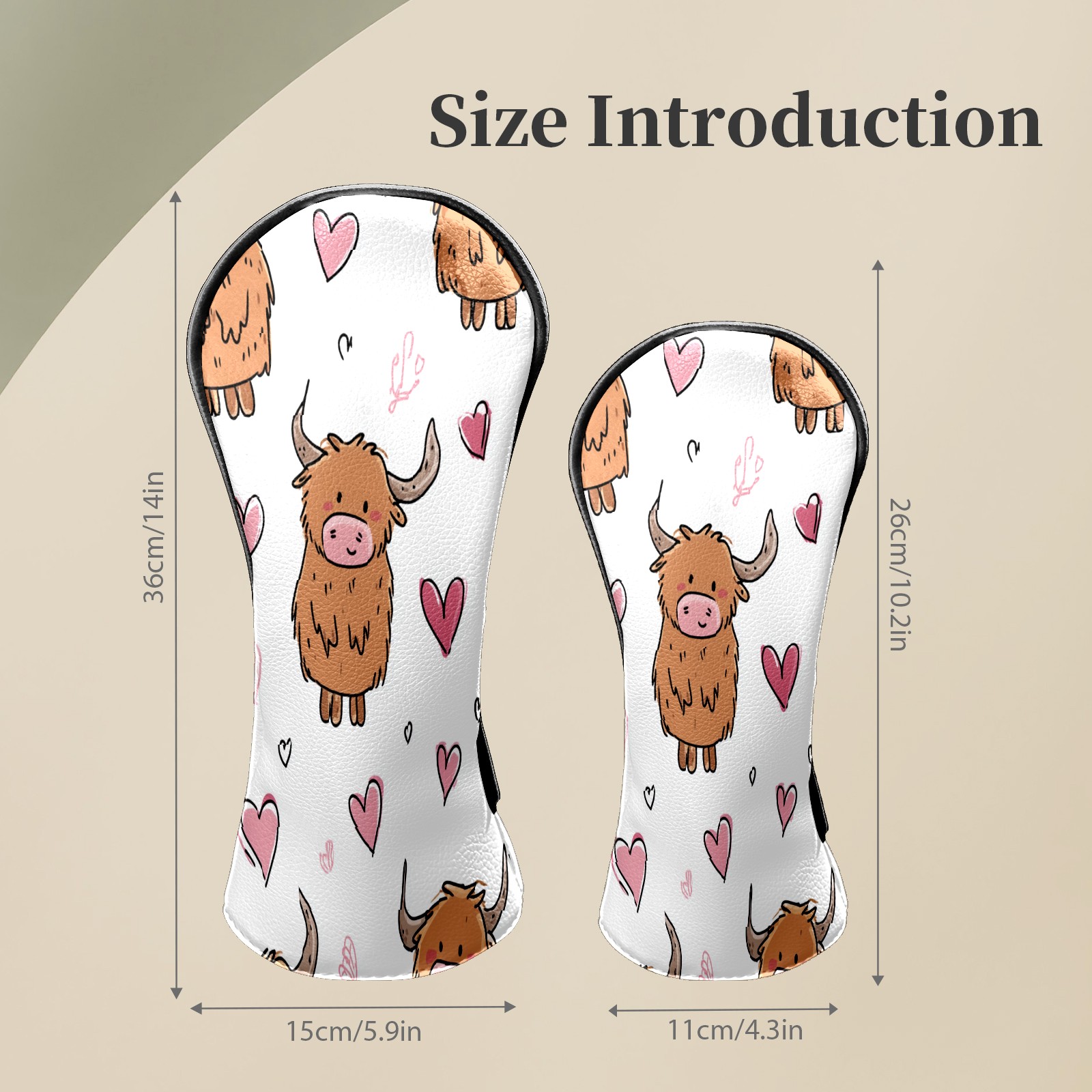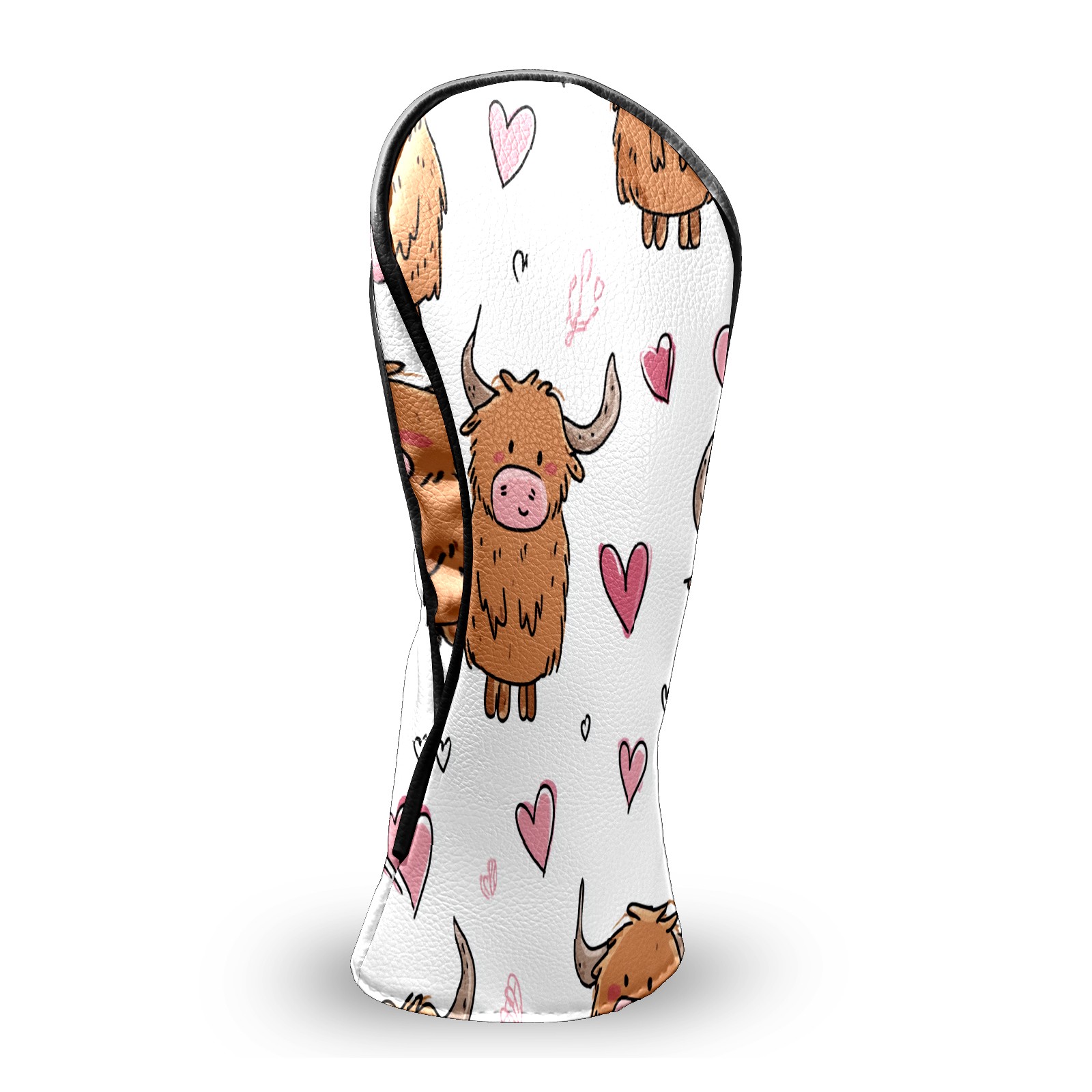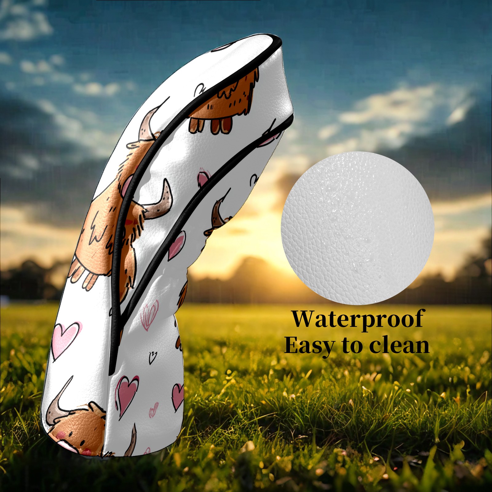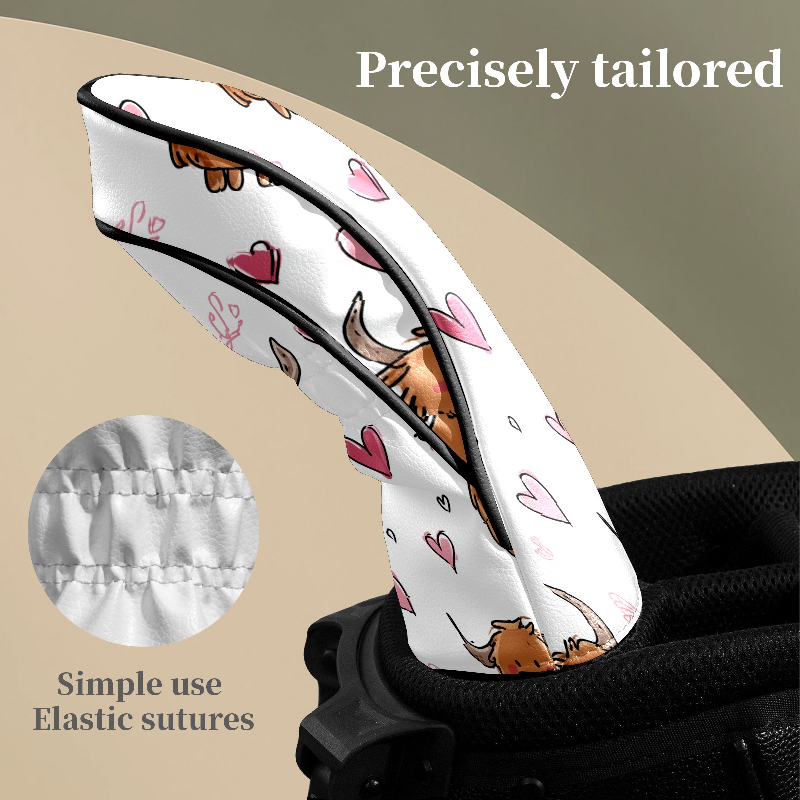 Counullo Golf Head Covers - Brown Heart Cows Driver Fairway Headcover, Durable PU Leather & Soft Velvet Lining, Secure Elastic Band, Perfect Christmas Golf Gift for Men