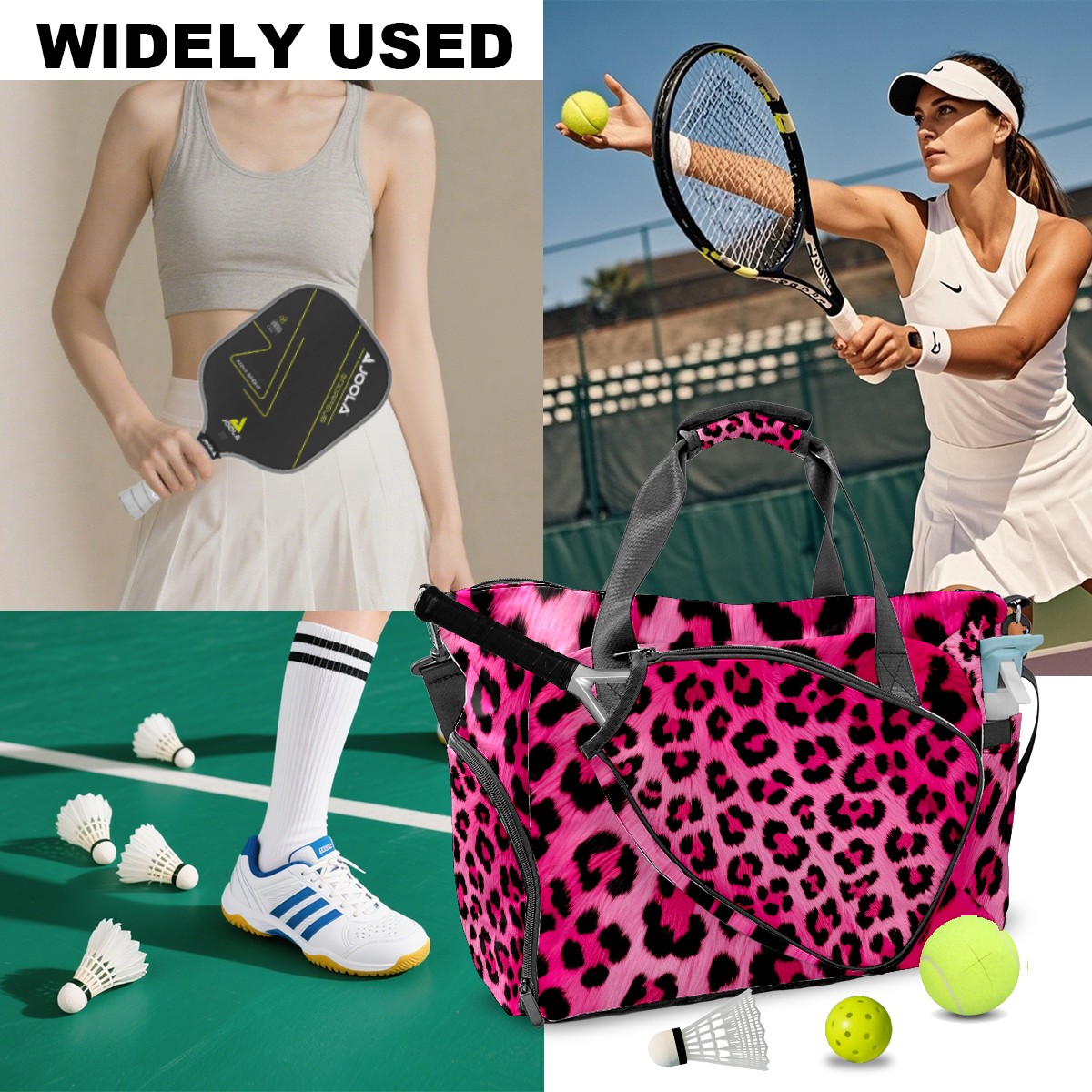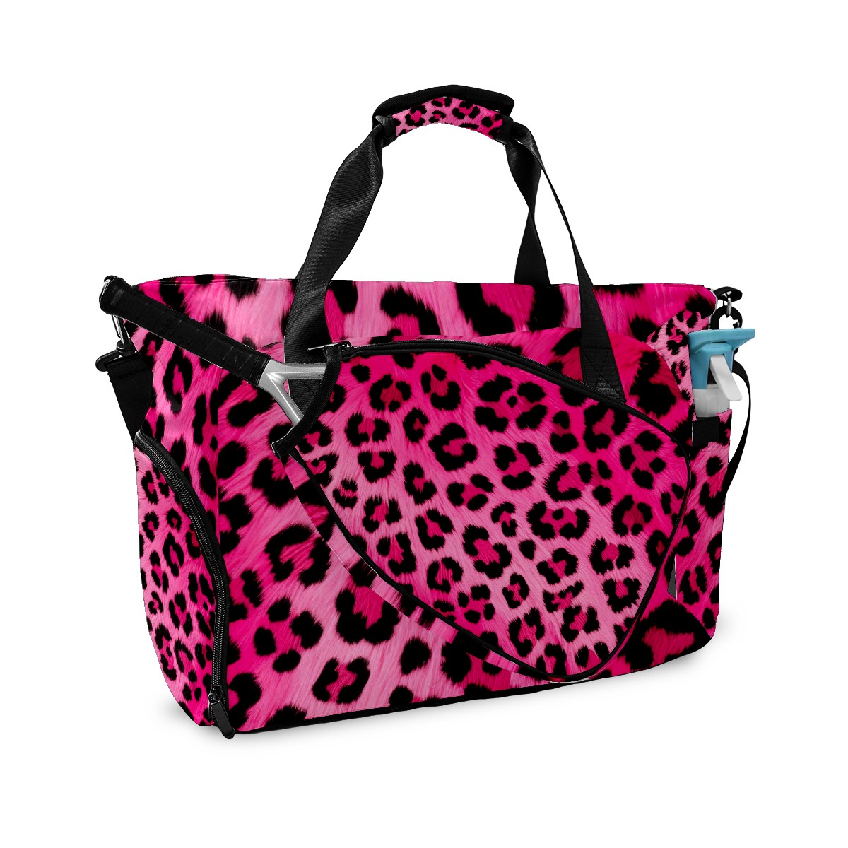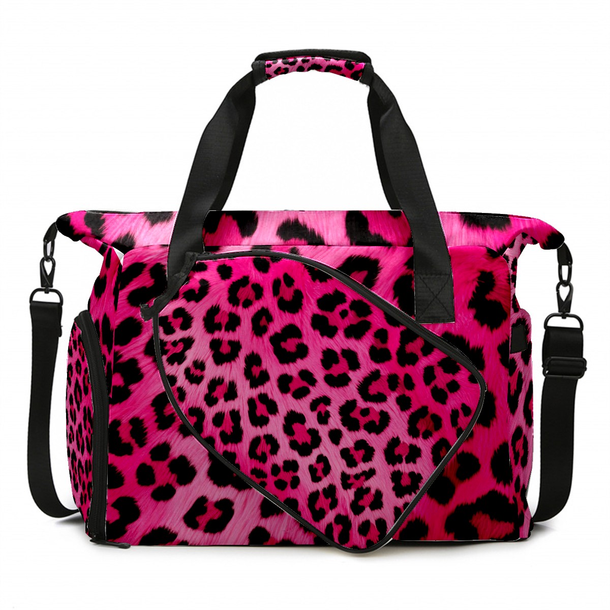 Pickleball Tote Bag Pink Leopard Animal Print Pickleball Bag with Paddle Storage for Women Men Large Sports Bag for Paddles Balls Tennis