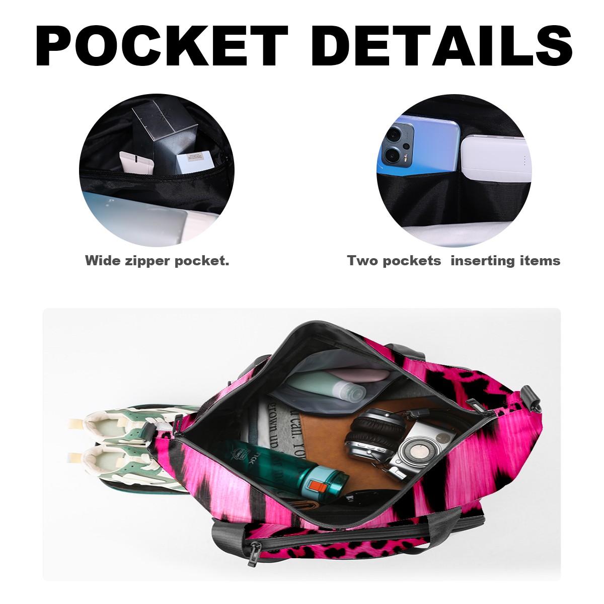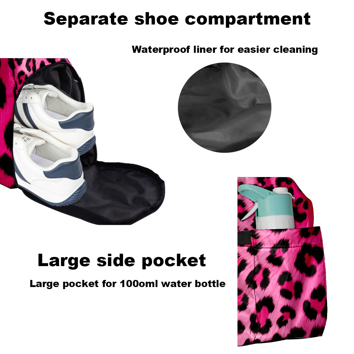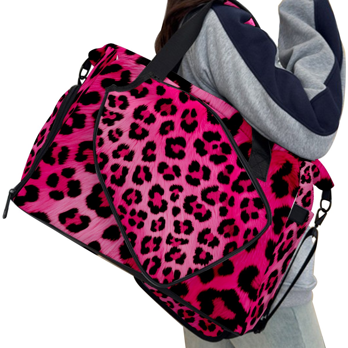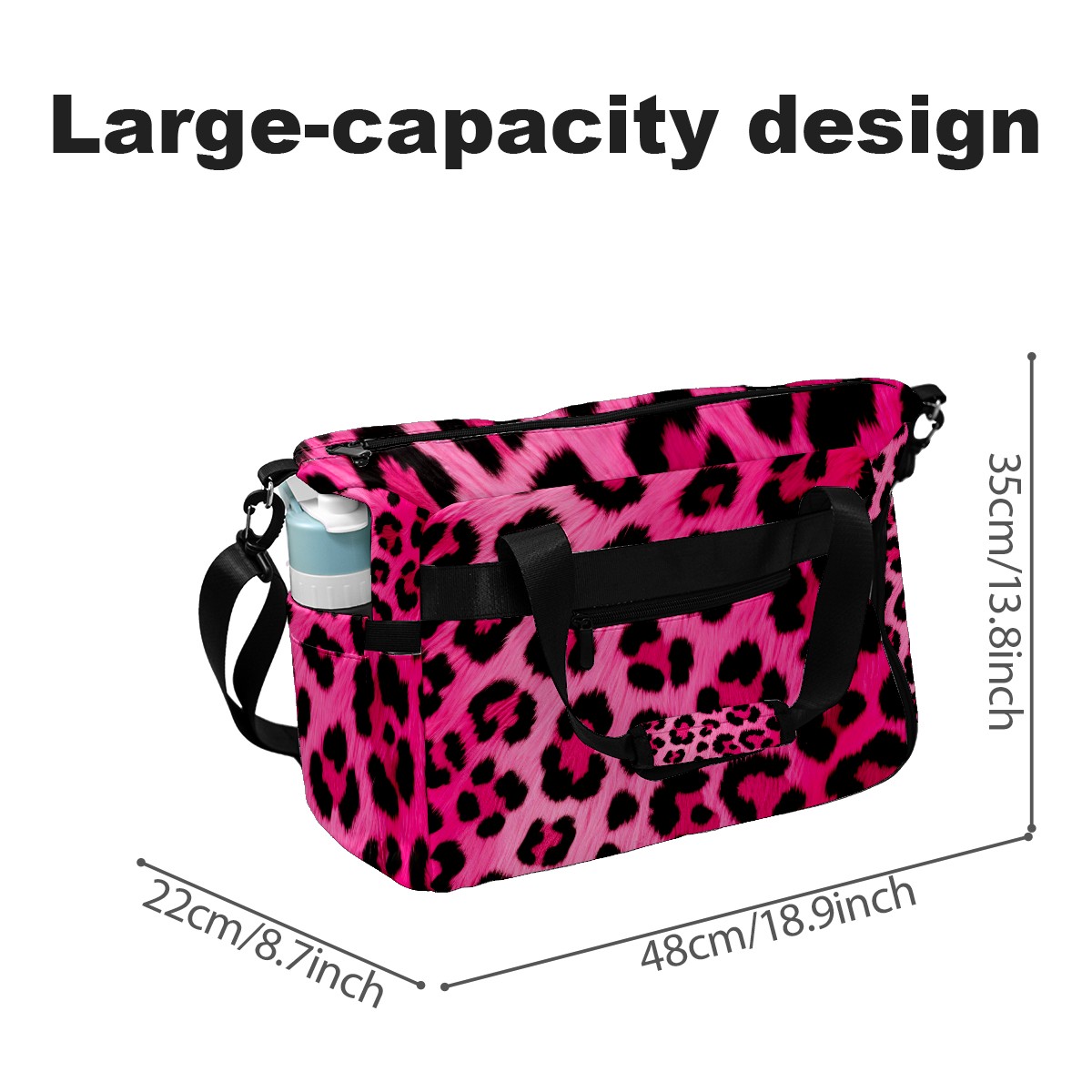 Pickleball Tote Bag Pink Leopard Animal Print Pickleball Bag with Paddle Storage for Women Men Large Sports Bag for Paddles Balls Tennis