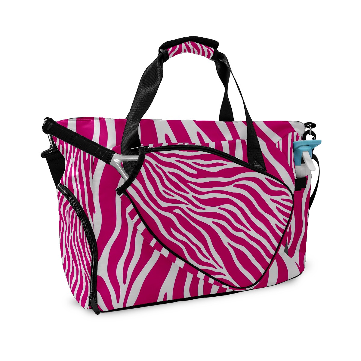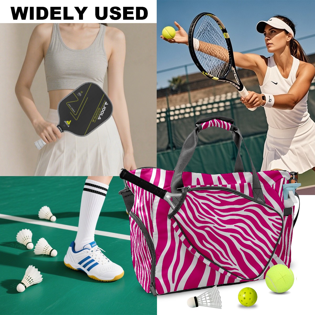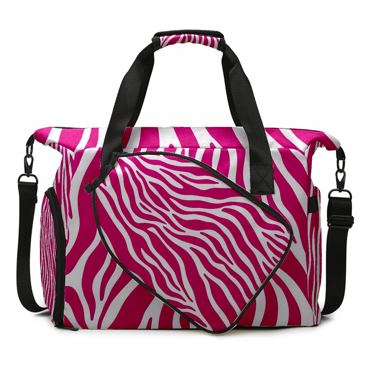 Pickleball Tote Bag Pink Zebra Animal Print Pickleball Bag with Paddle Storage for Women Men Large Sports Bag for Paddles Balls Tennis
