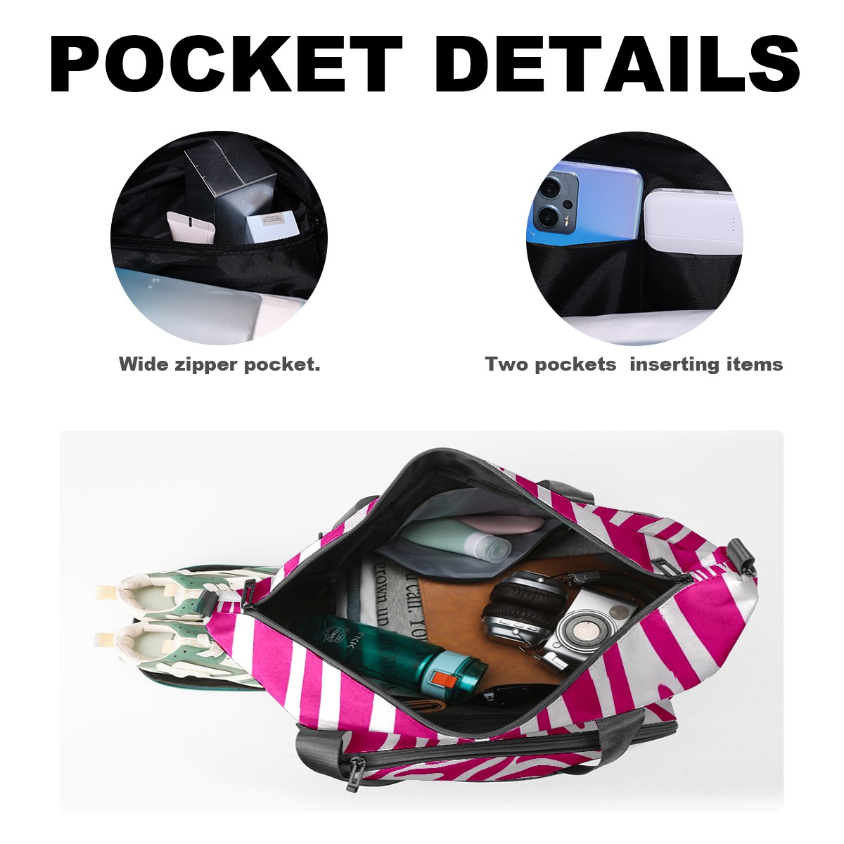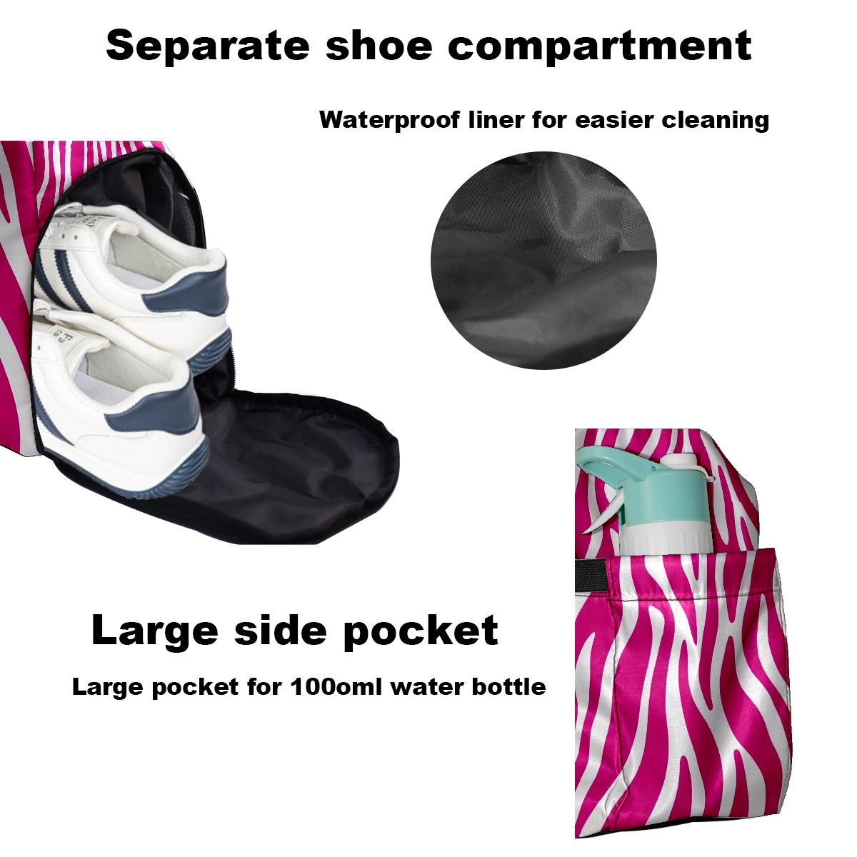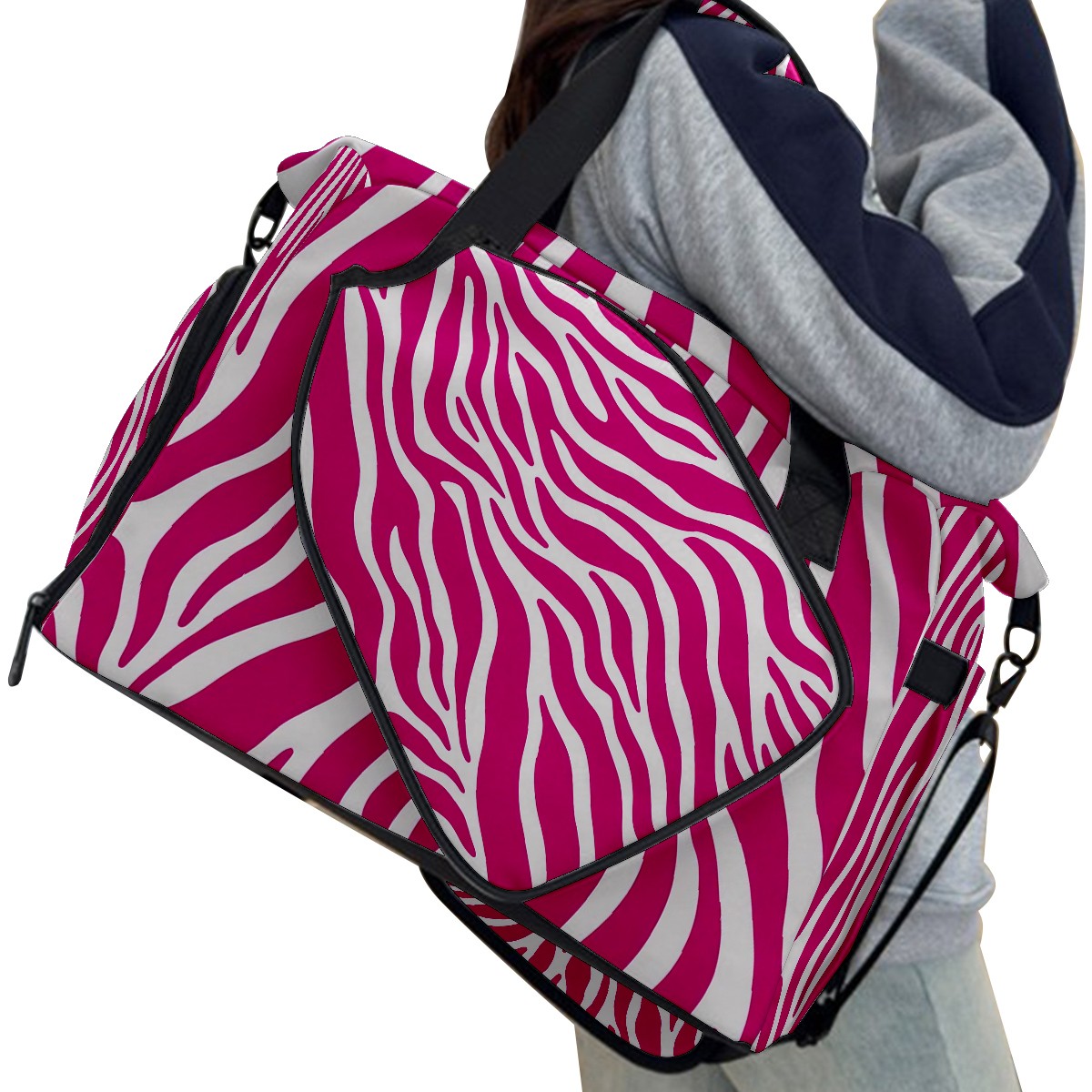 Pickleball Tote Bag Pink Zebra Animal Print Pickleball Bag with Paddle Storage for Women Men Large Sports Bag for Paddles Balls Tennis