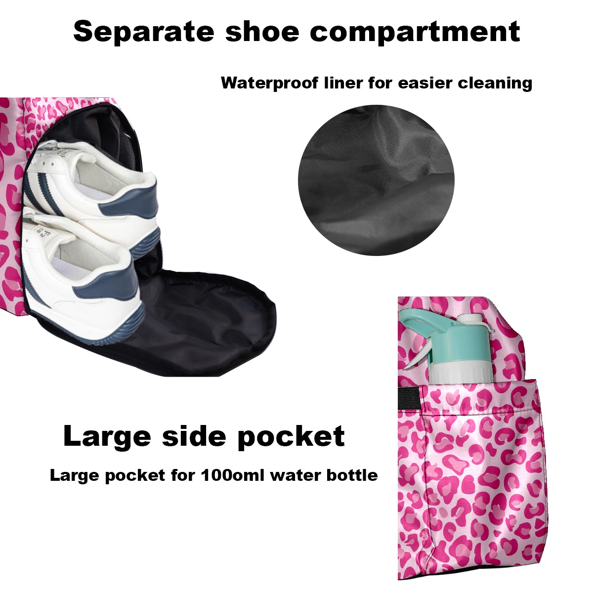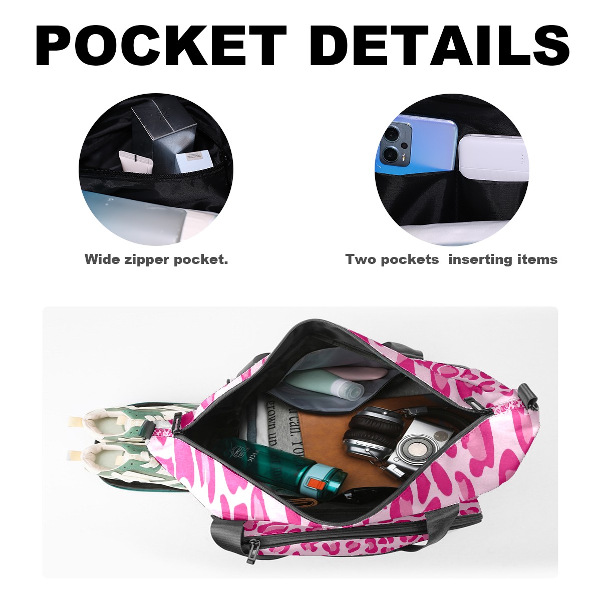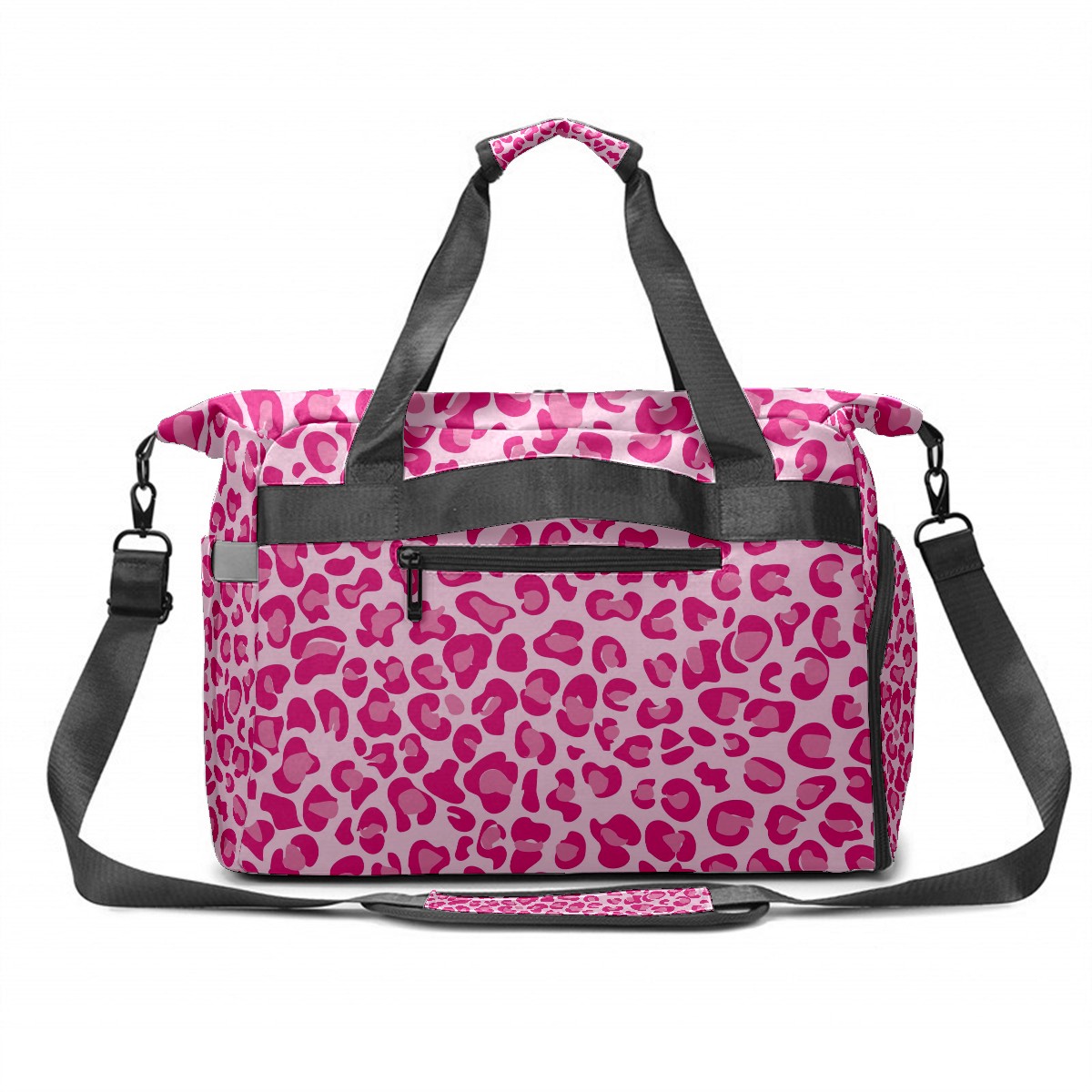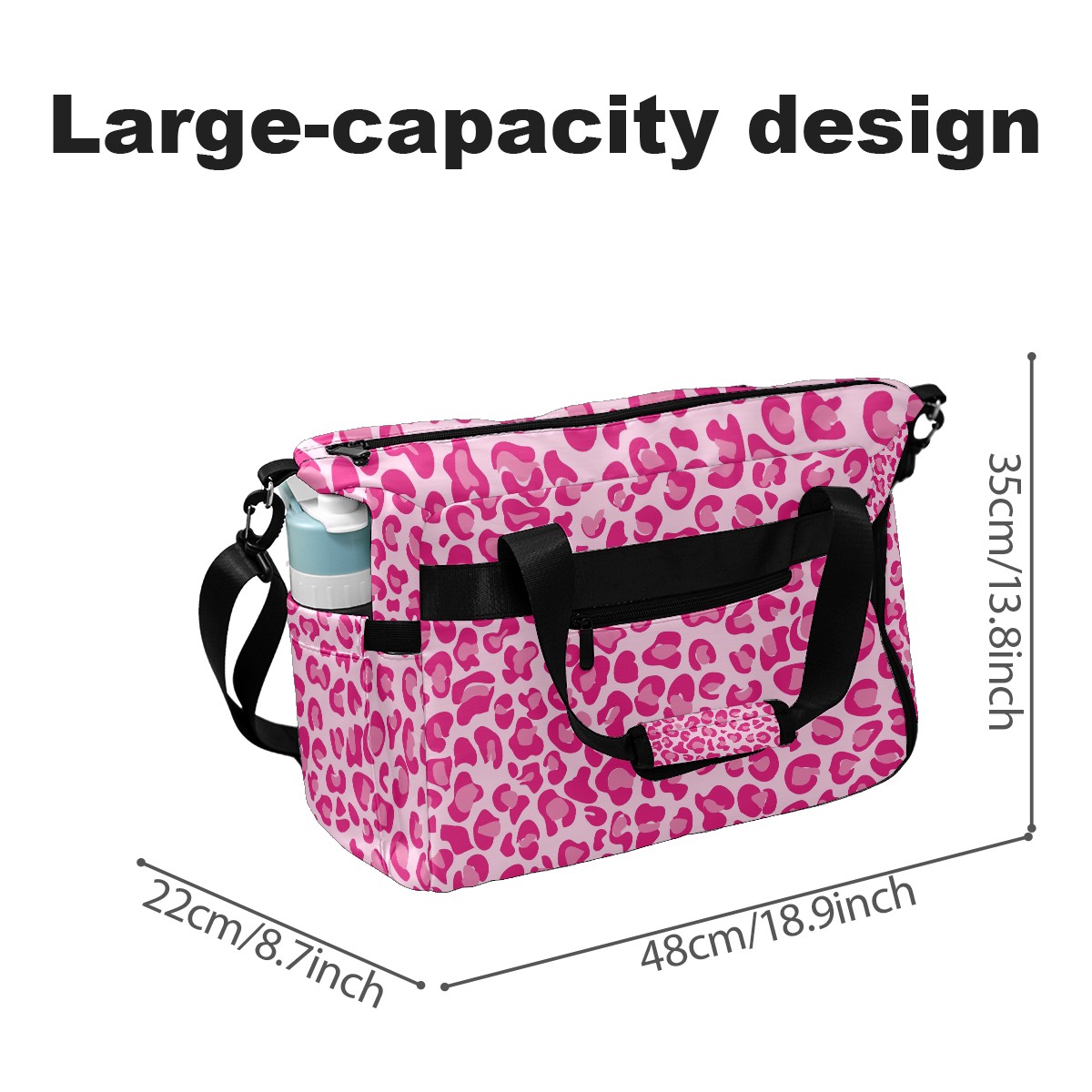 Pickleball Tote Bag Pink Leopard Print Pickleball Bag with Paddle Storage for Women Men Large Sports Bag for Paddles Balls Tennis