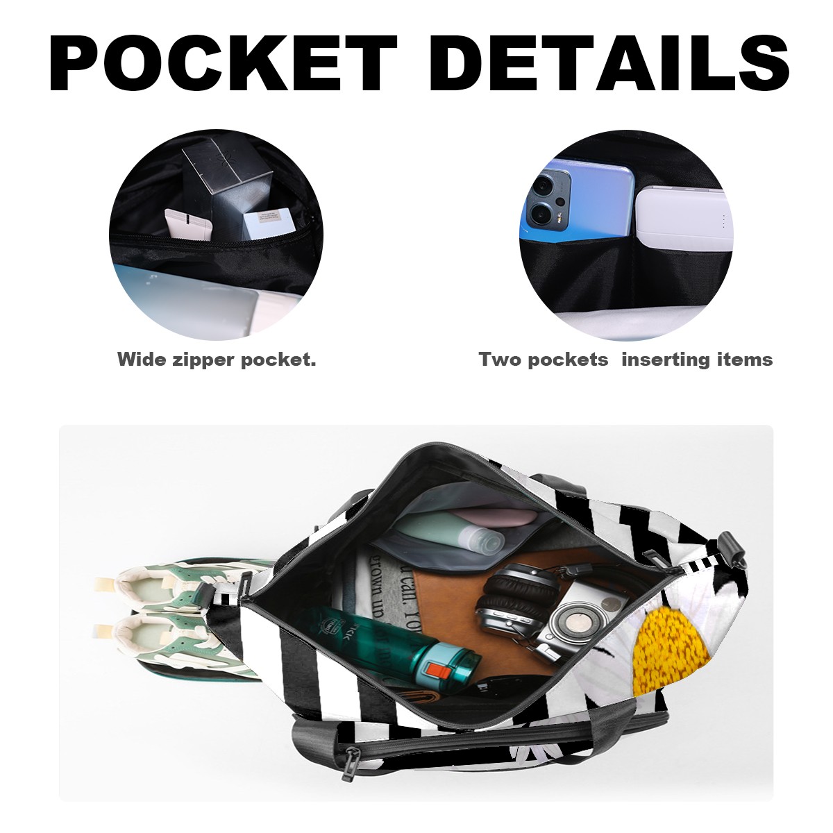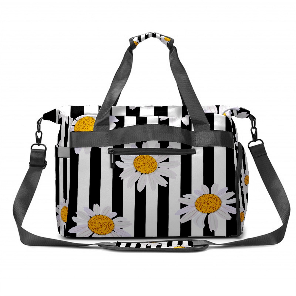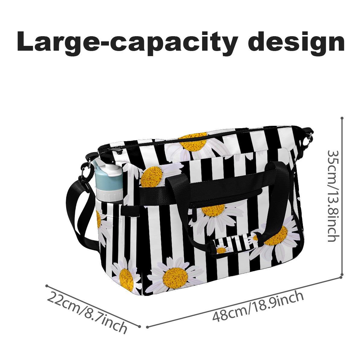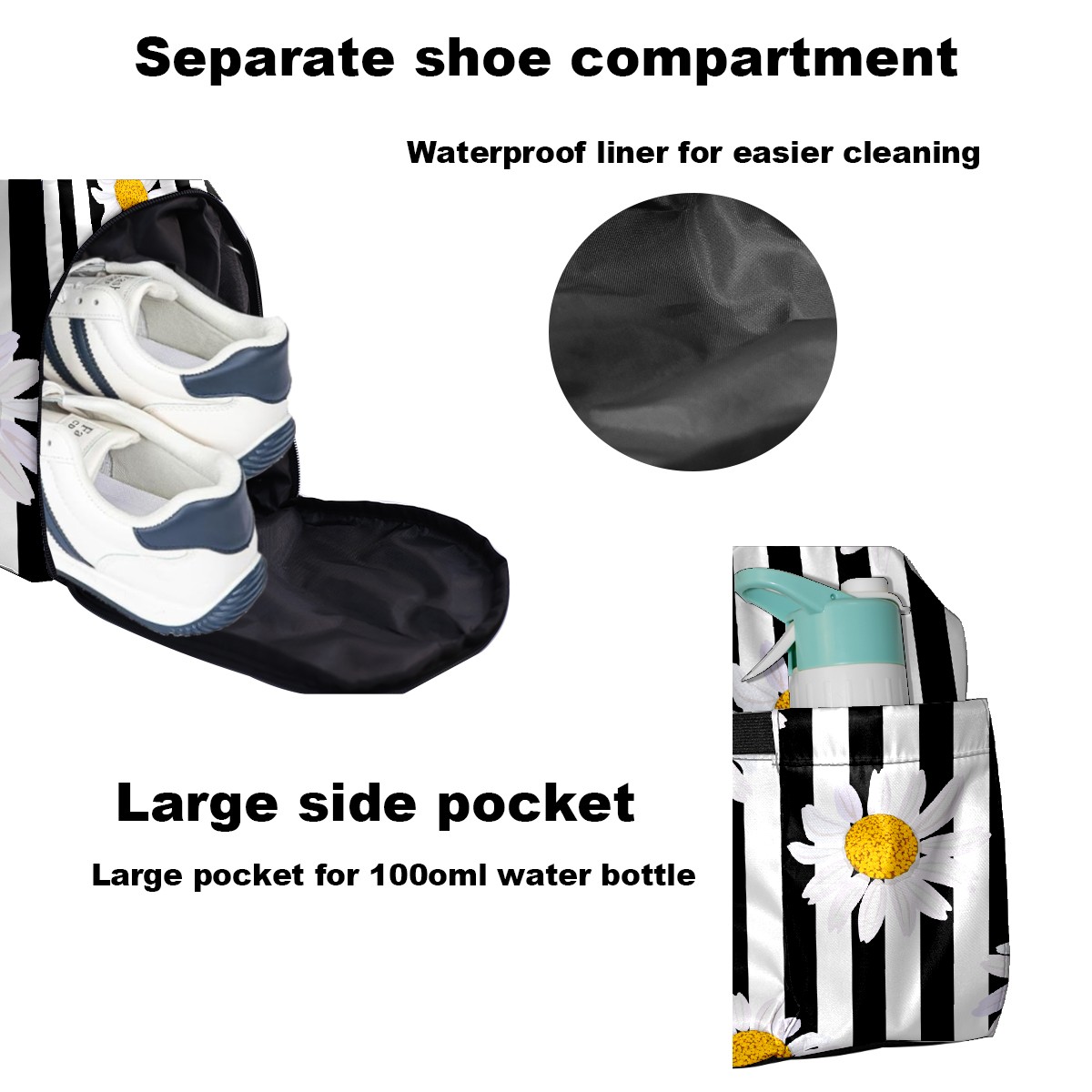 Pickleball Tote Bag Daisy Black White Vertical Stripes Pickleball Bag with Paddle Storage for Women Men Large Sports Bag for Paddles Balls Tennis