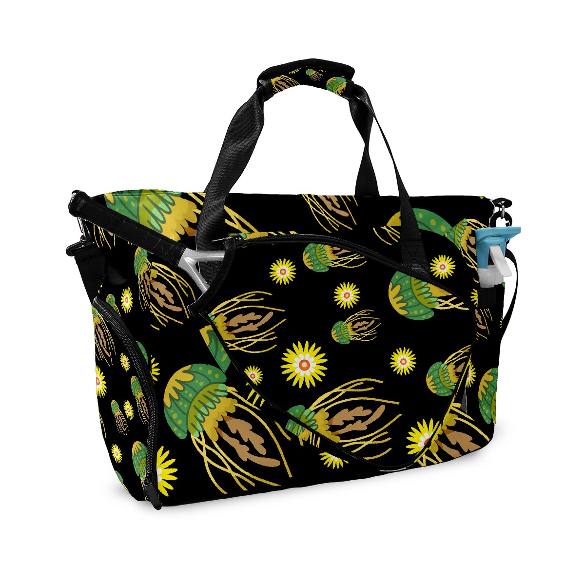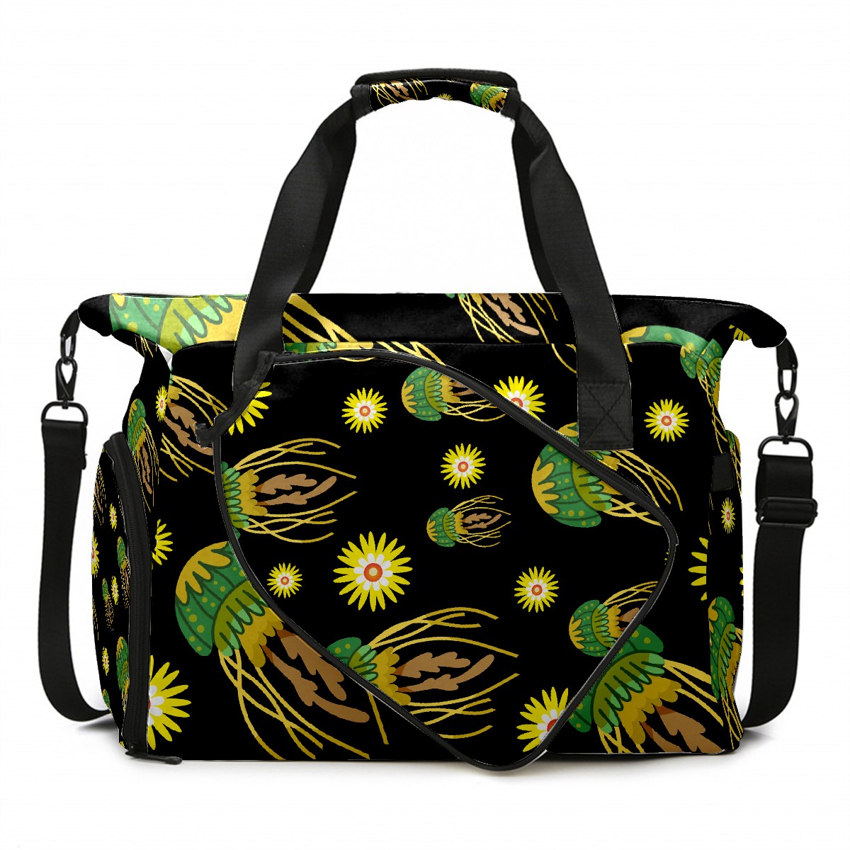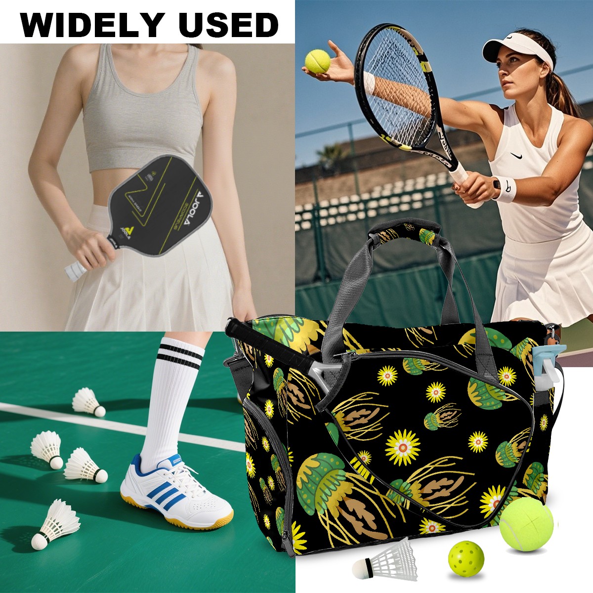 Pickleball Tote Bag Daisy Flower Green Jellyfish Pickleball Bag with Paddle Storage for Women Men Large Sports Bag for Paddles Balls Tennis