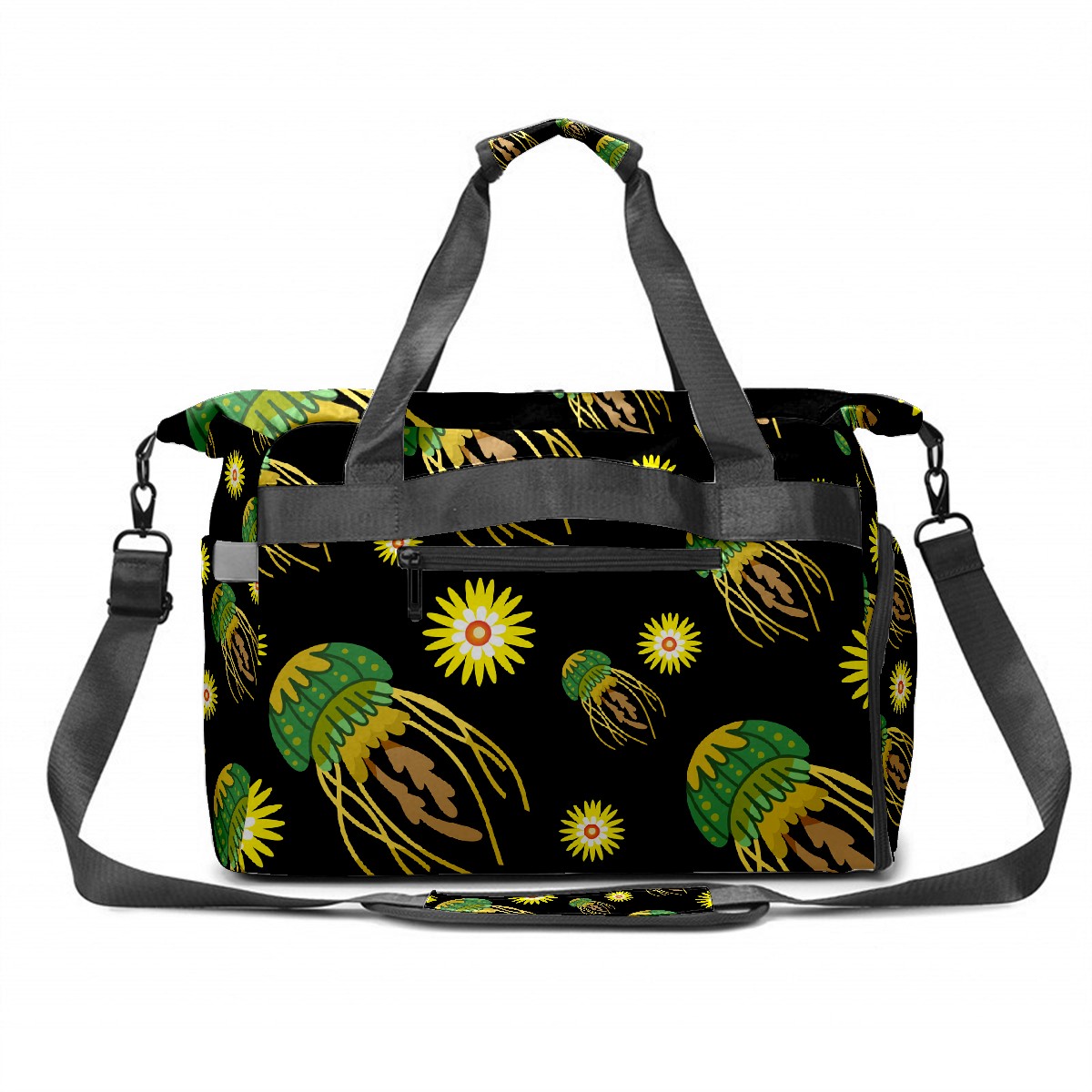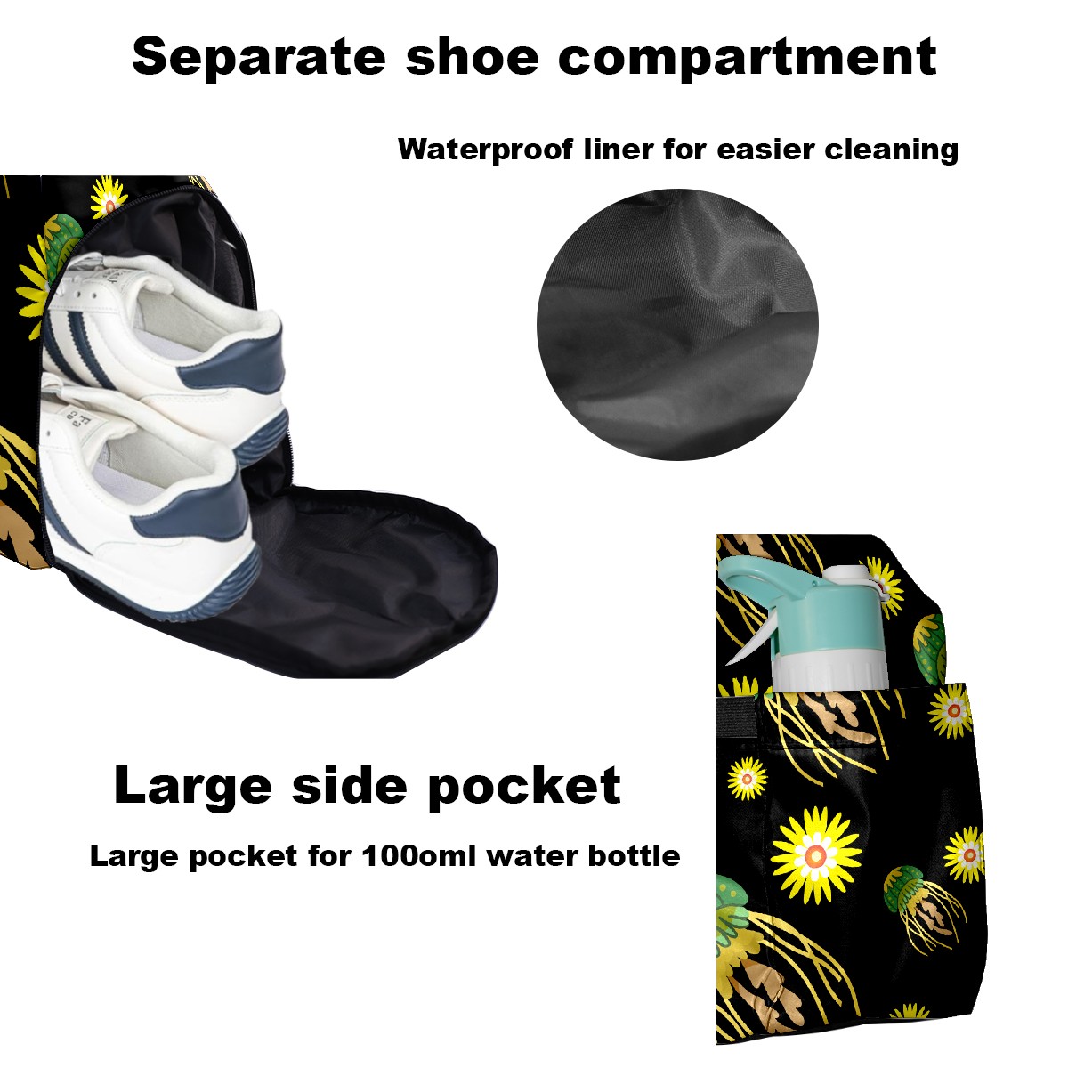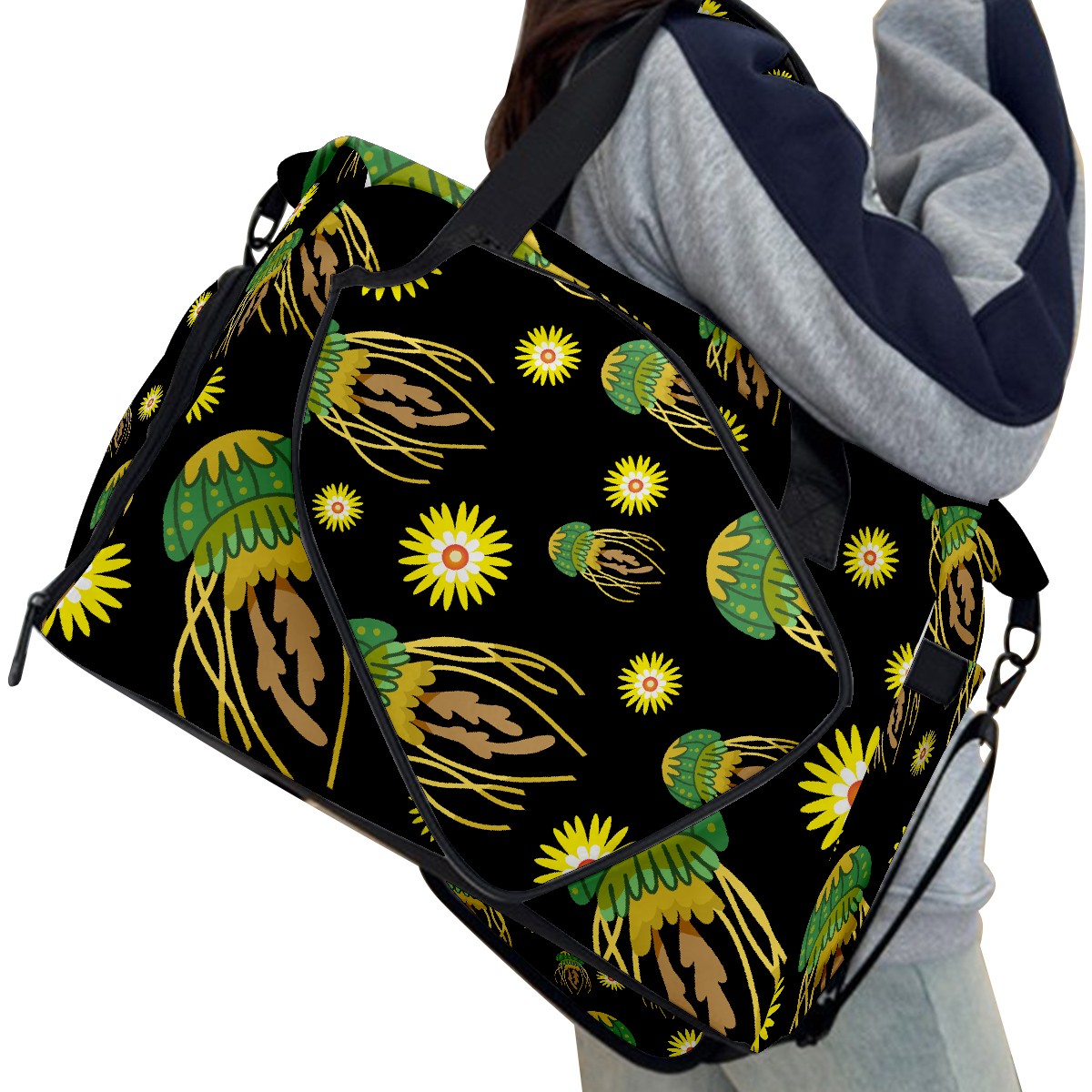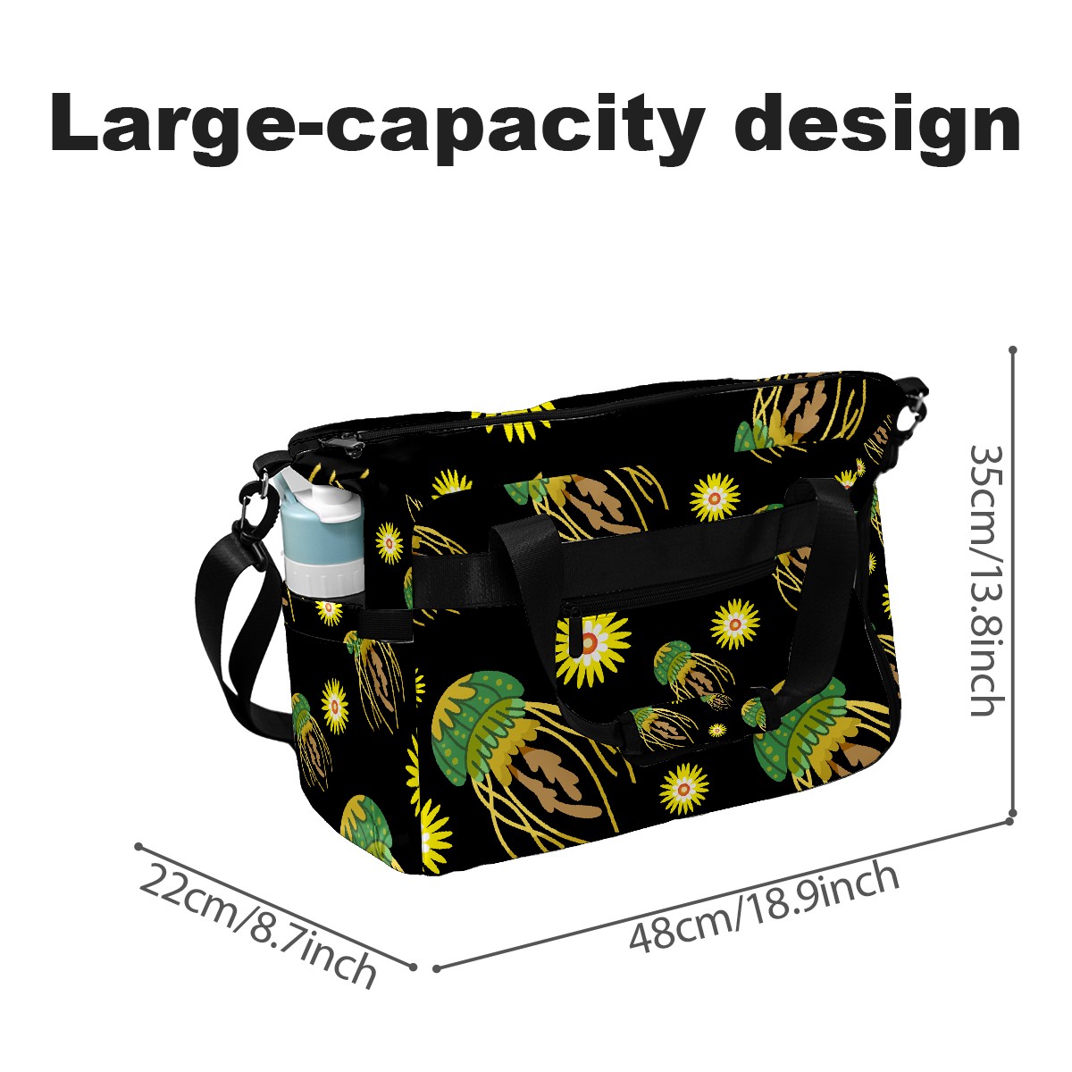 Pickleball Tote Bag Daisy Flower Green Jellyfish Pickleball Bag with Paddle Storage for Women Men Large Sports Bag for Paddles Balls Tennis
