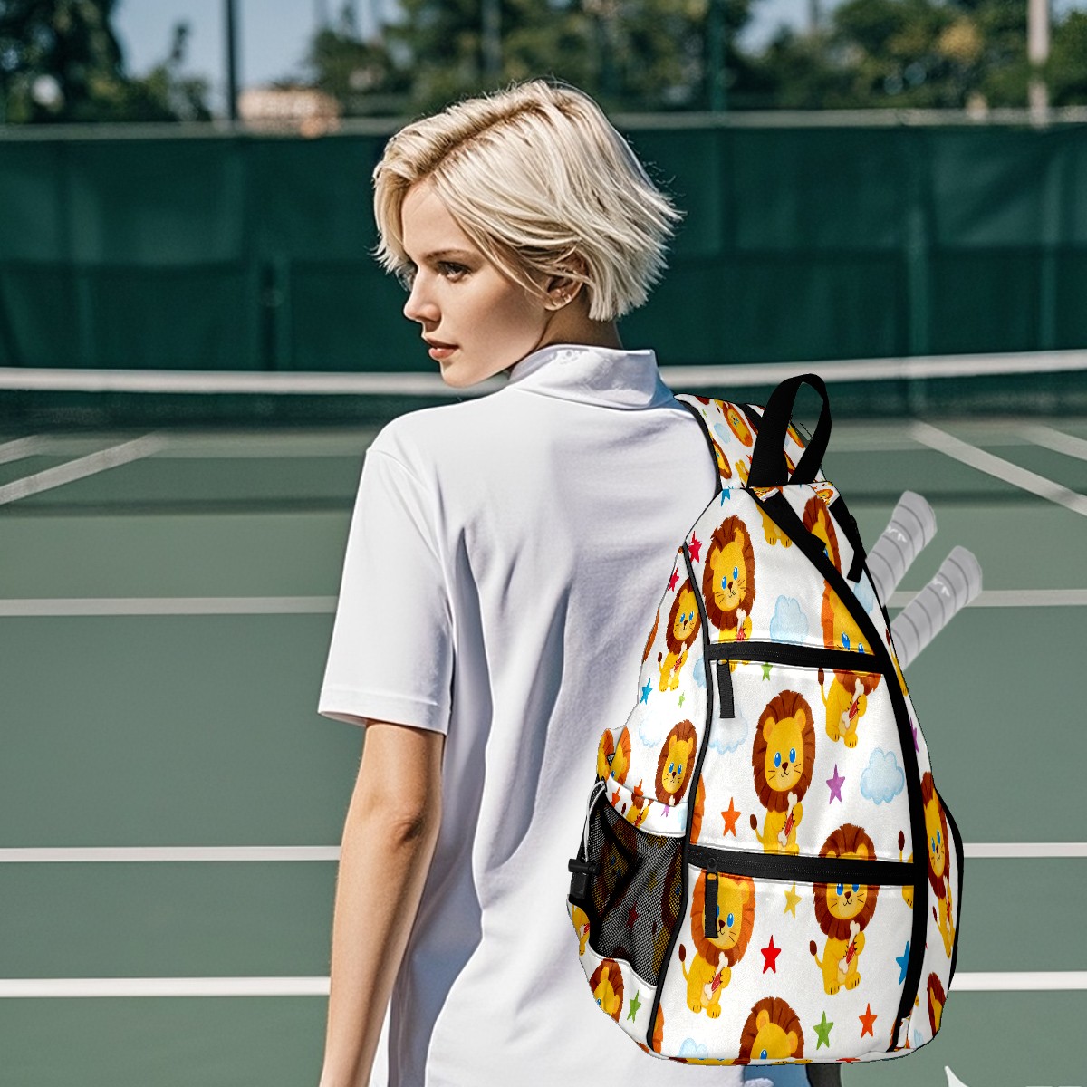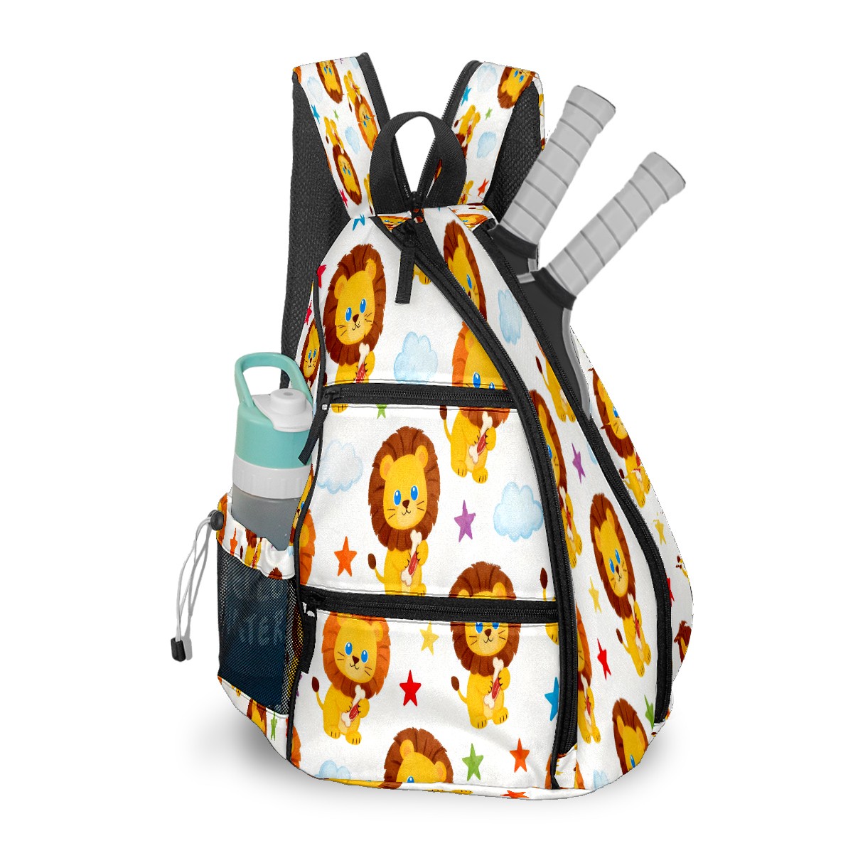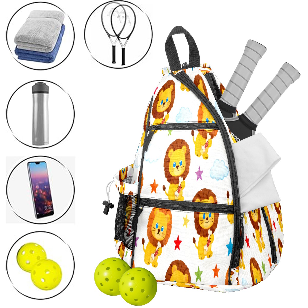 Print Pickleball Backpack Yellow Lions | Padded 6-Paddle Compartment & Separate Shoe Bag | Multi-Pocket Sports & Gym Backpack for Tennis, Travel, Commute