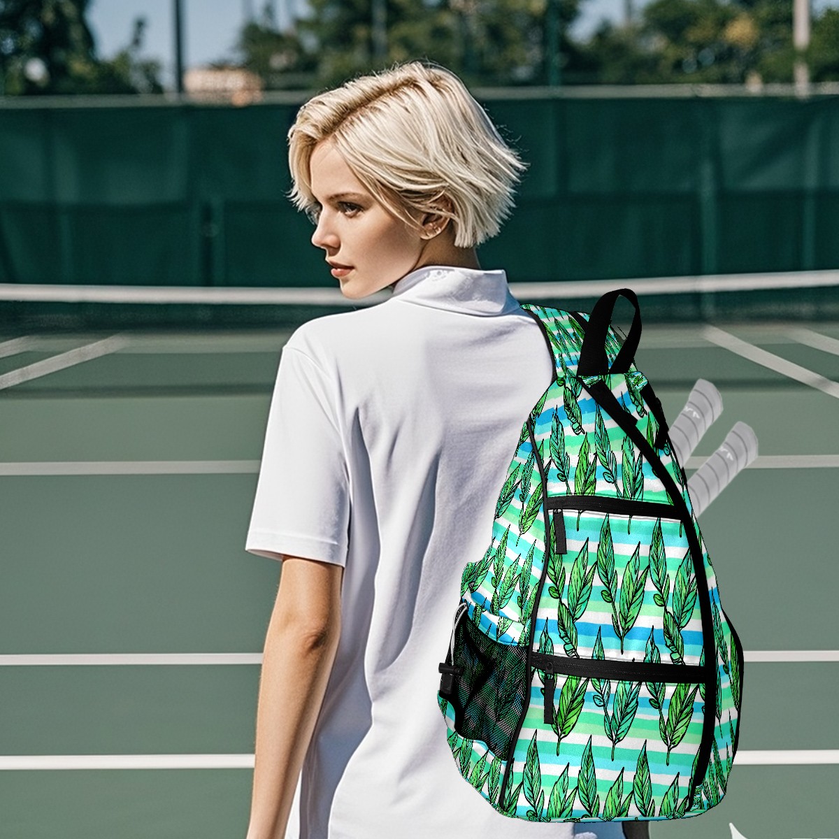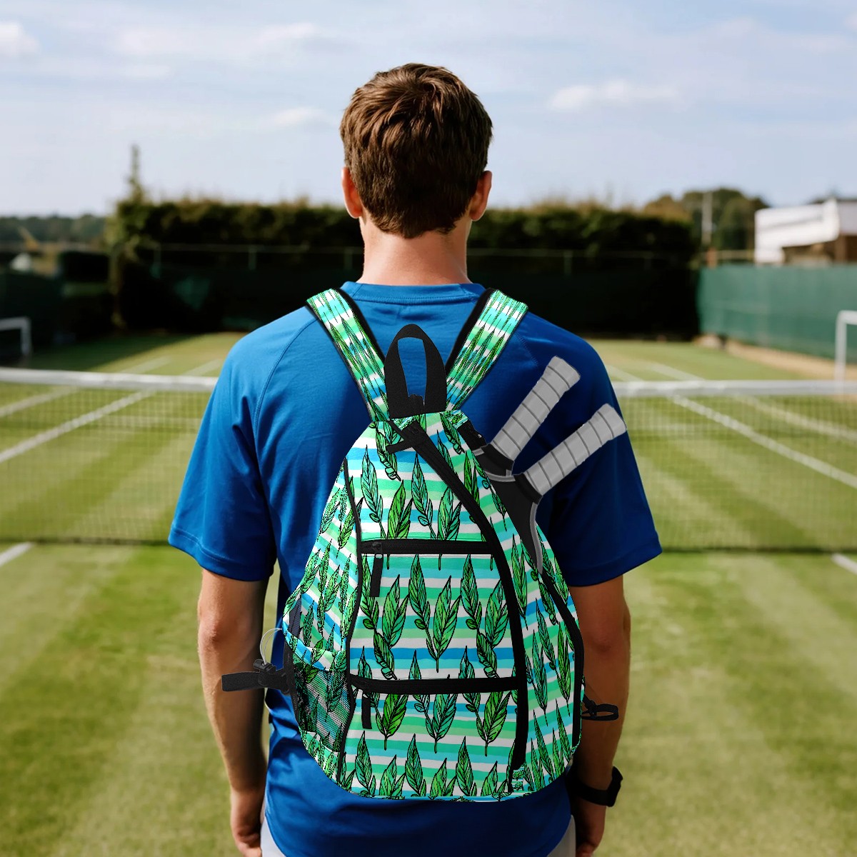Print Pickleball Backpack Green Leaves | Padded 6-Paddle Compartment & Separate Shoe Bag | Multi-Pocket Sports & Gym Backpack for Tennis, Travel, Commute
