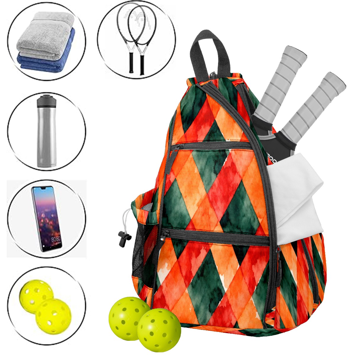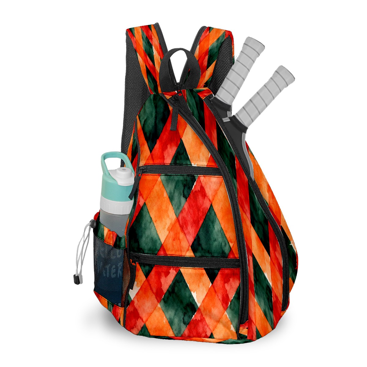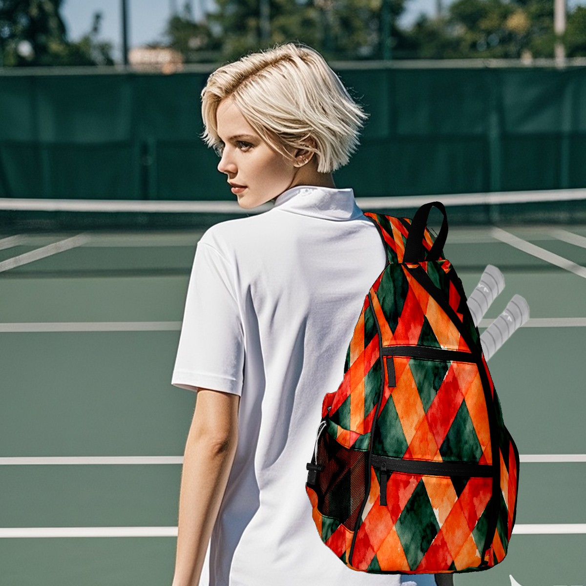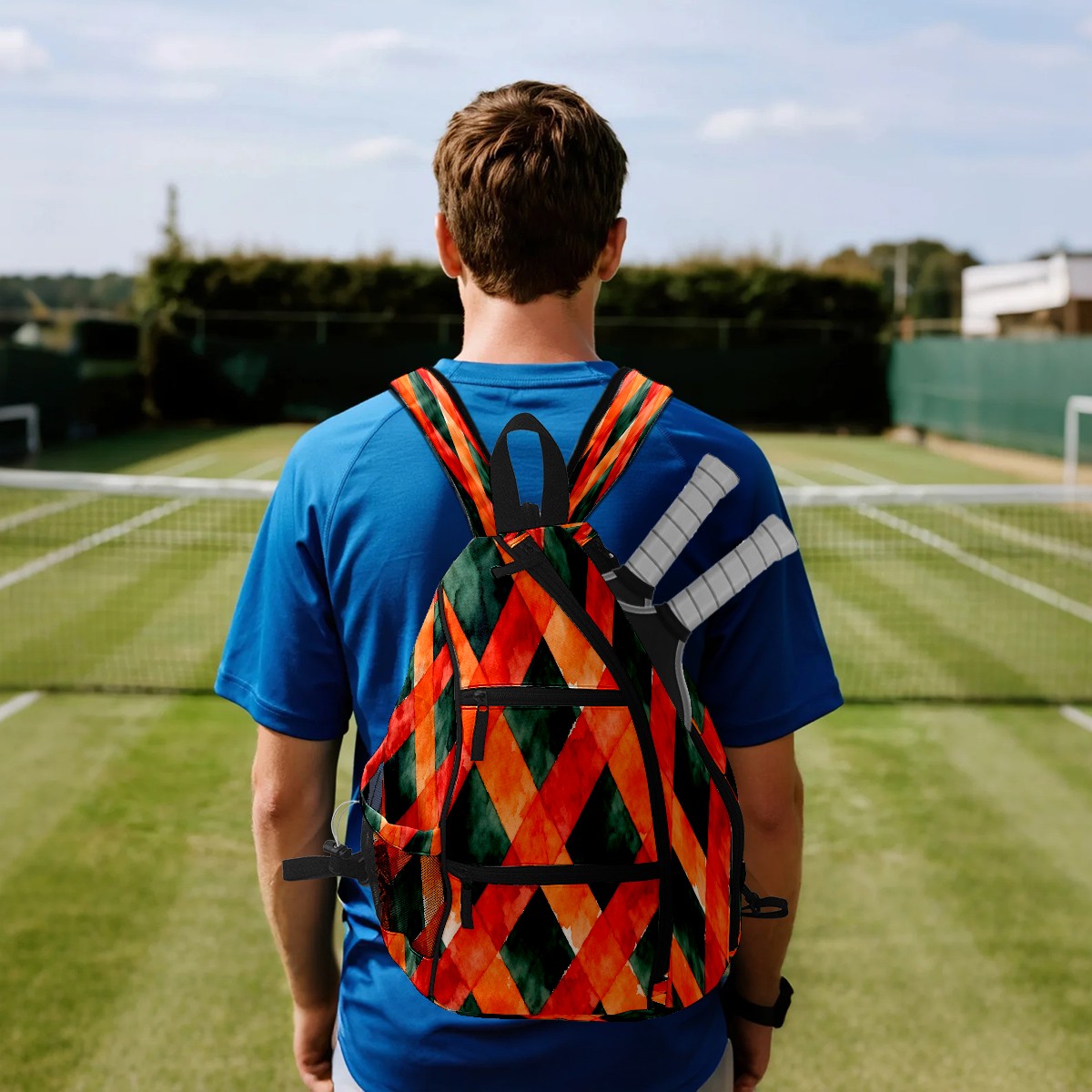 Print Pickleball Backpack Multicolor Plaid | Padded 6-Paddle Compartment & Separate Shoe Bag | Multi-Pocket Sports & Gym Backpack for Tennis, Travel, Commute