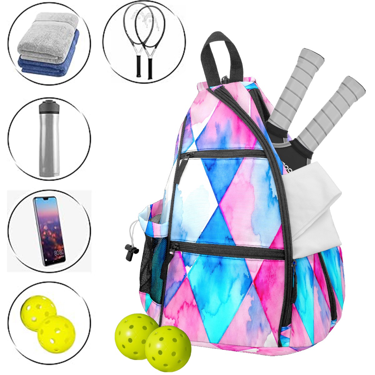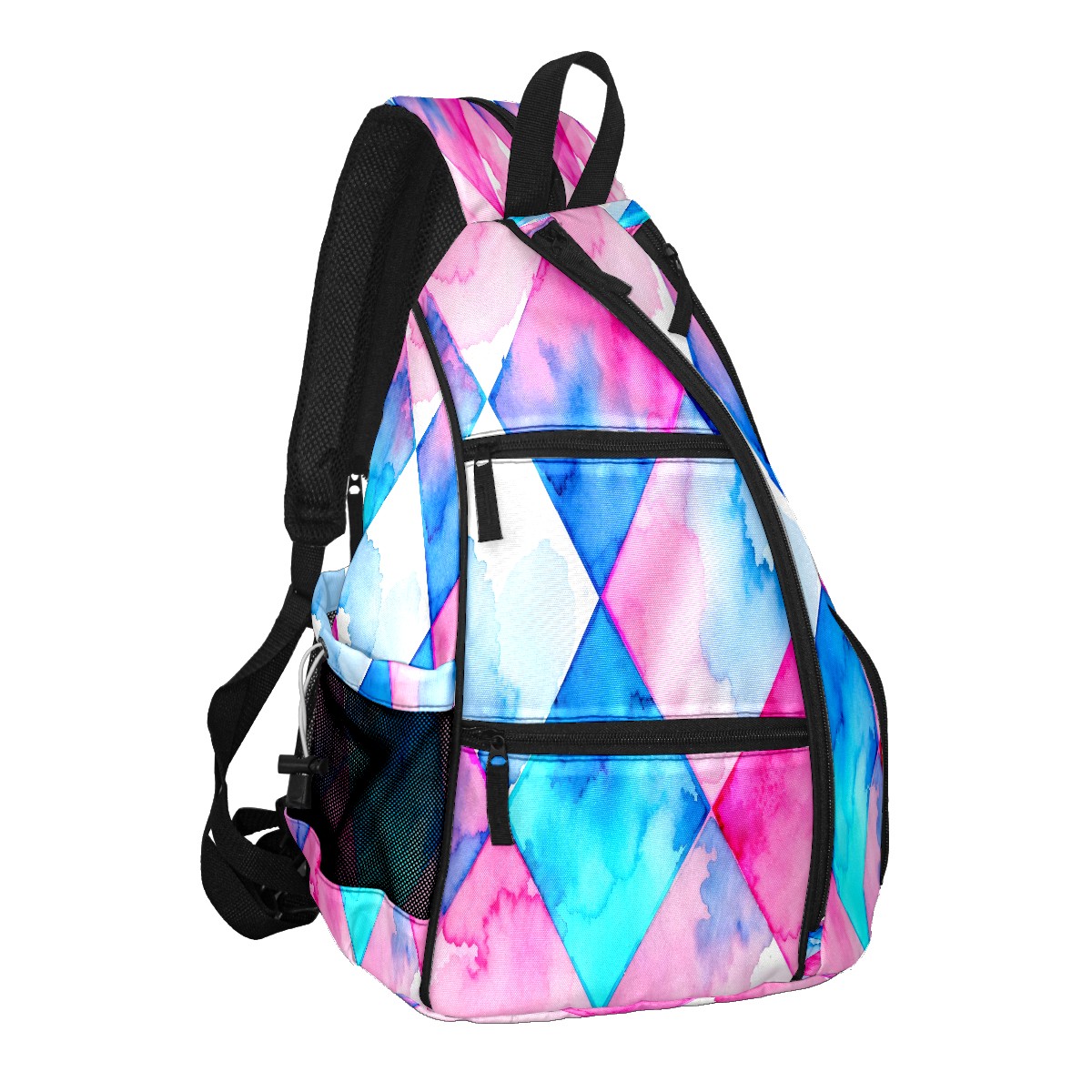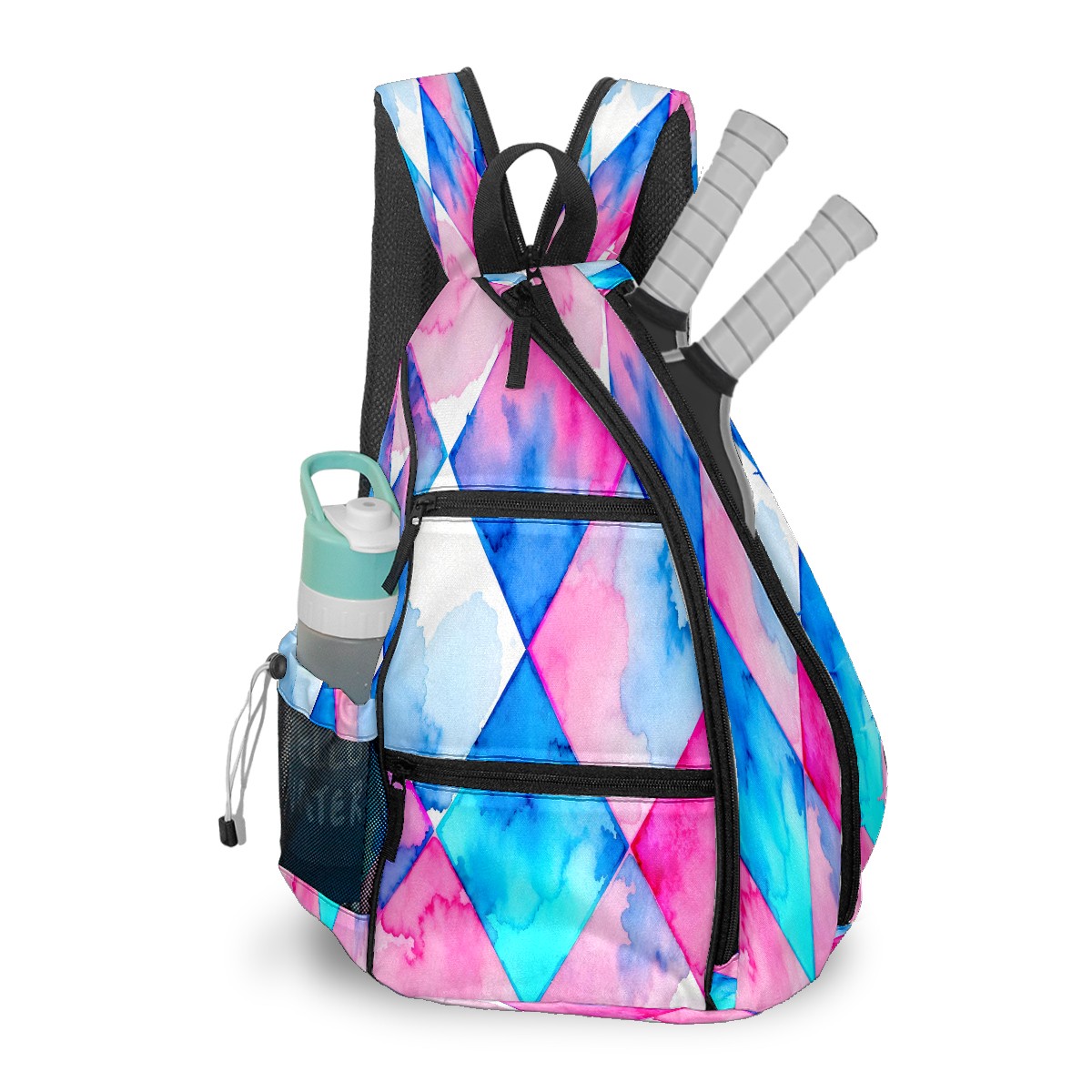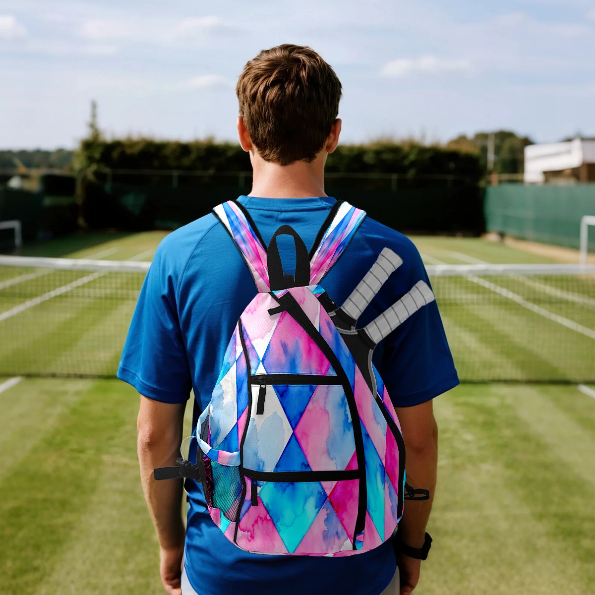 Print Pickleball Backpack Multicolor Diamonds | Padded 6-Paddle Compartment & Separate Shoe Bag | Multi-Pocket Sports & Gym Backpack for Tennis, Travel, Commute
