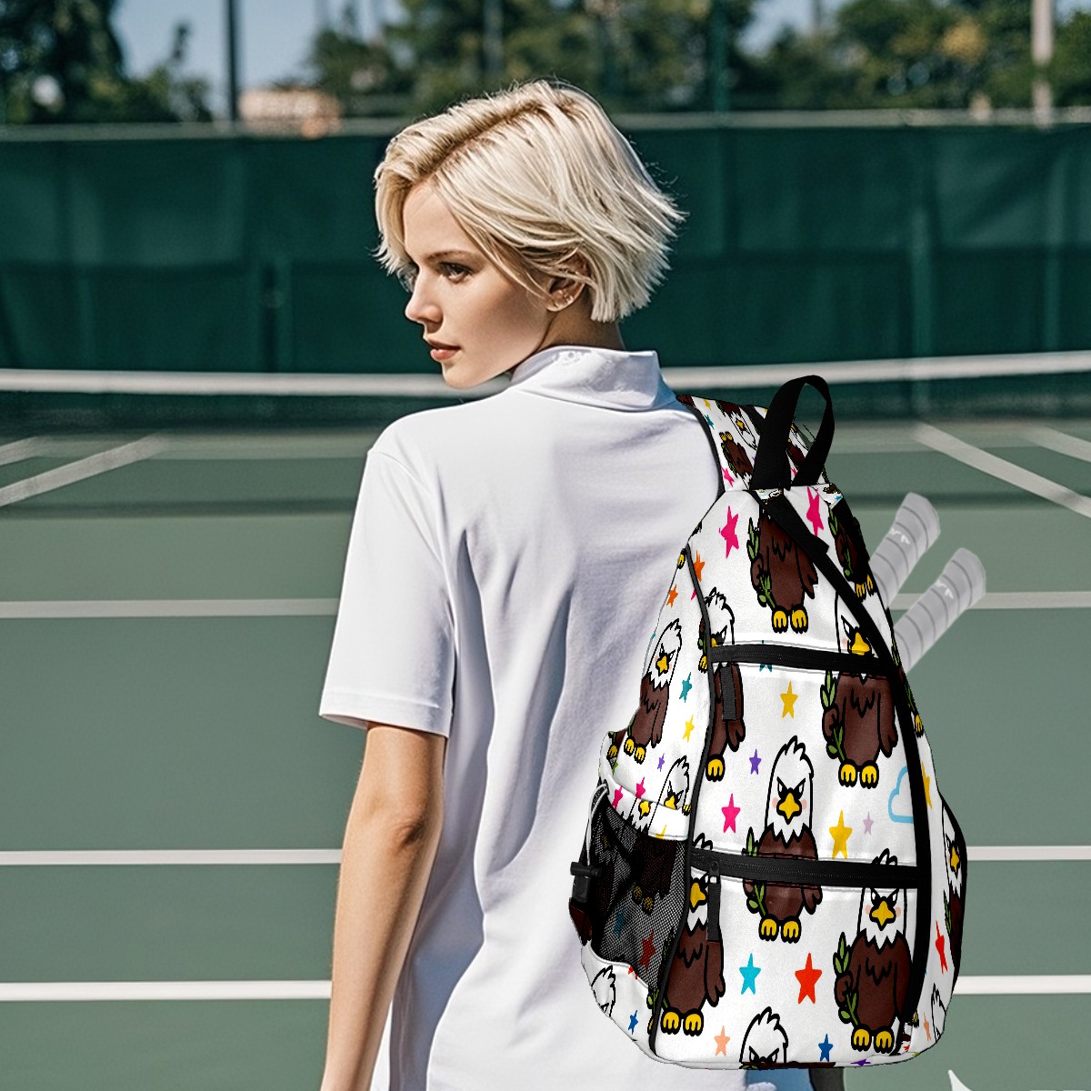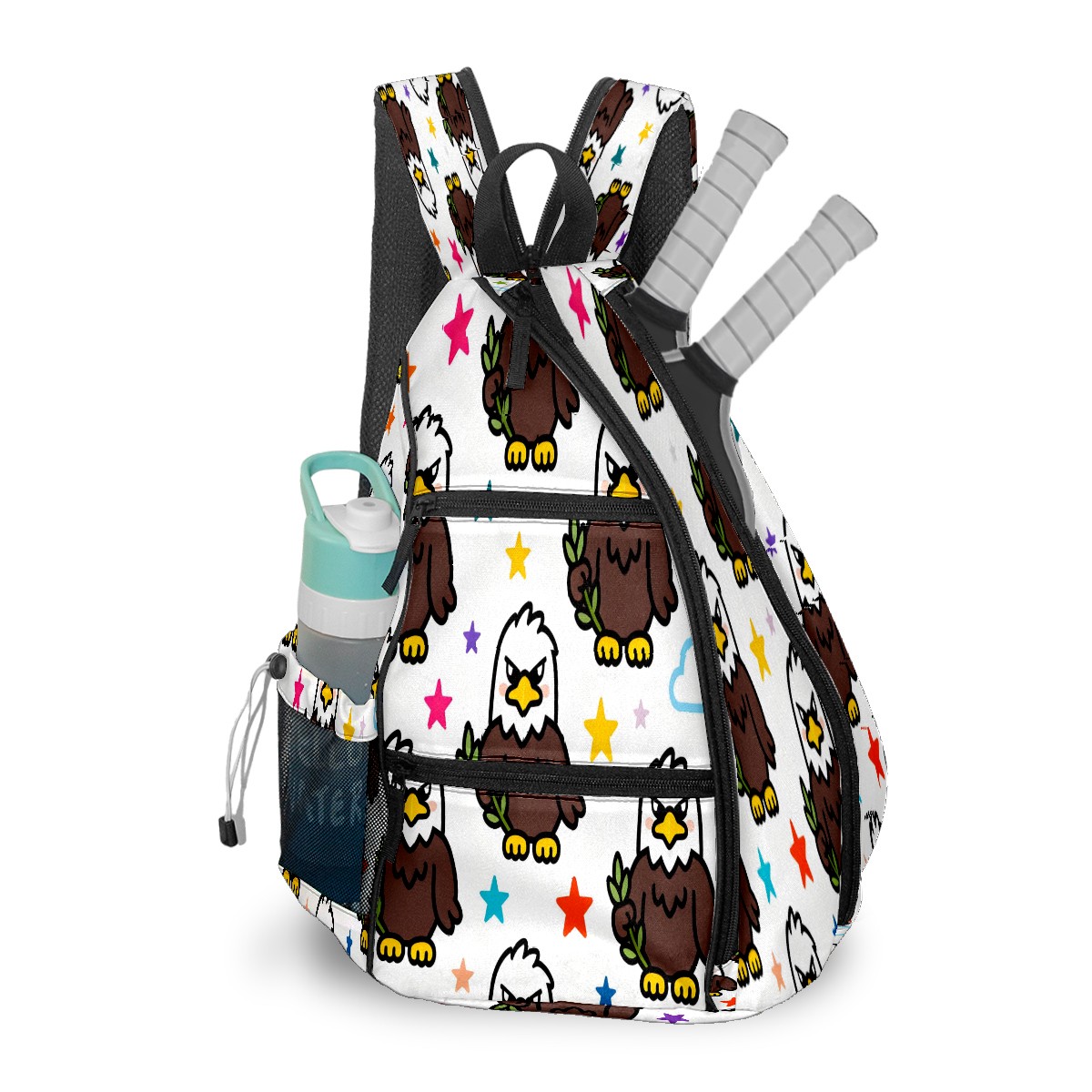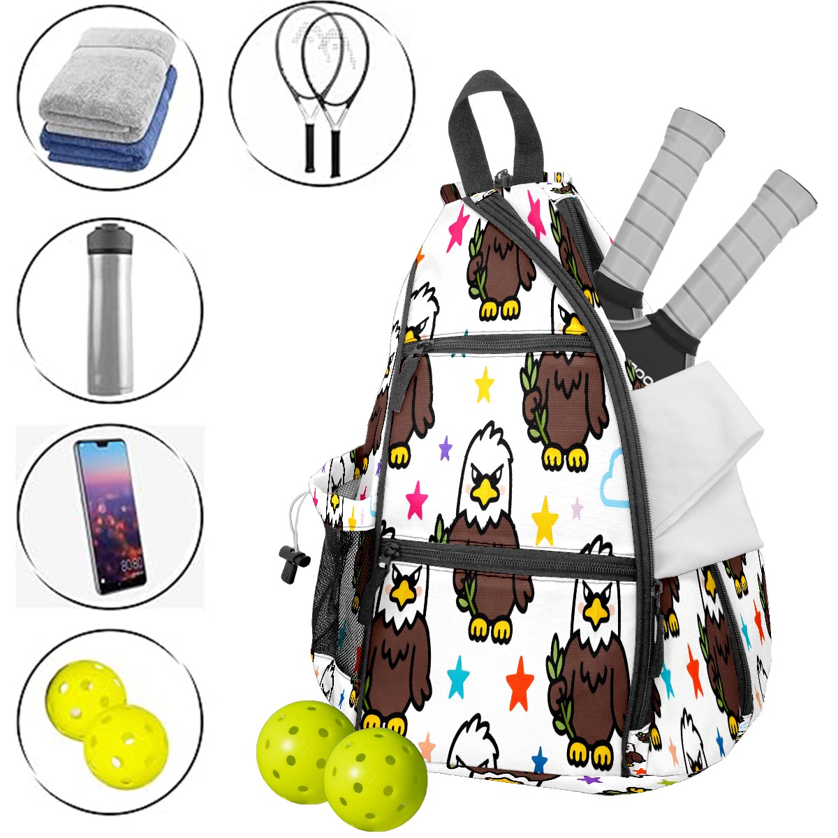 Print Pickleball Backpack Brown Eagles | Padded 6-Paddle Compartment & Separate Shoe Bag | Multi-Pocket Sports & Gym Backpack for Tennis, Travel, Commute