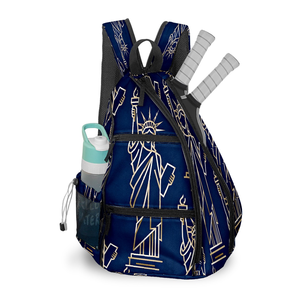 Print Pickleball Backpack Dark Blue Eagle | Padded 6-Paddle Compartment & Separate Shoe Bag | Multi-Pocket Sports & Gym Backpack for Tennis, Travel, Commute
