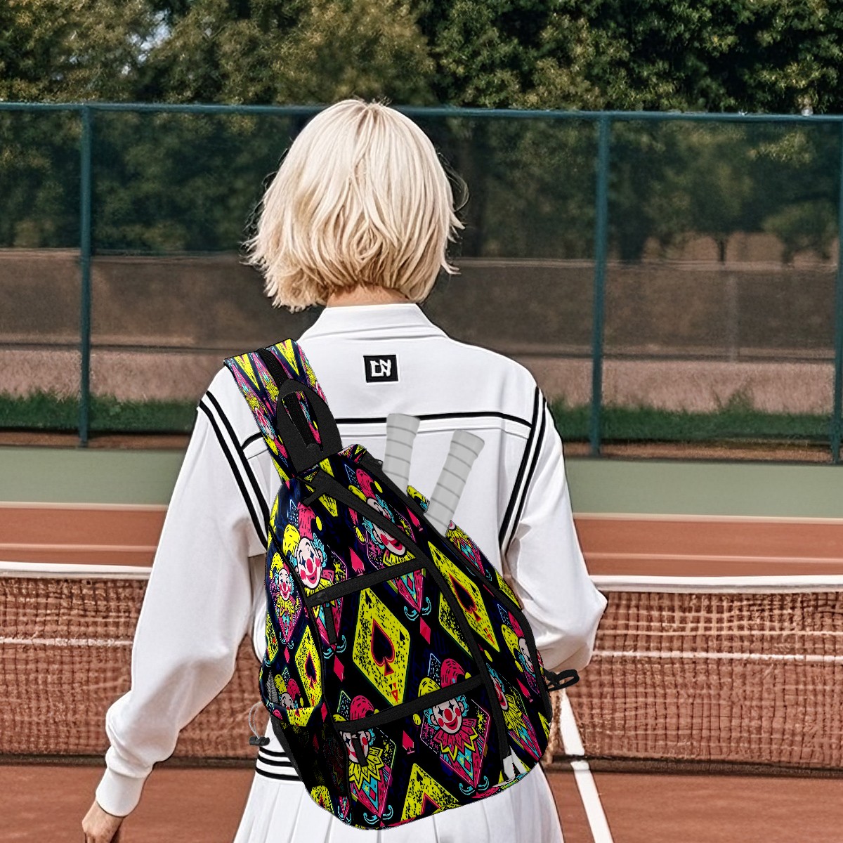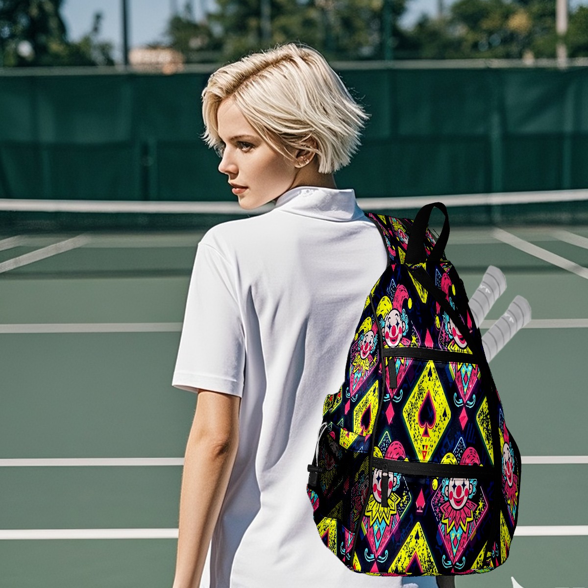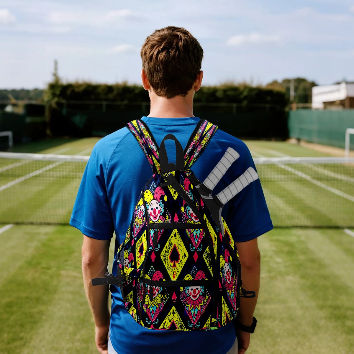 Print Pickleball Backpack Black Poker Clowns | Padded 6-Paddle Compartment & Separate Shoe Bag | Multi-Pocket Sports & Gym Backpack for Tennis, Travel, Commute