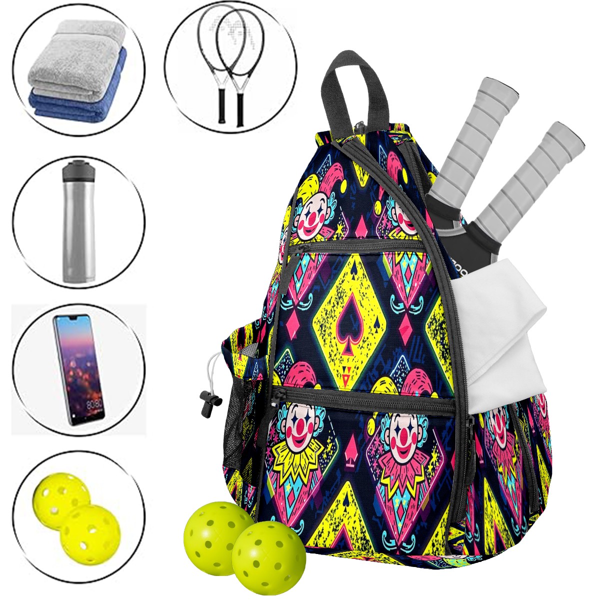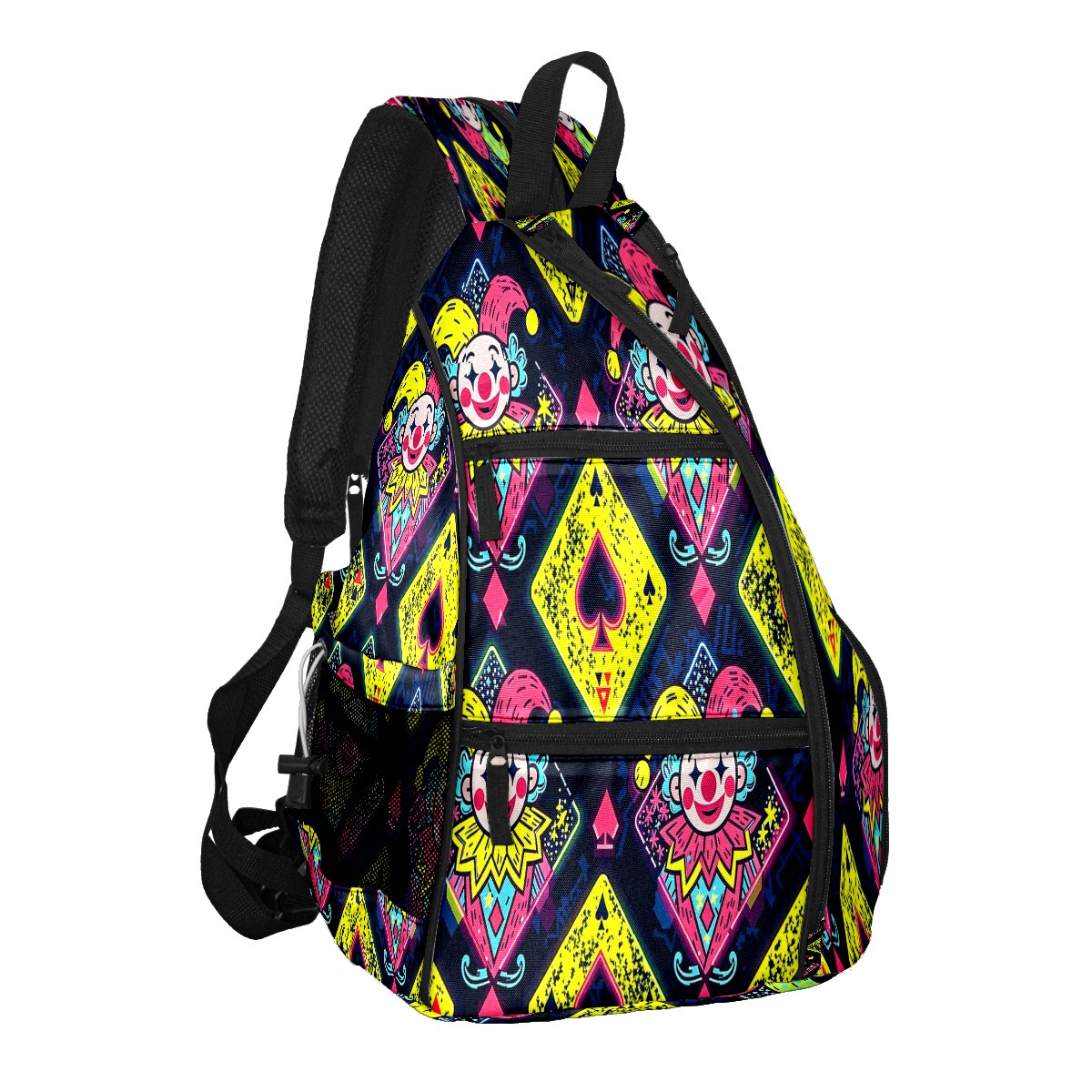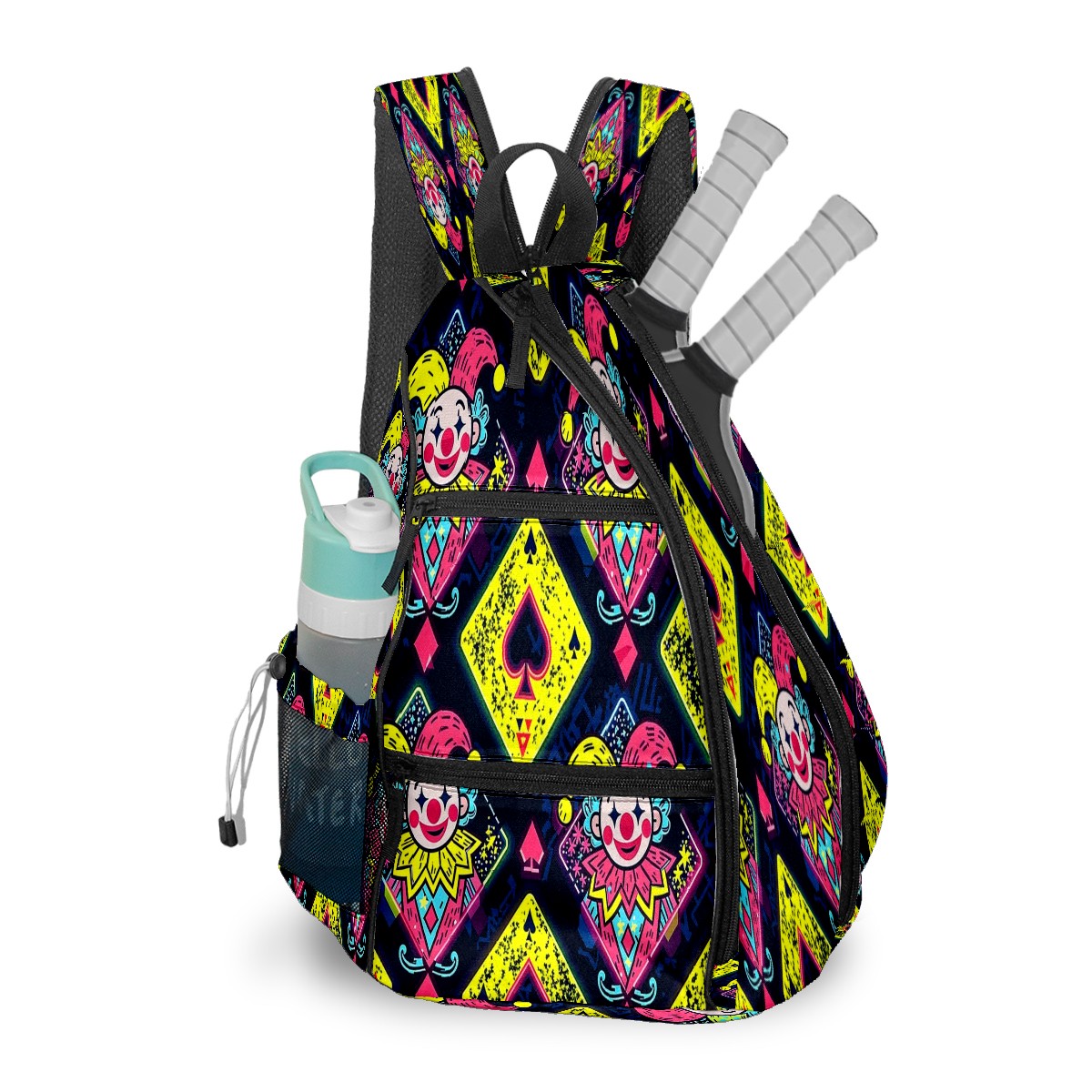 Print Pickleball Backpack Black Poker Clowns | Padded 6-Paddle Compartment & Separate Shoe Bag | Multi-Pocket Sports & Gym Backpack for Tennis, Travel, Commute